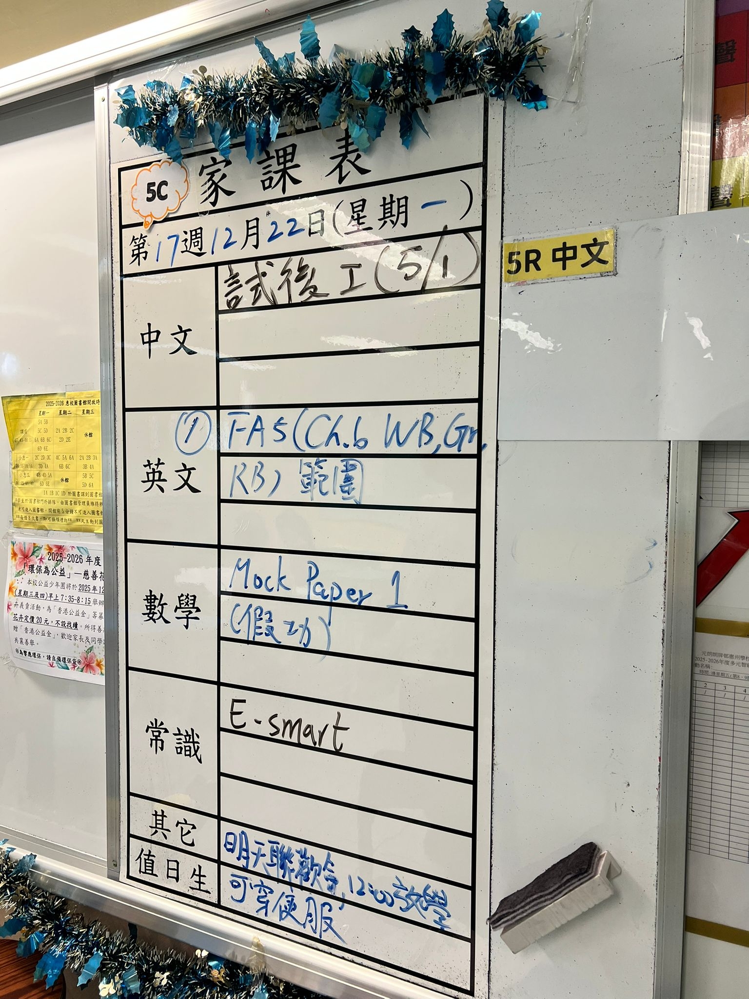 2025-12-17 週三發出之家課:
