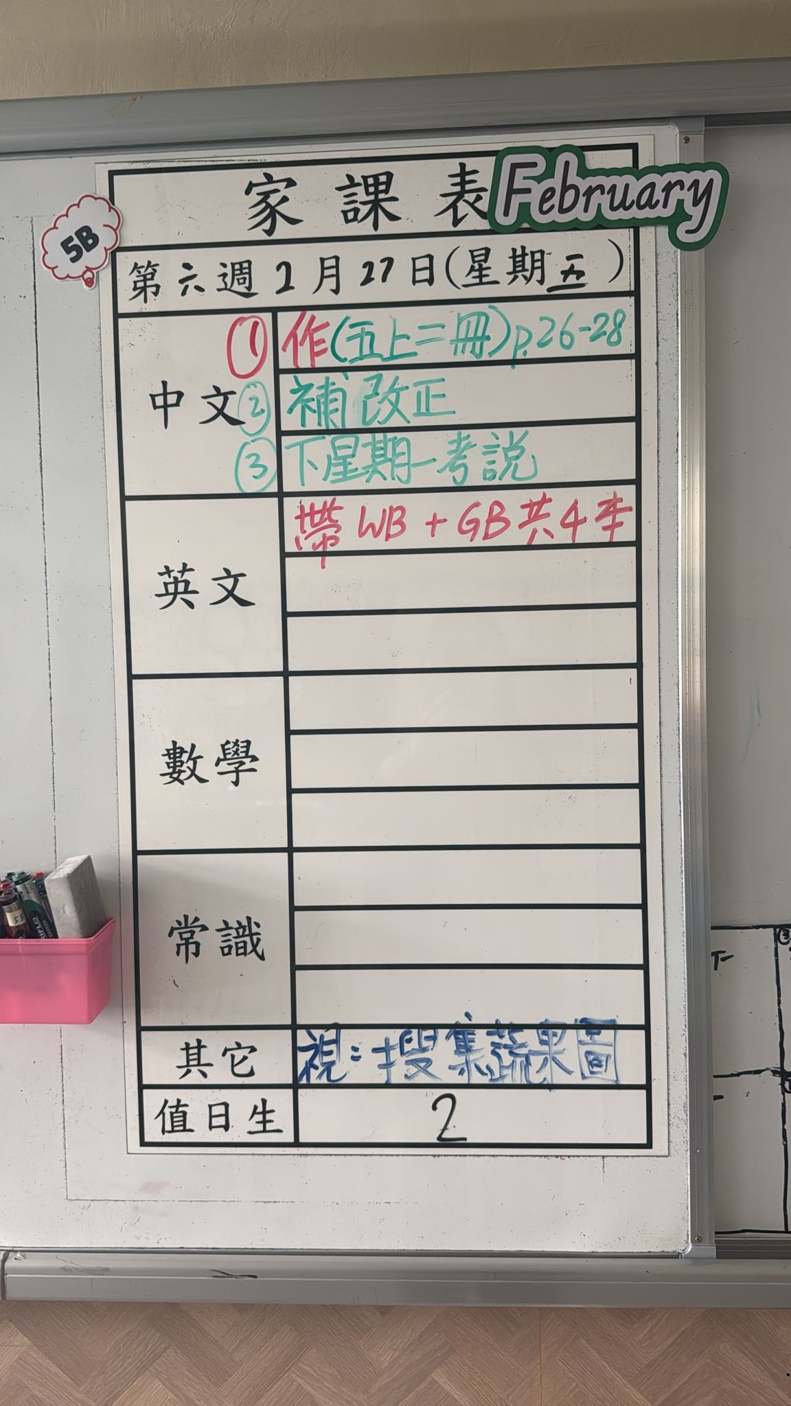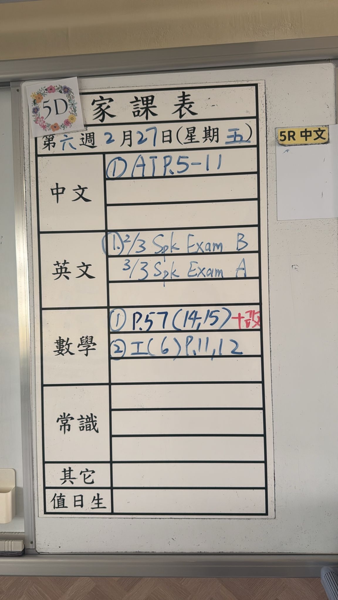 2026-02-27 週五發出之家課: