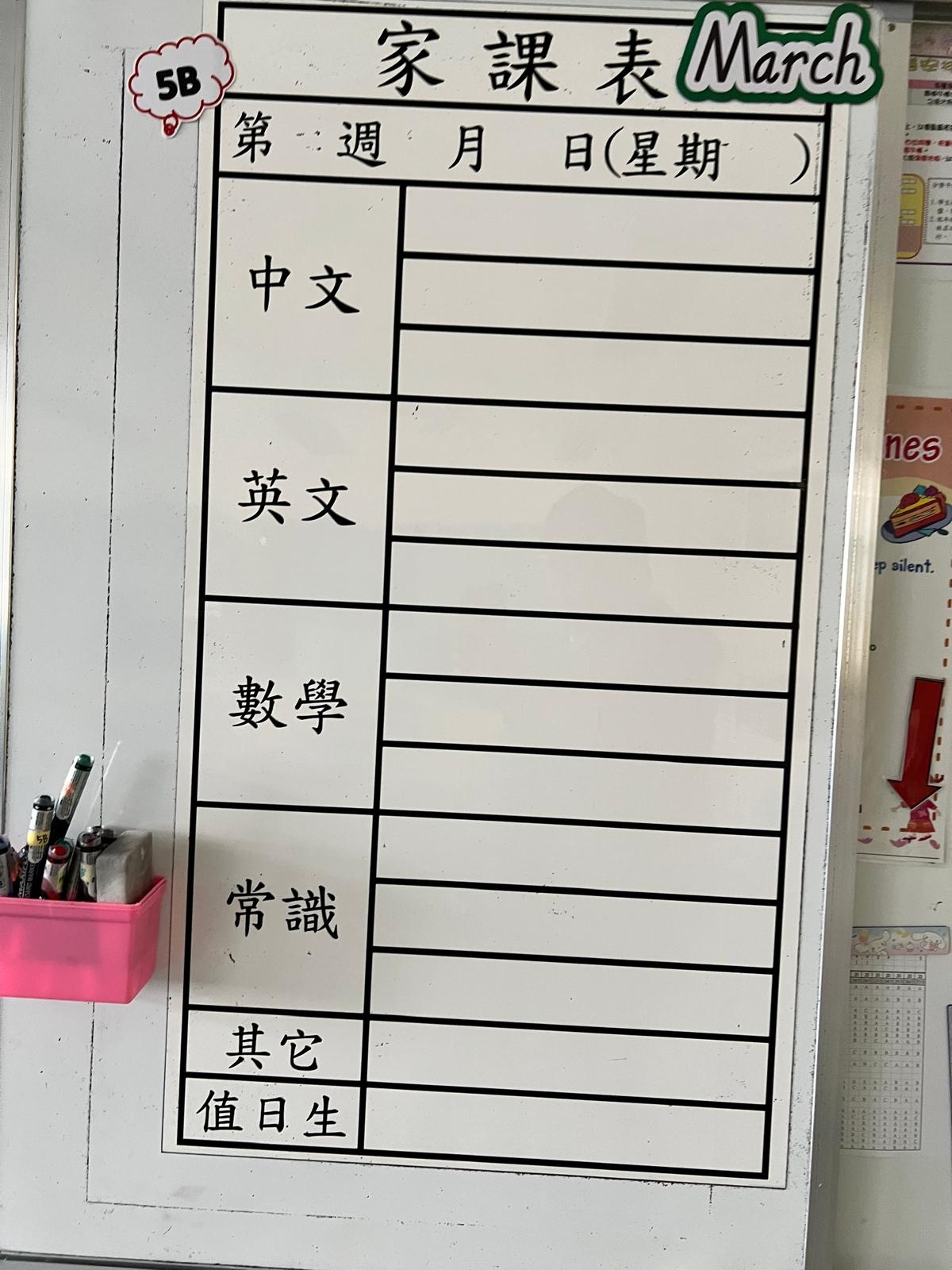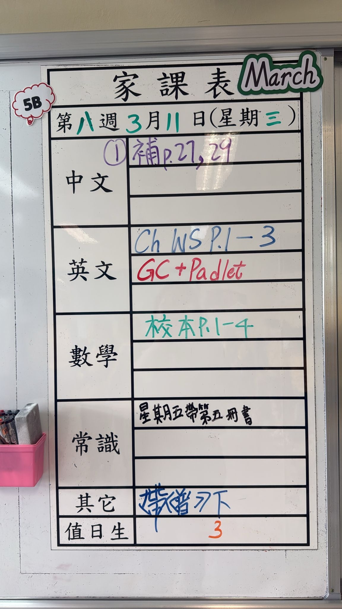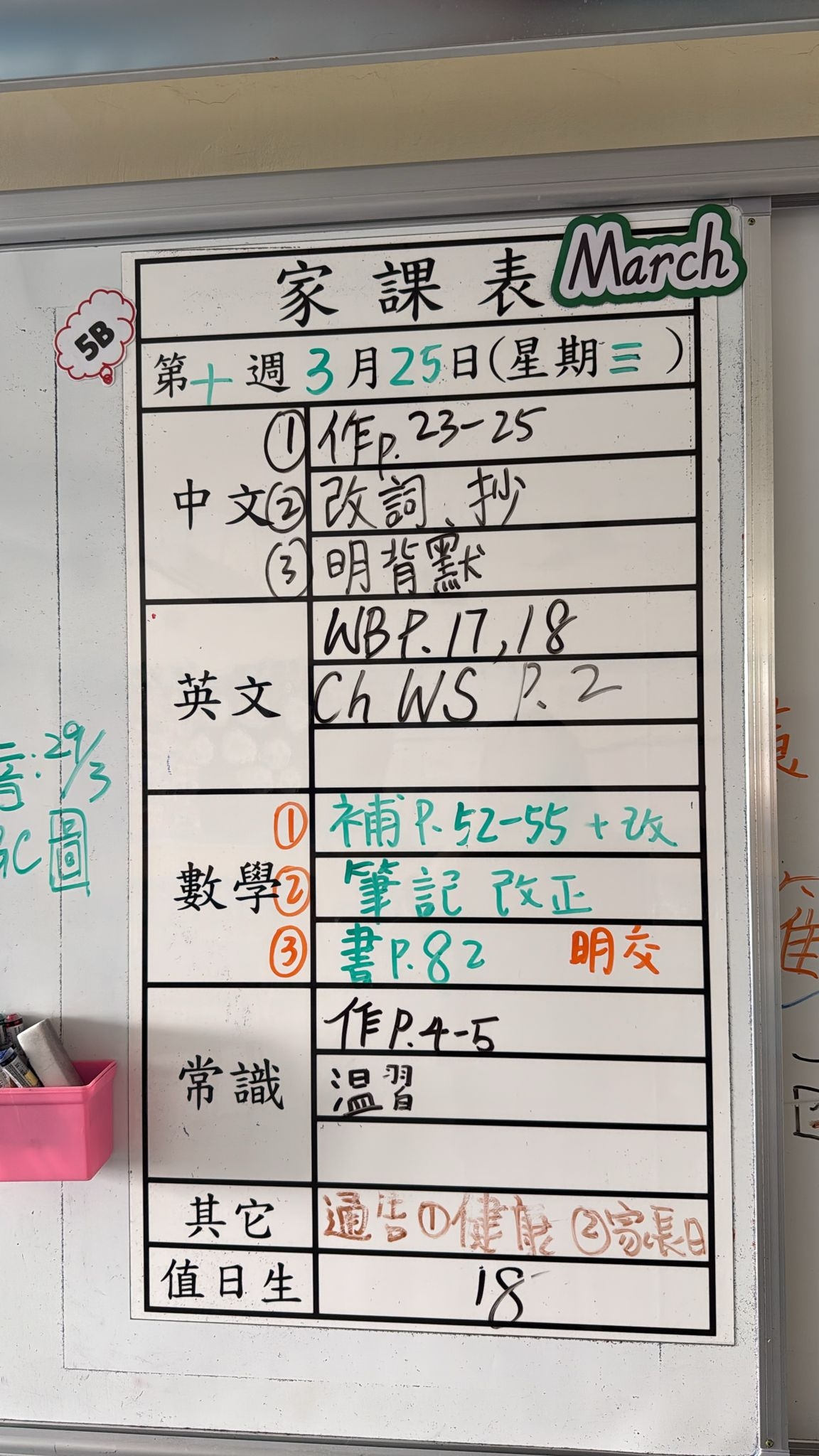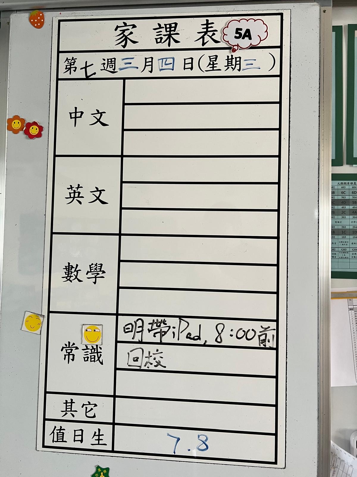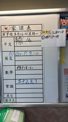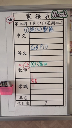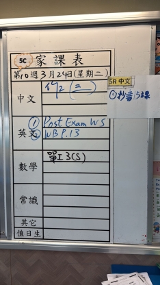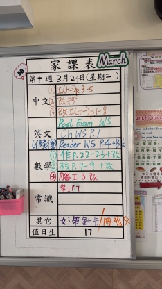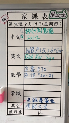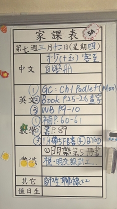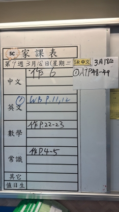 2026-03-18 週三發出之家課: