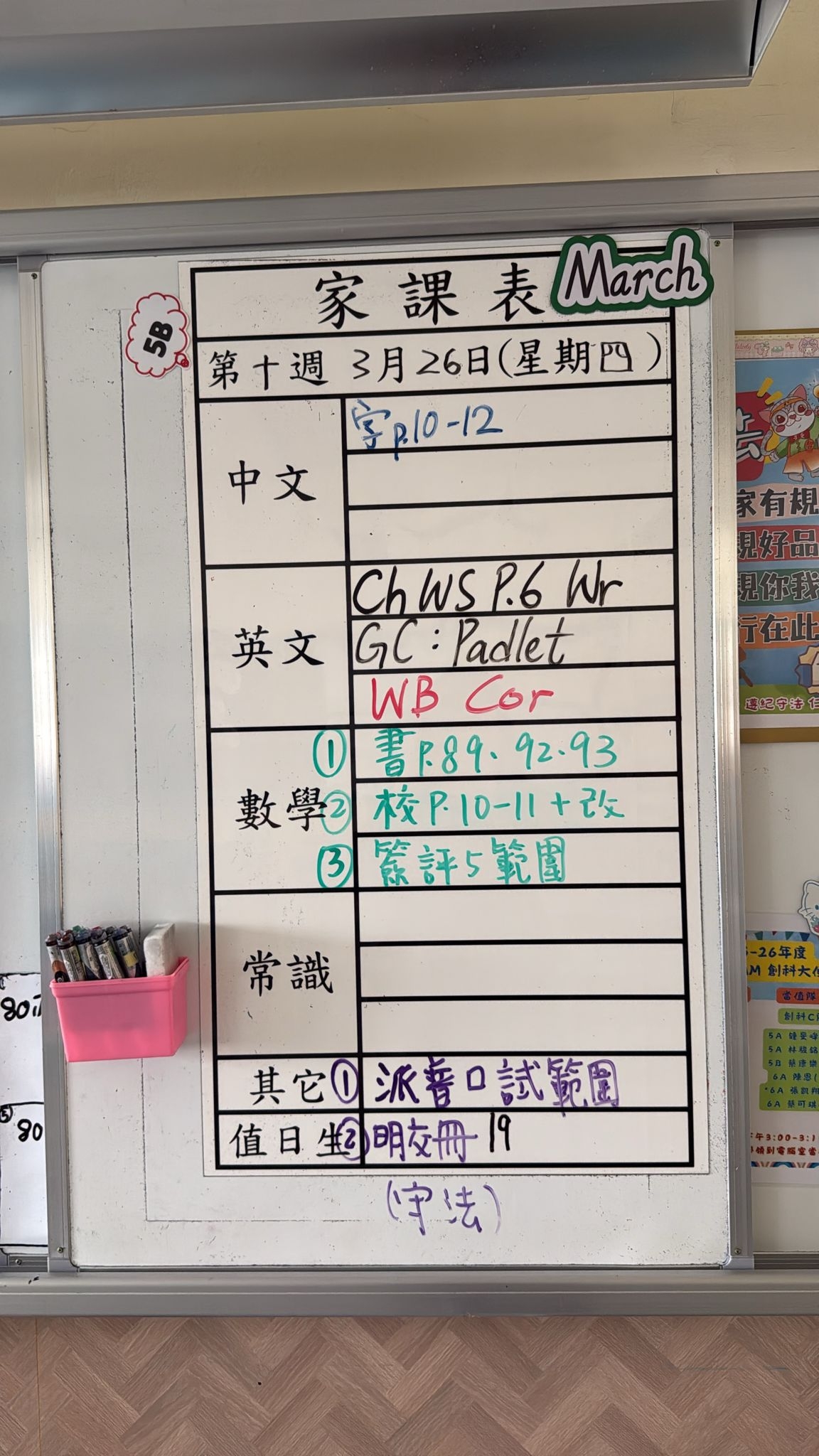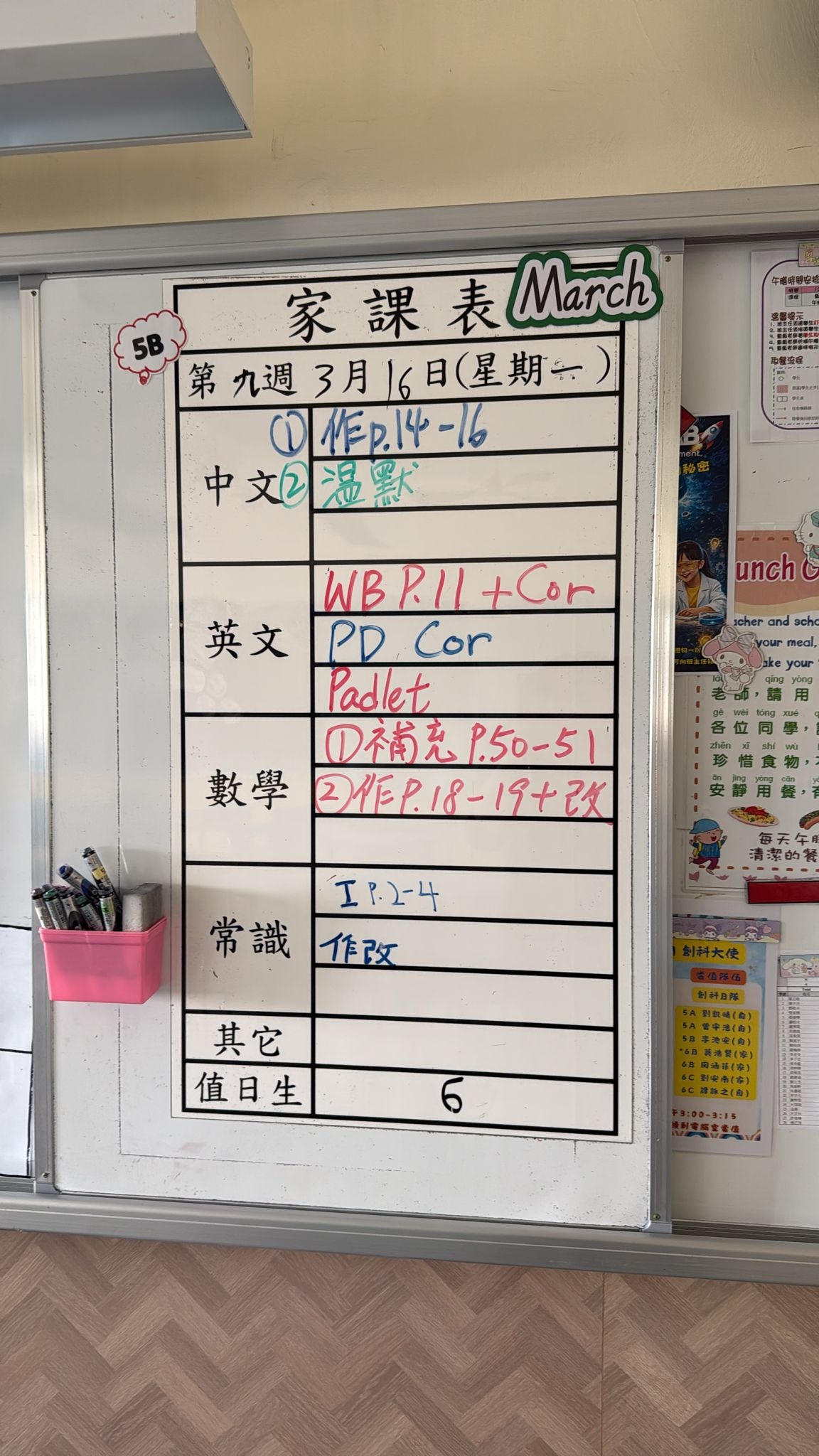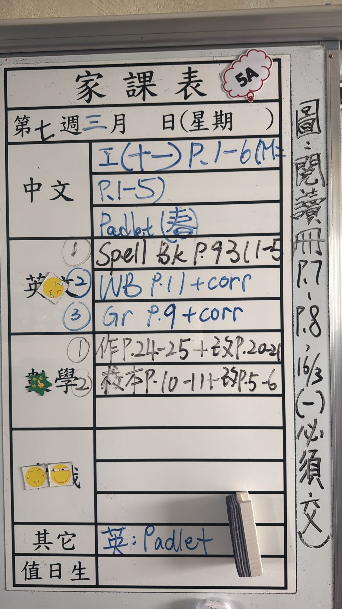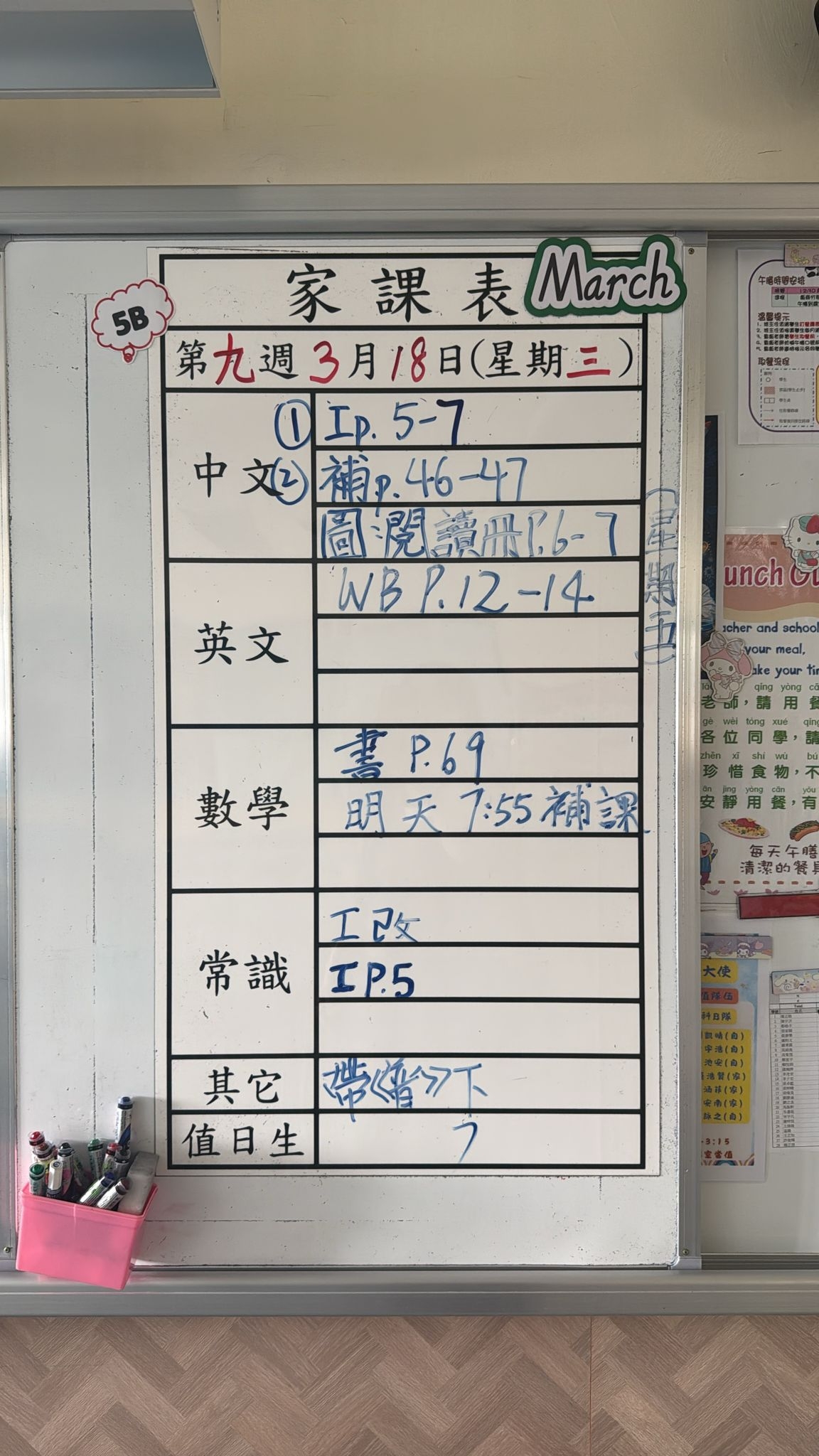 2026-03-18 週三發出之家課: