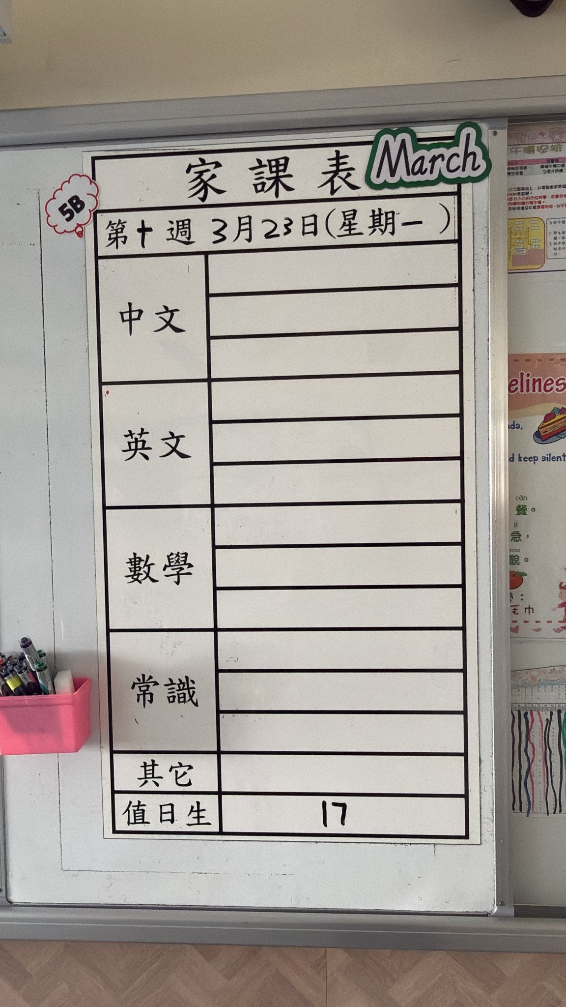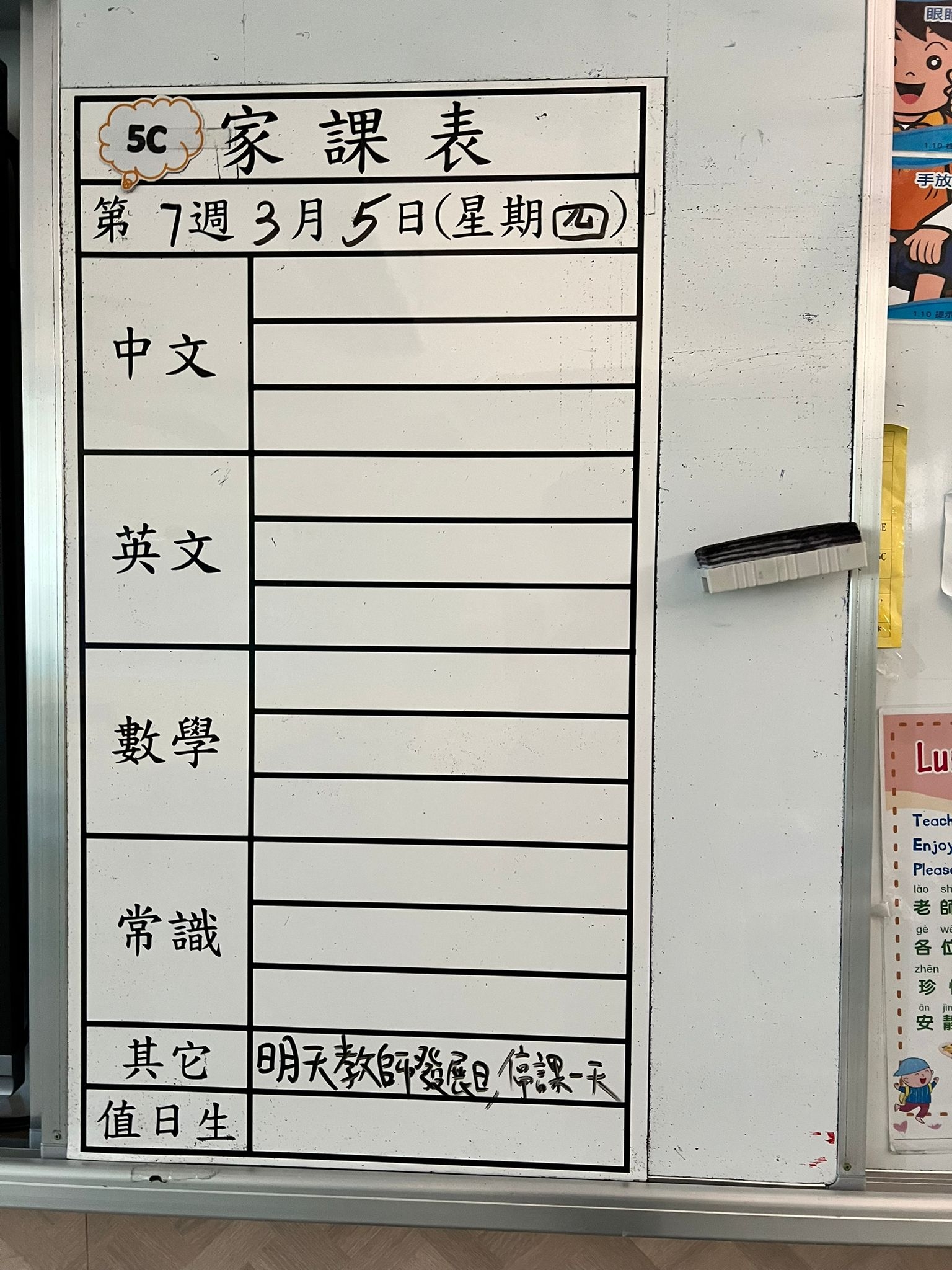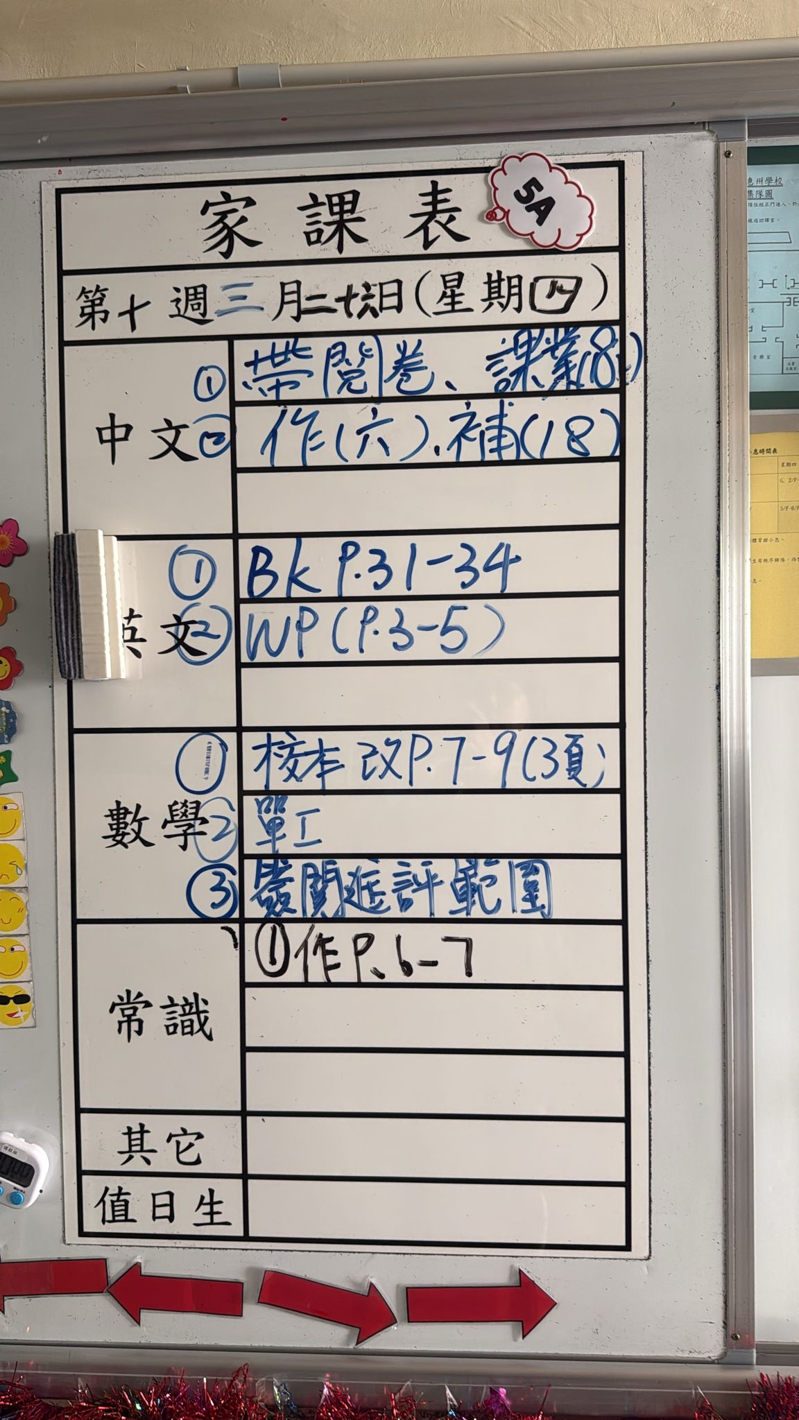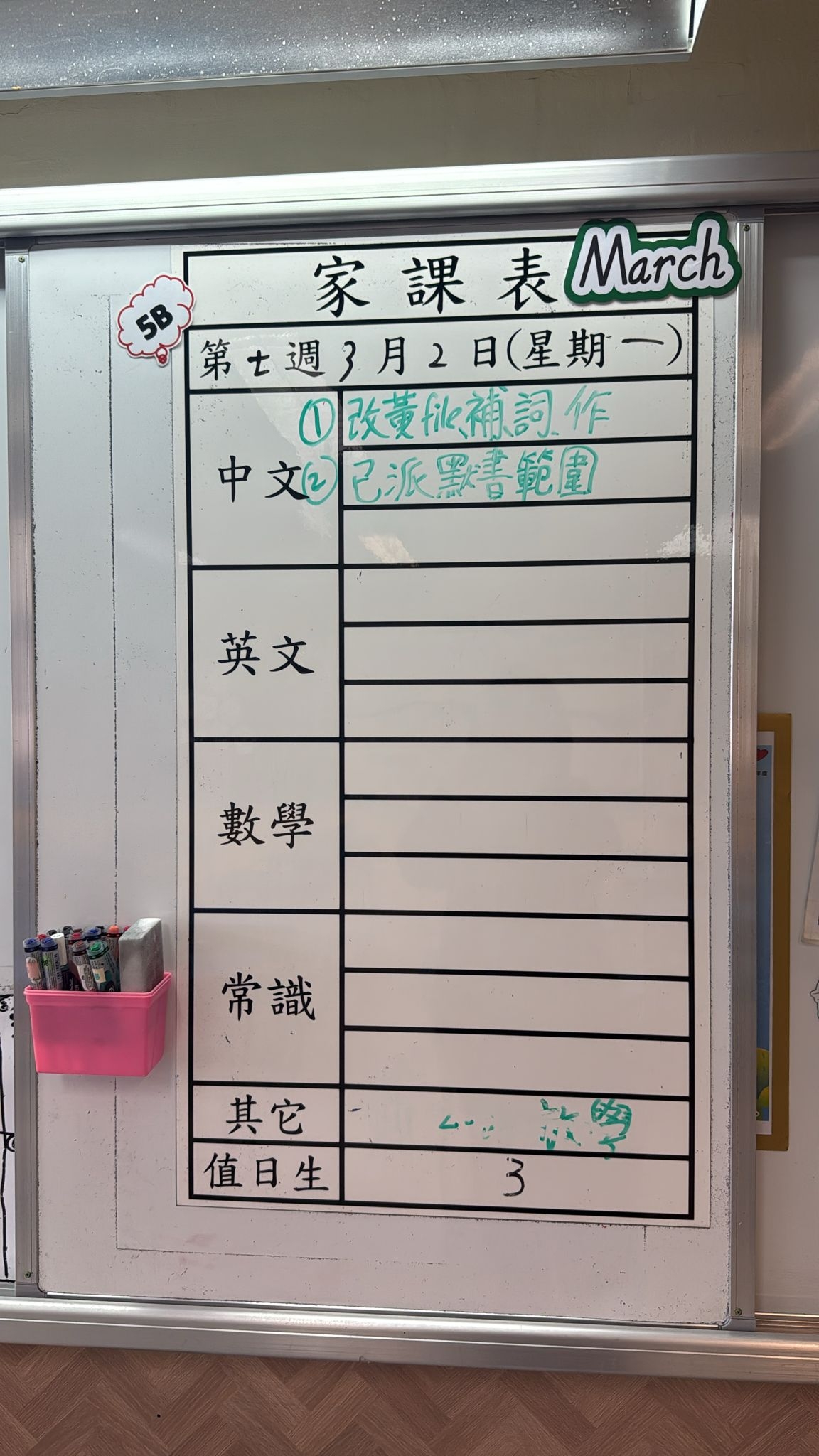 2026-03-18 週三發出之家課: