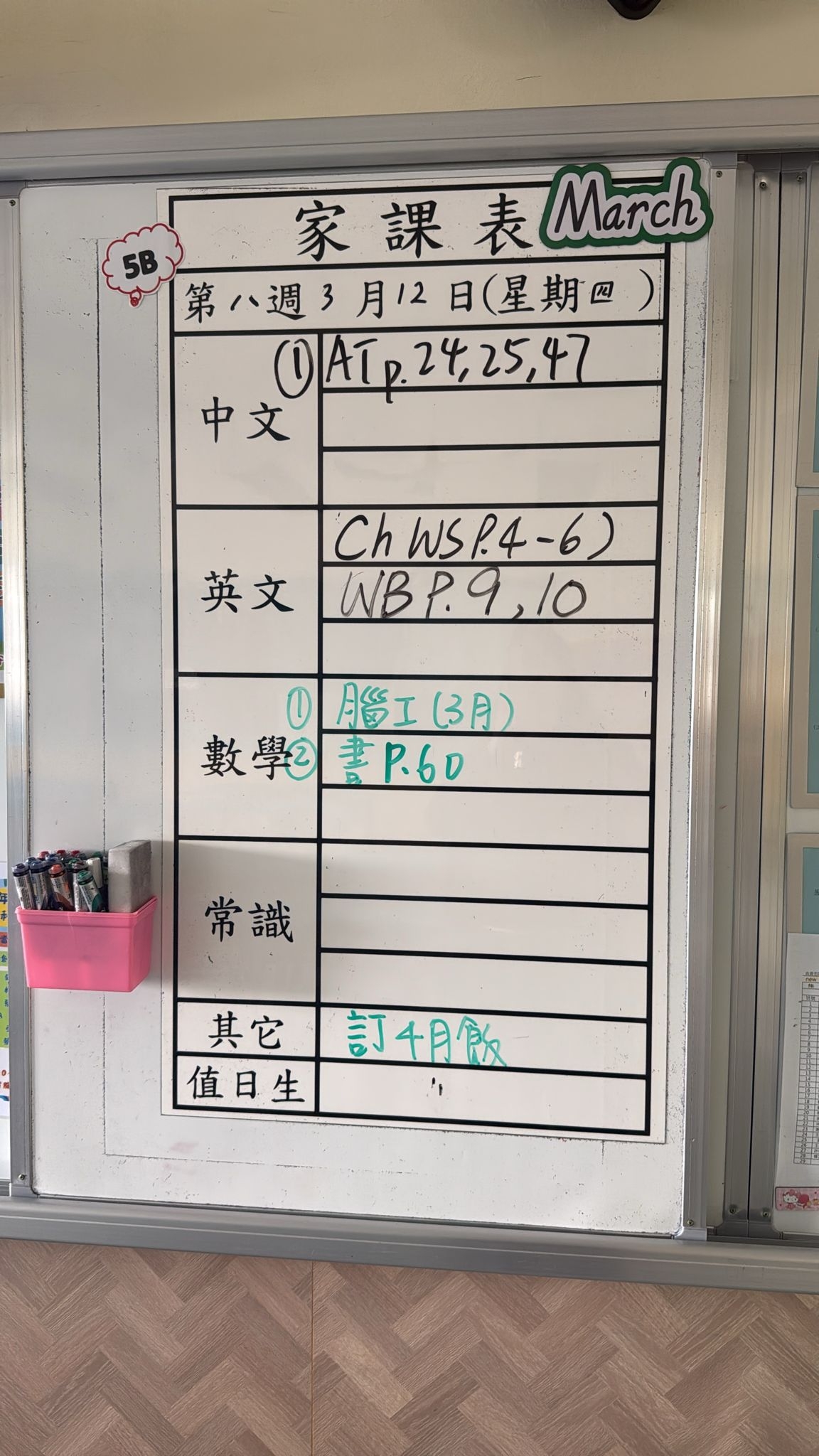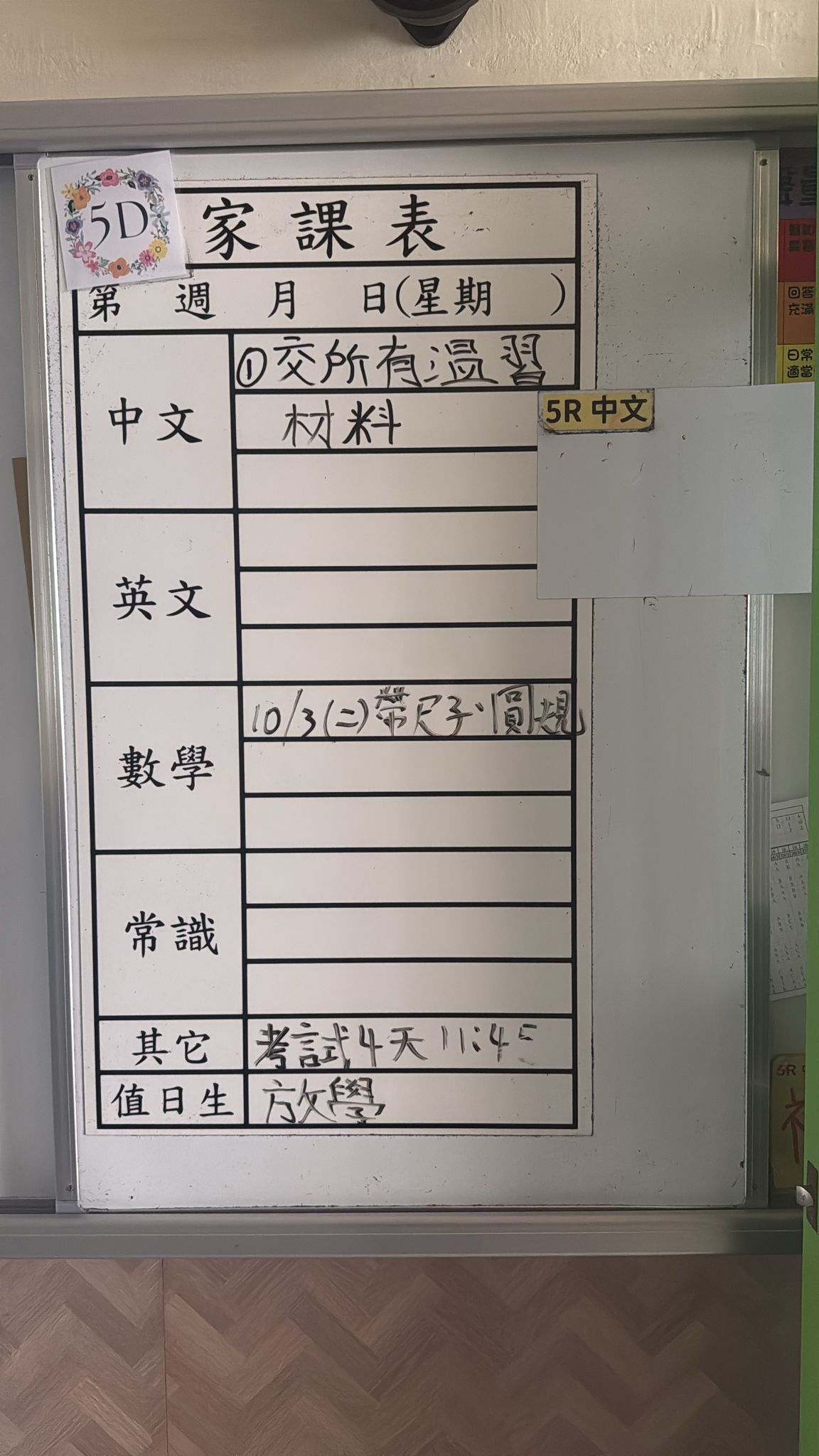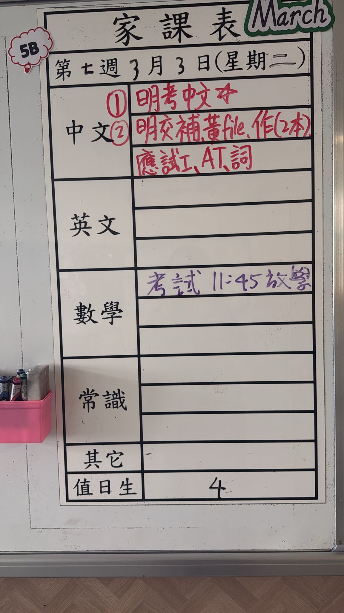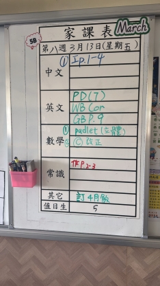 2026-03-05 週四發出之家課: