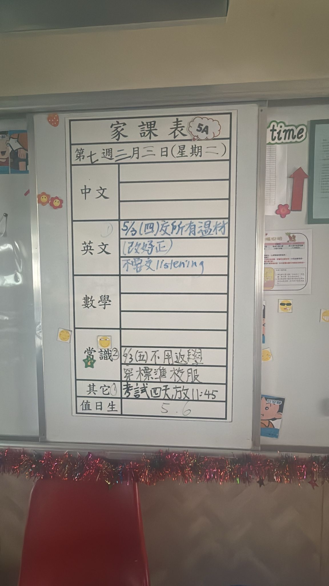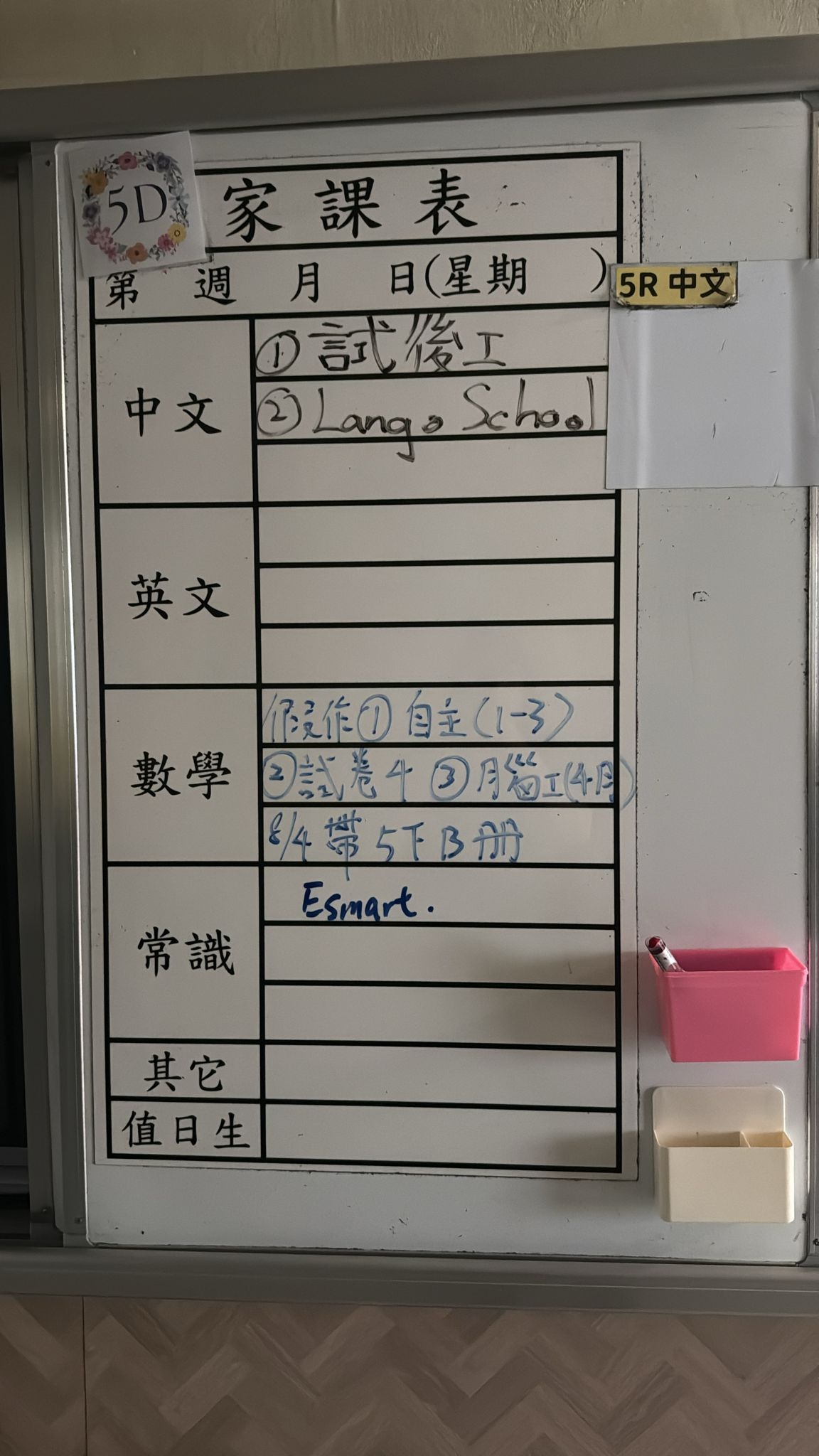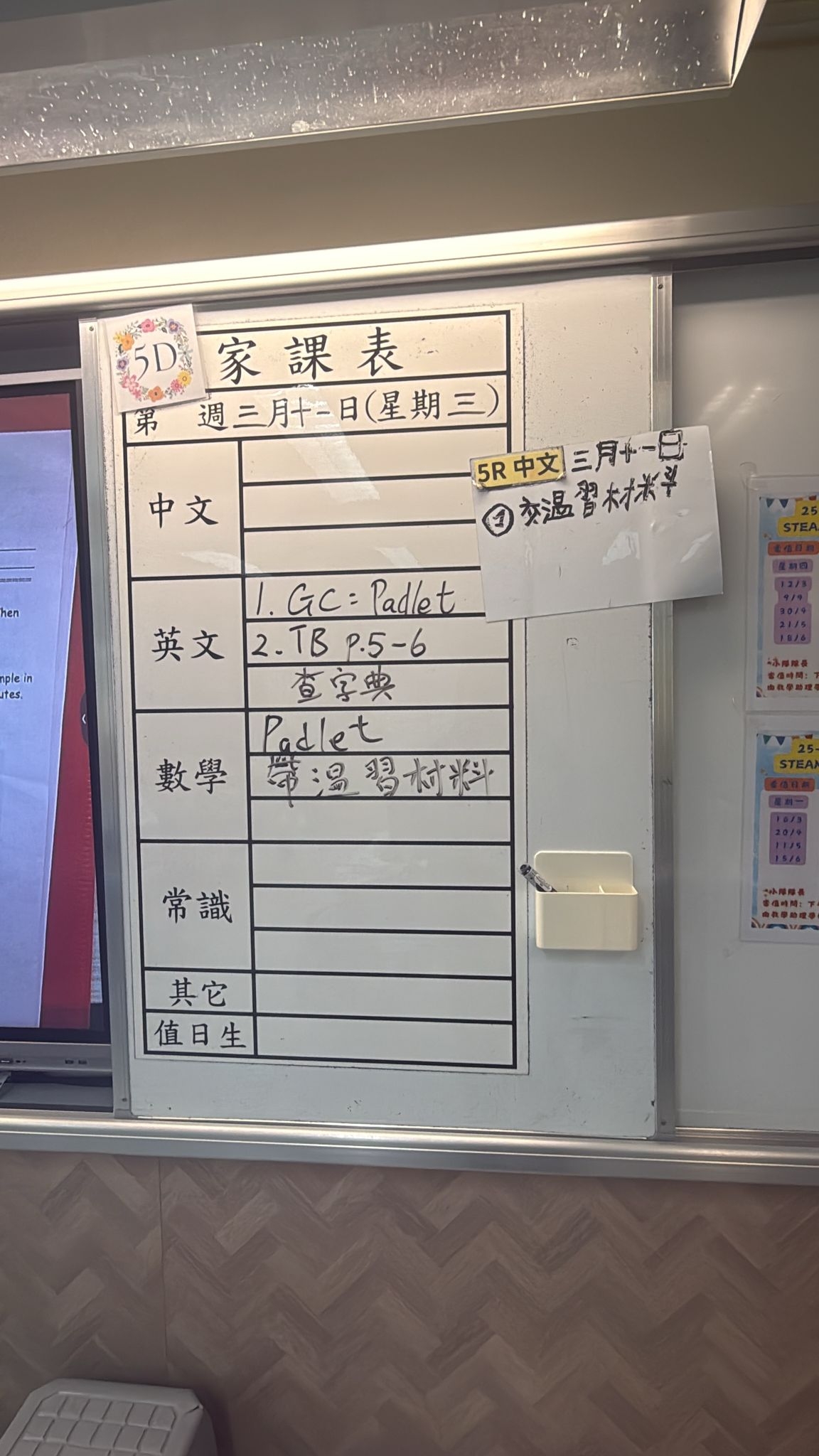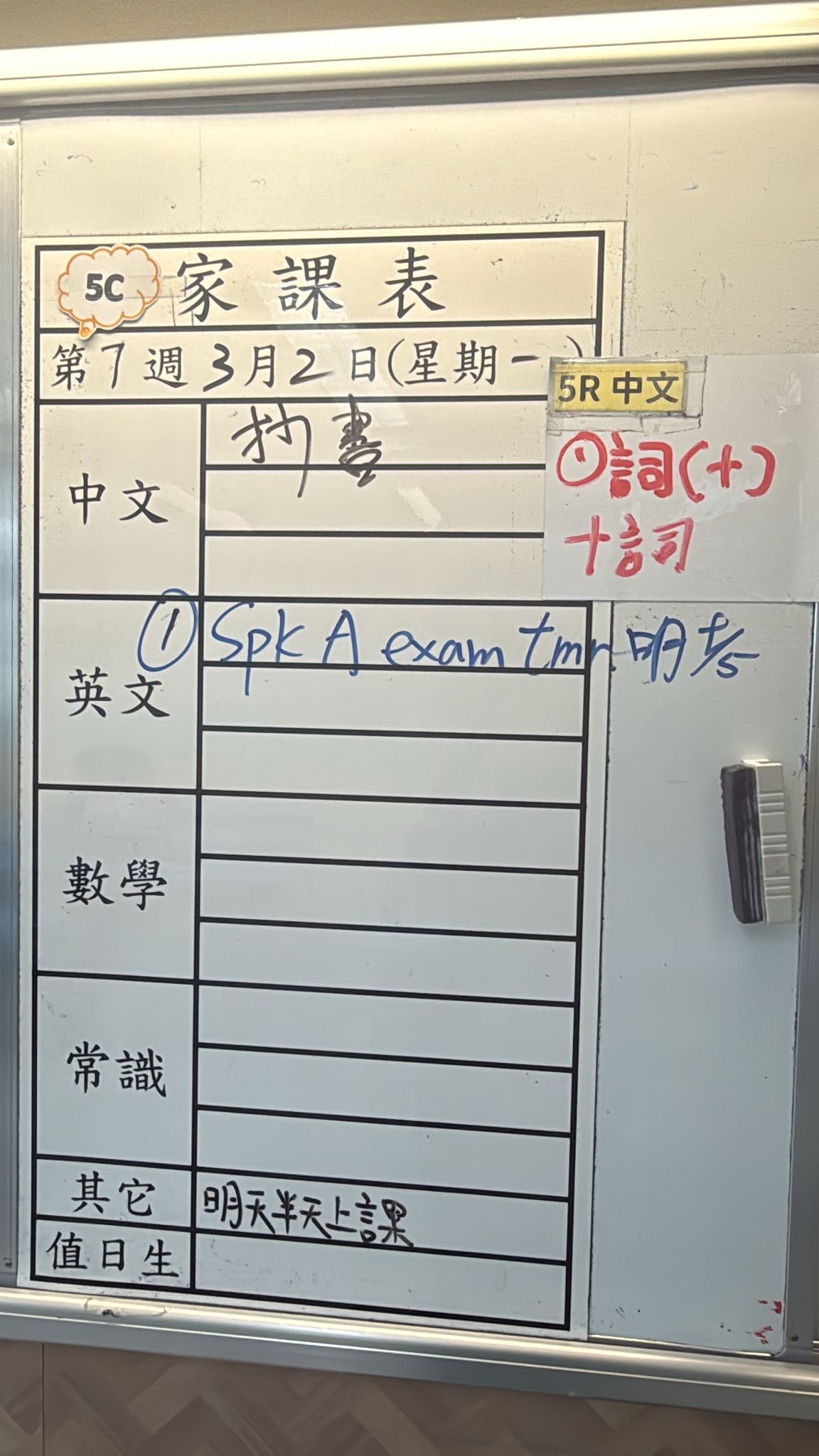 2026-03-05 週四發出之家課: