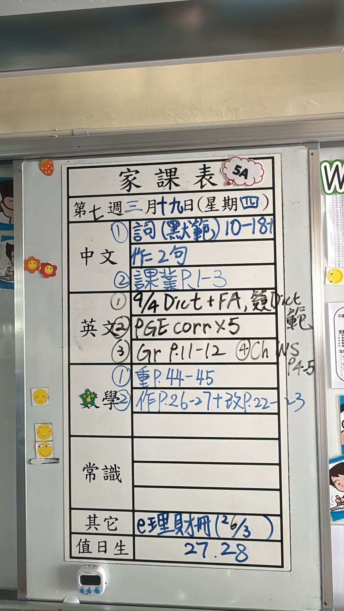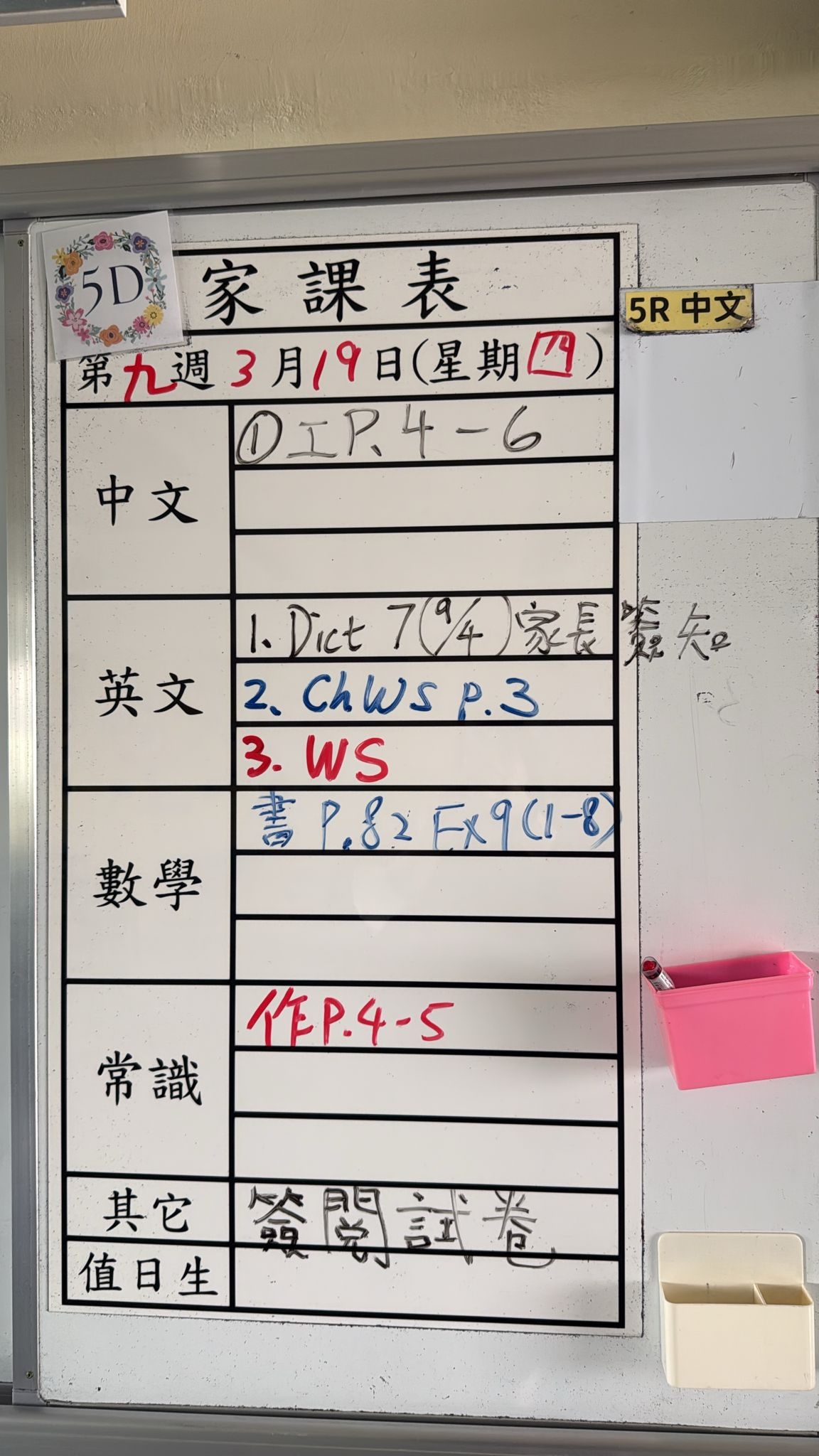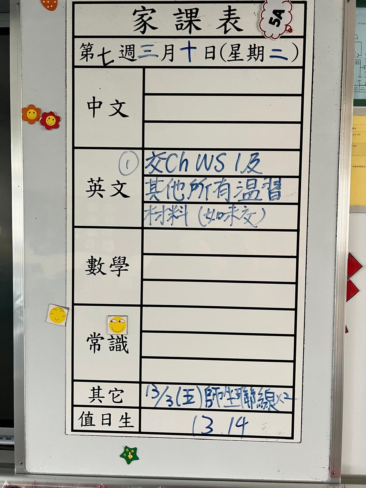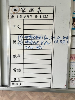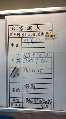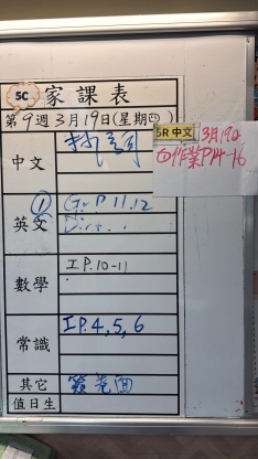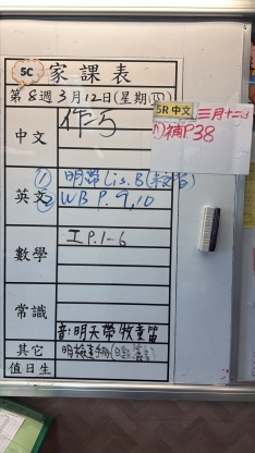 2026-03-19 週四發出之家課: