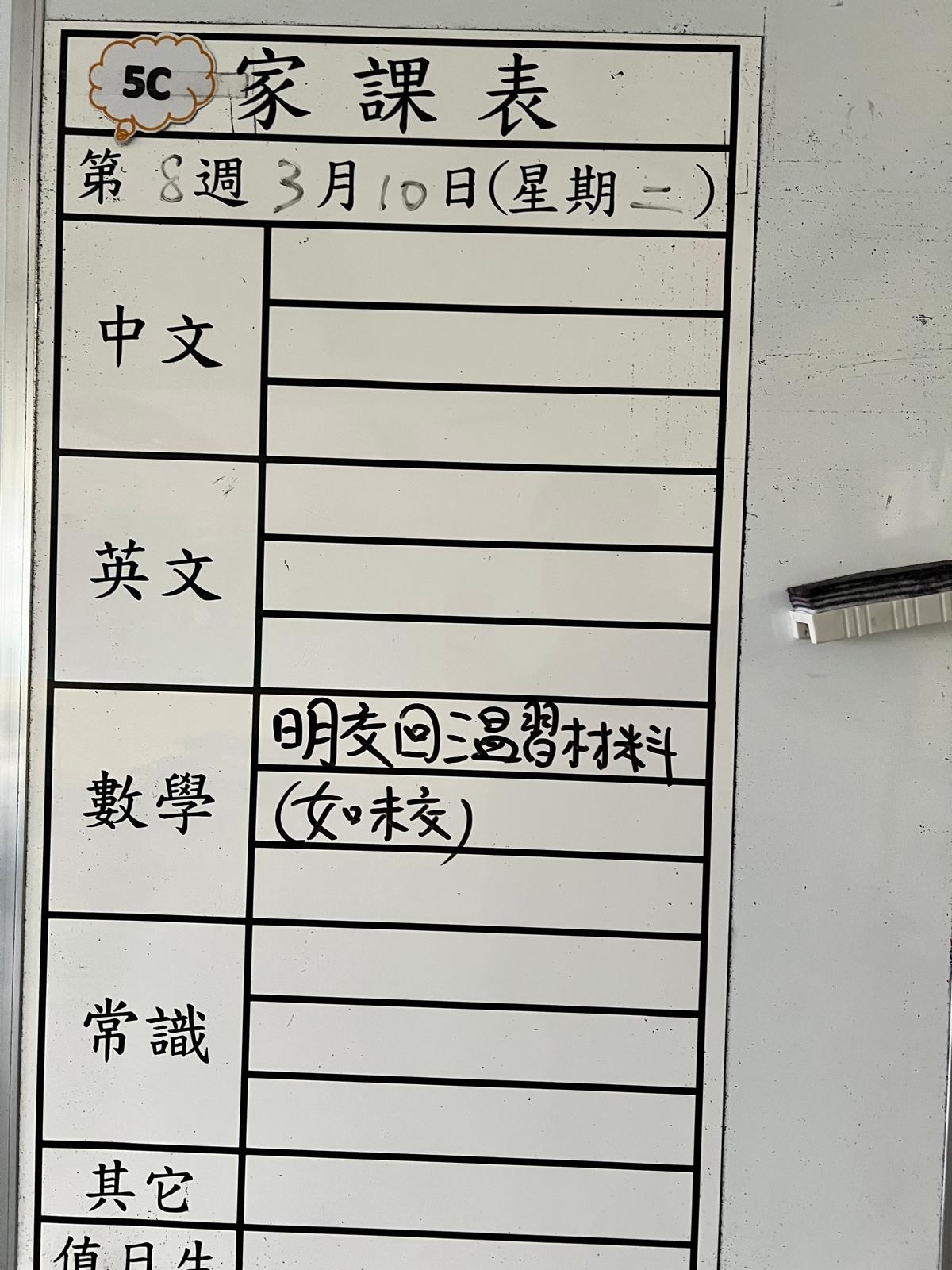 2026-03-10 週二發出之家課: