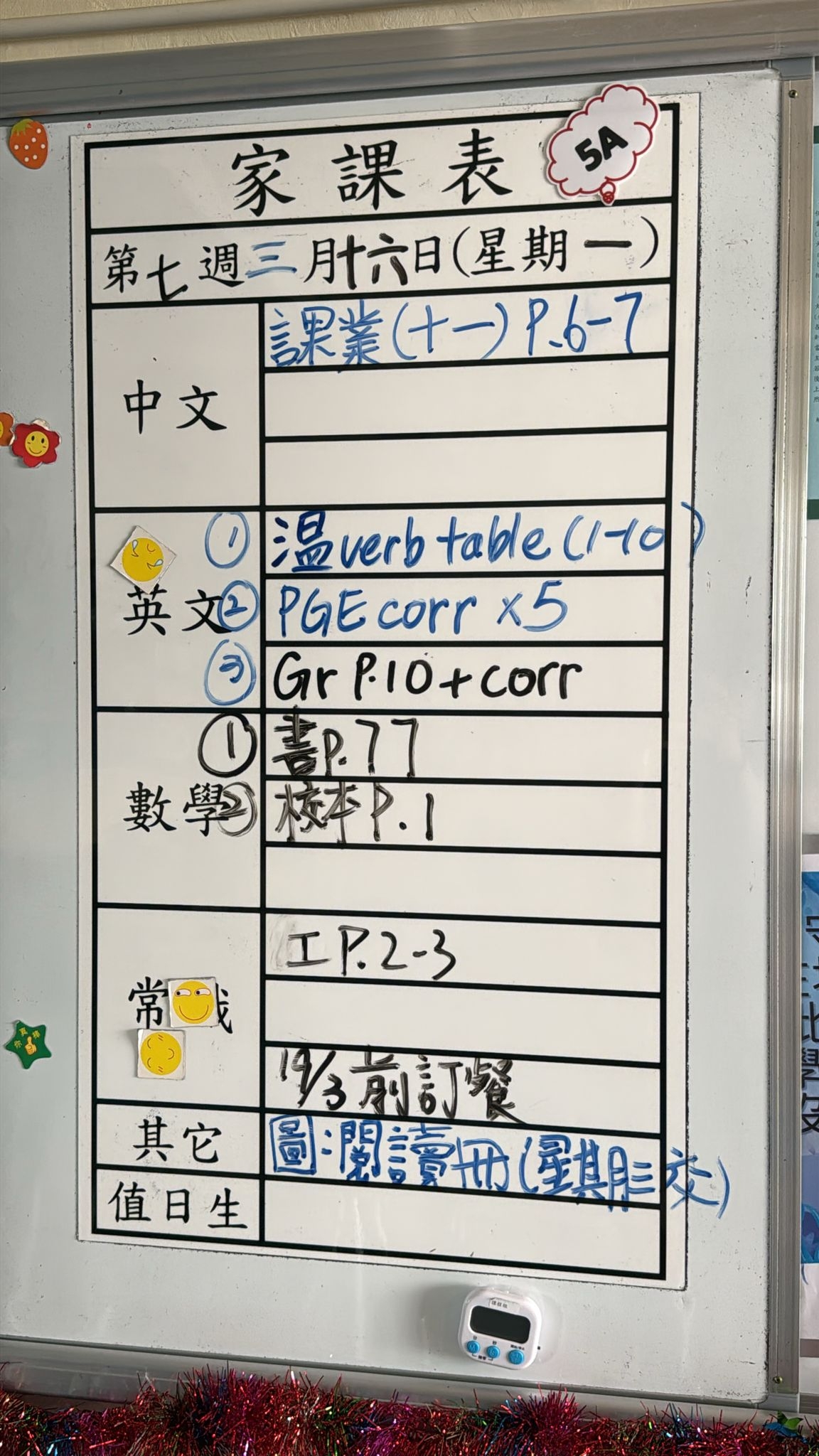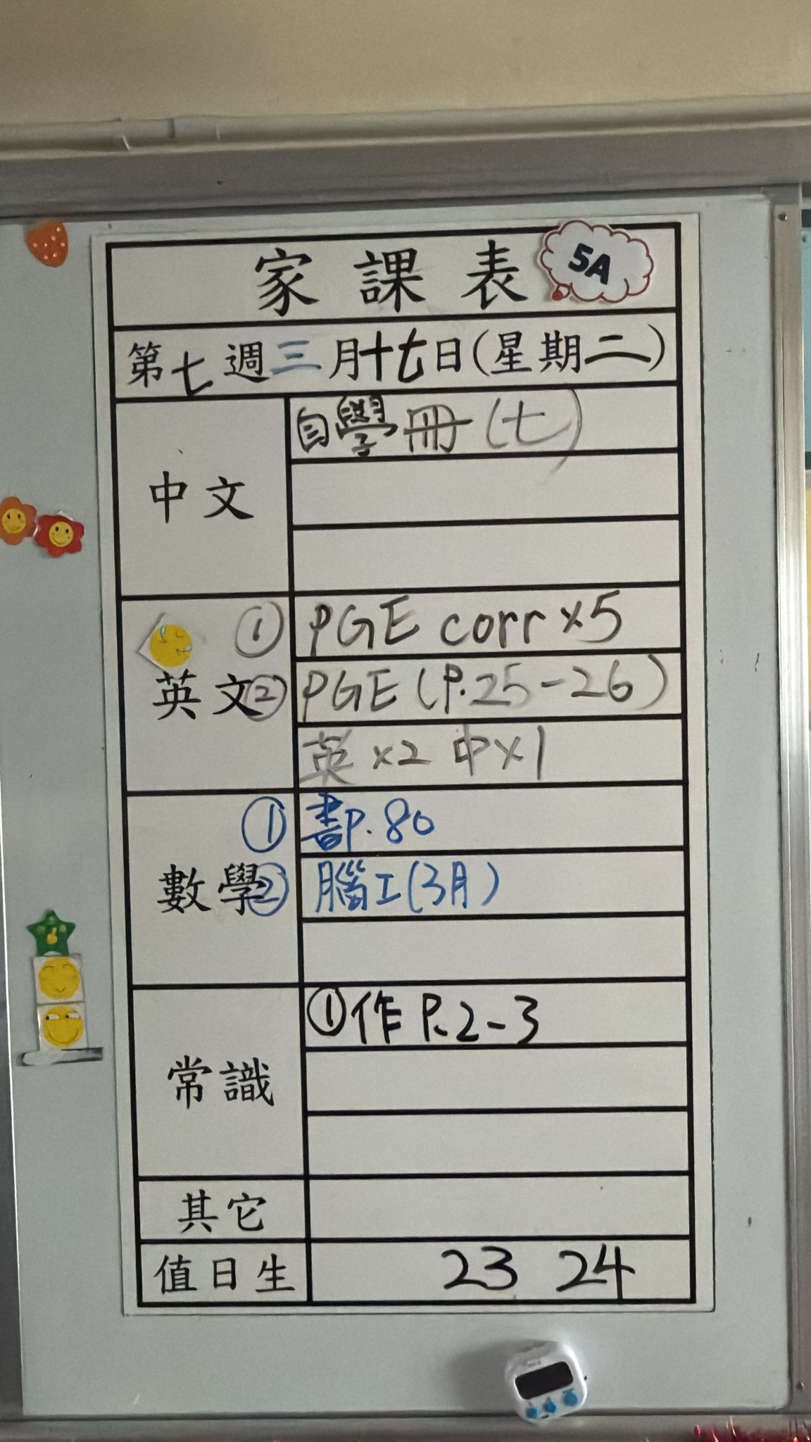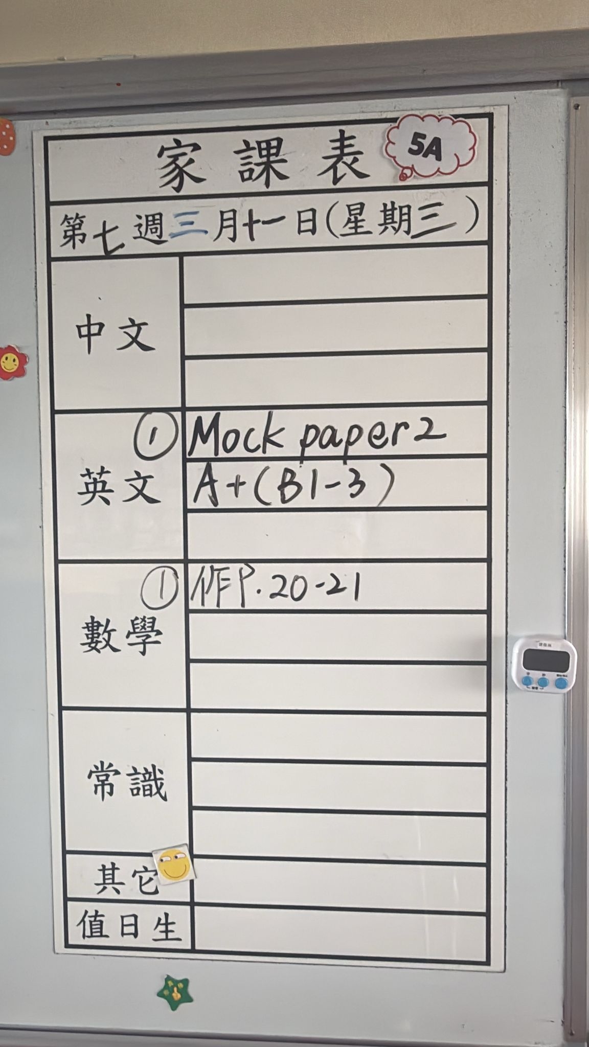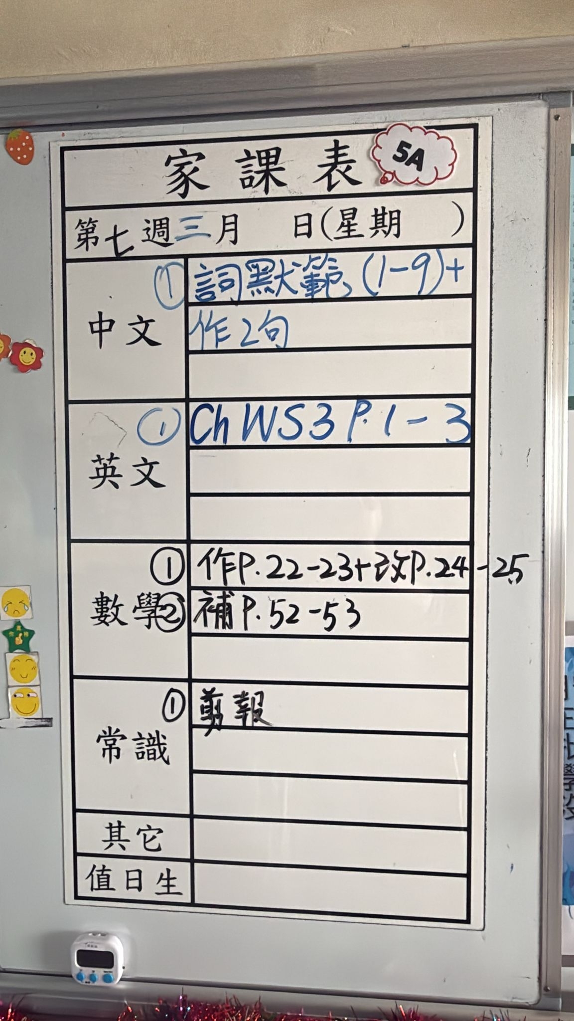 2026-03-23 週一發出之家課:
