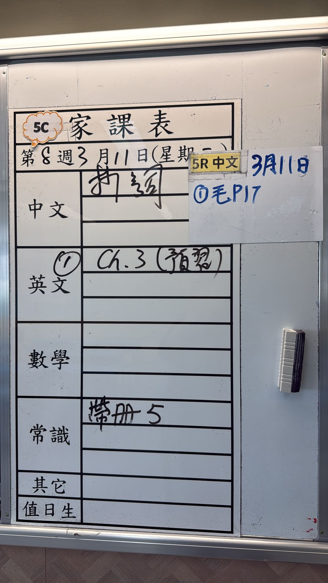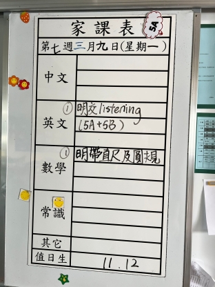 2026-03-11 週三發出之家課:
