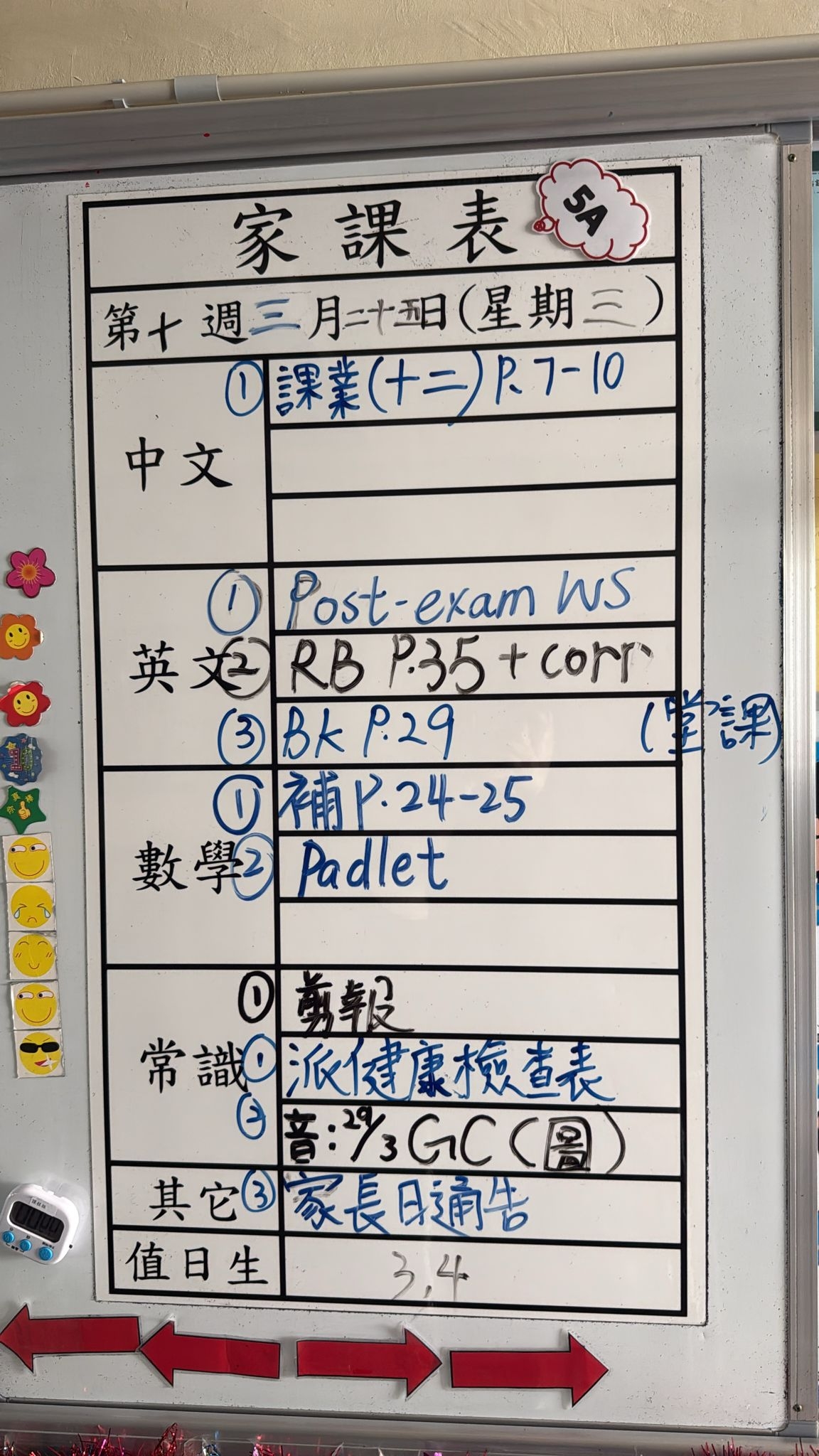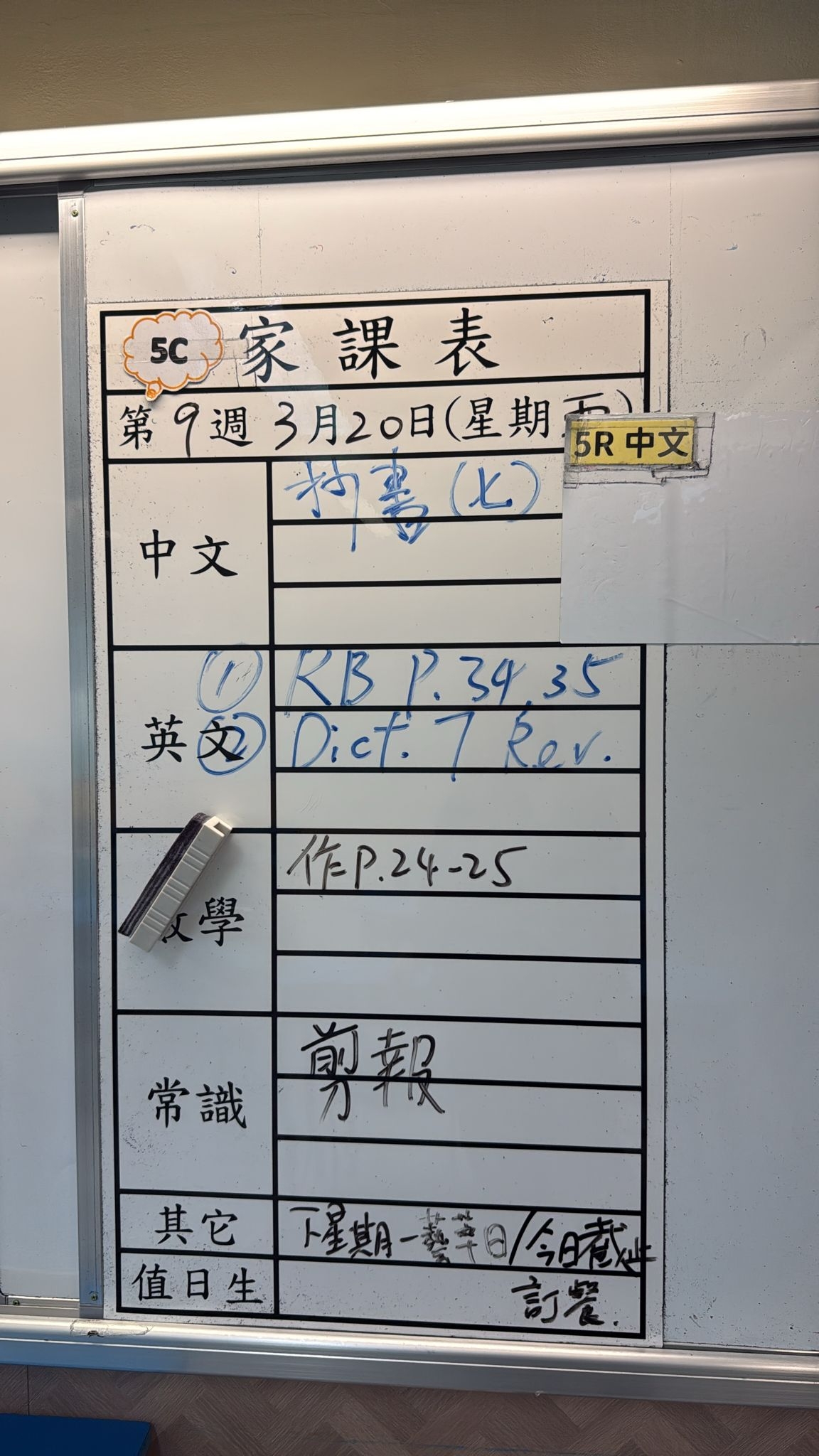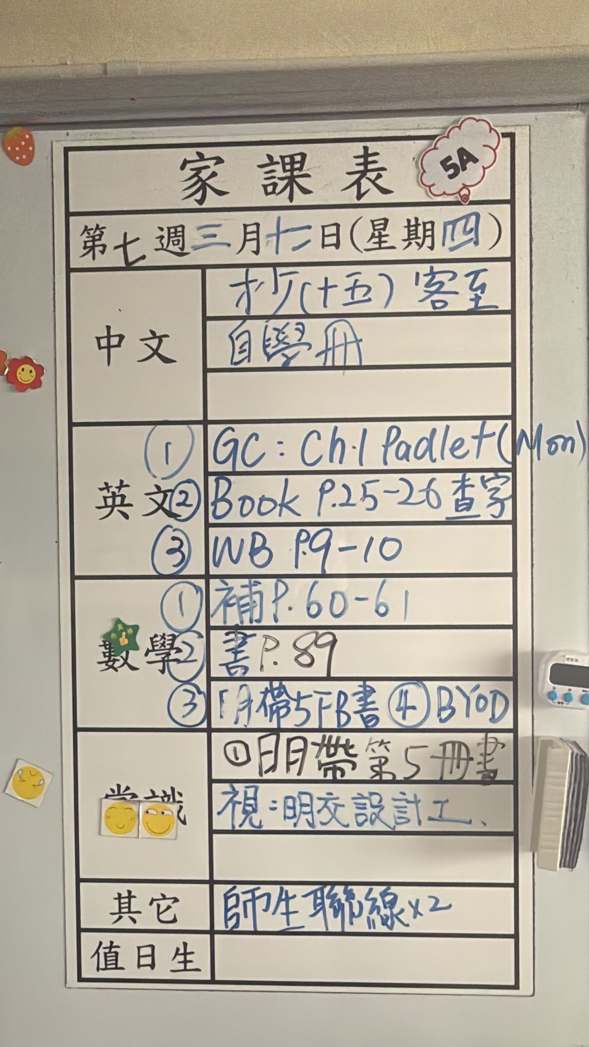 2026-03-25 週三發出之家課: