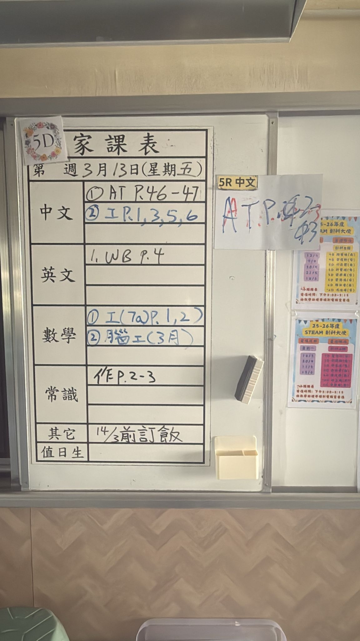 2026-03-13 週五發出之家課: