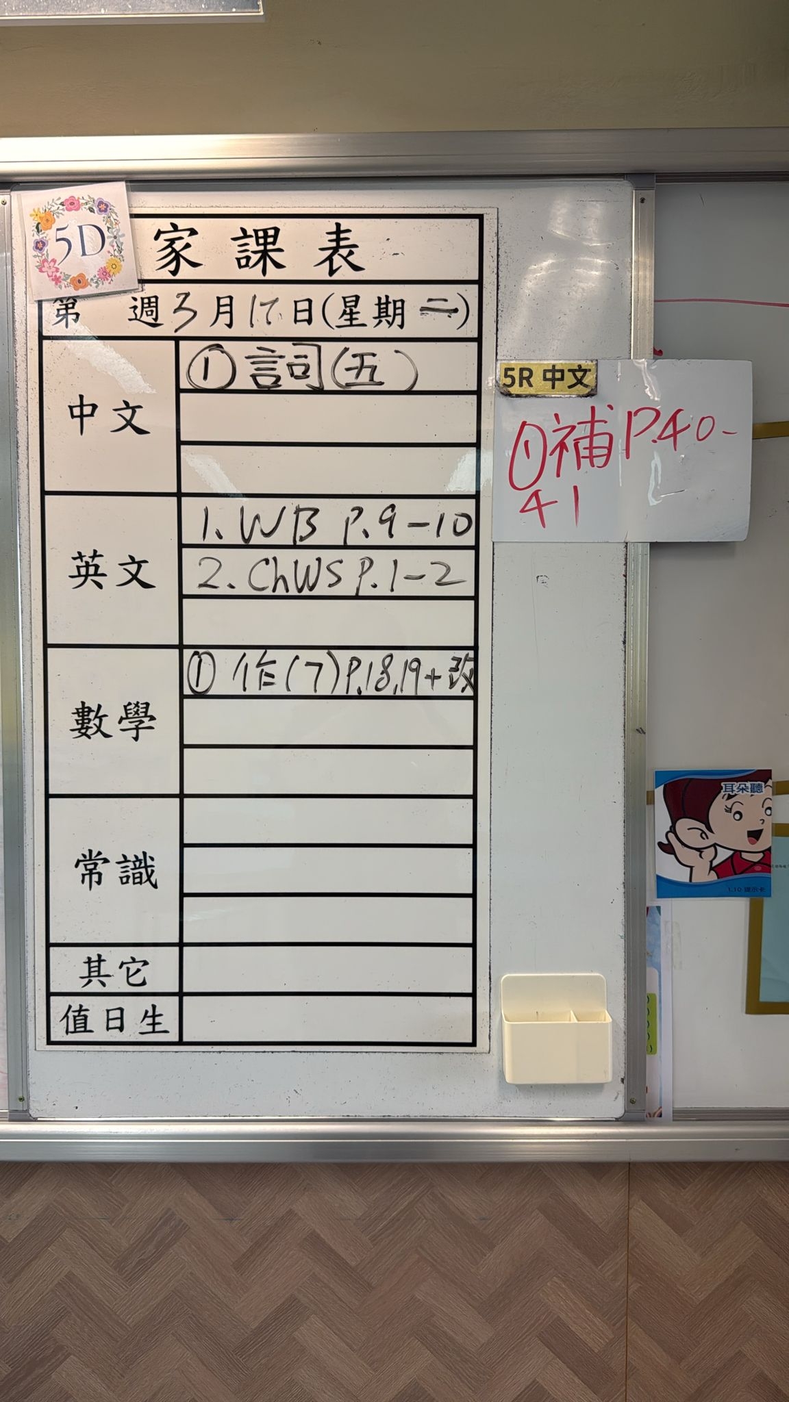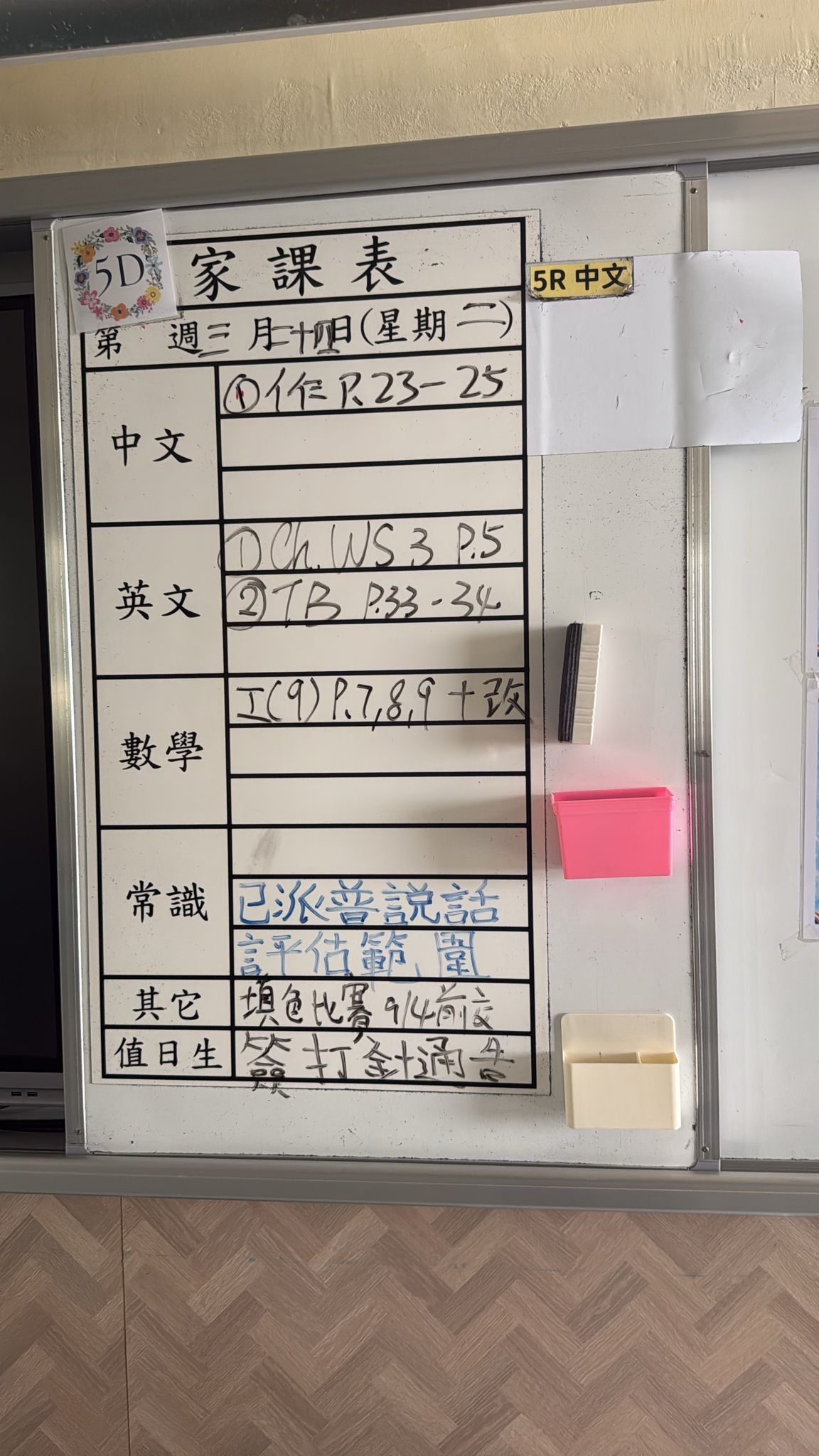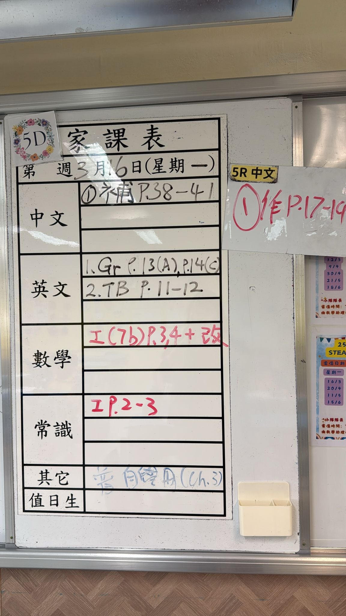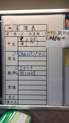 2026-03-17 週二發出之家課: