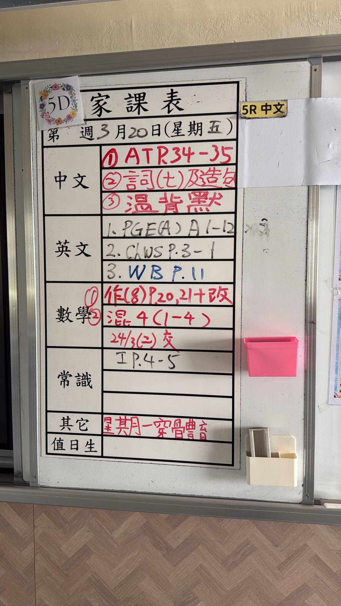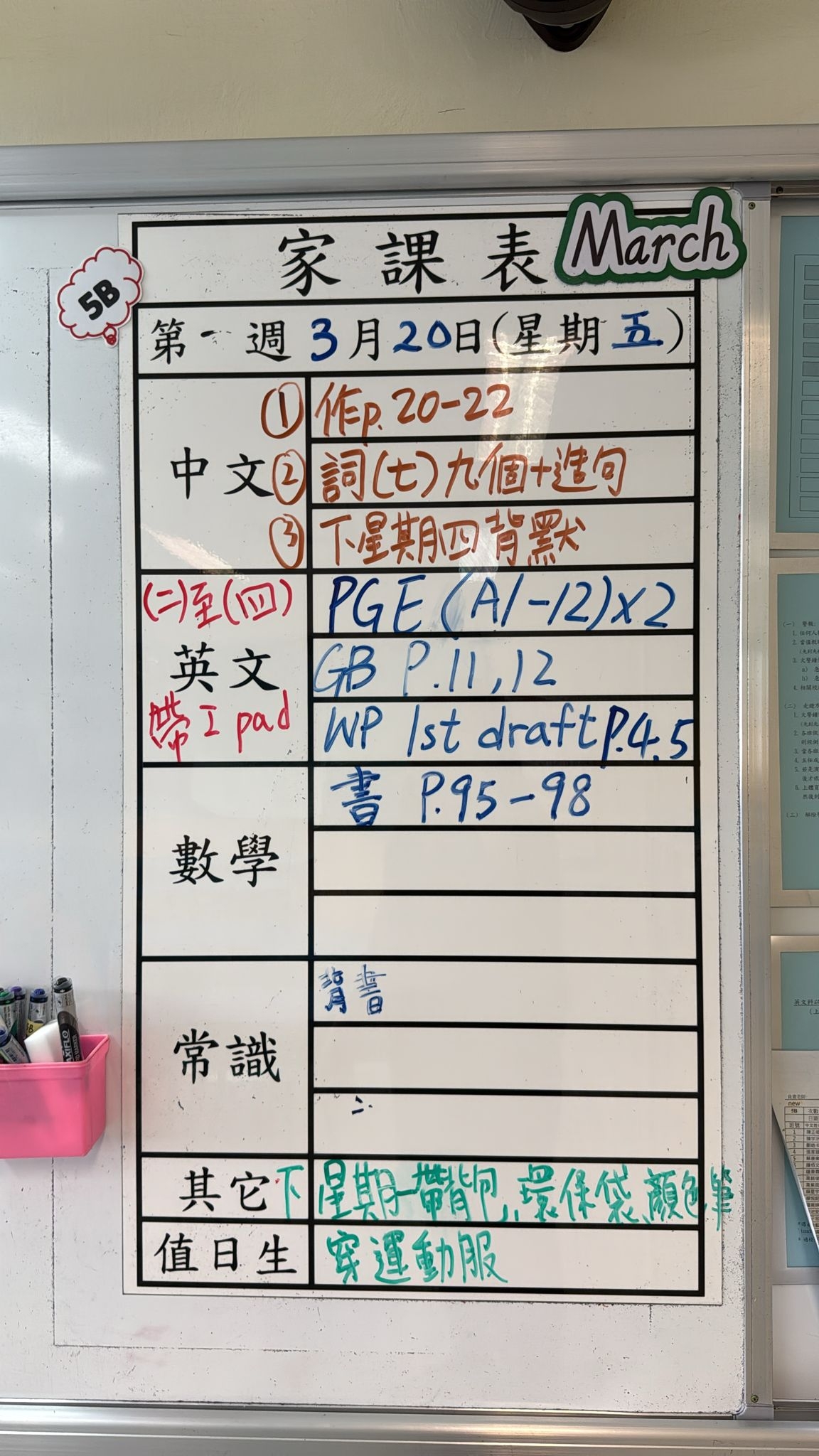 2026-03-20 週五發出之家課: