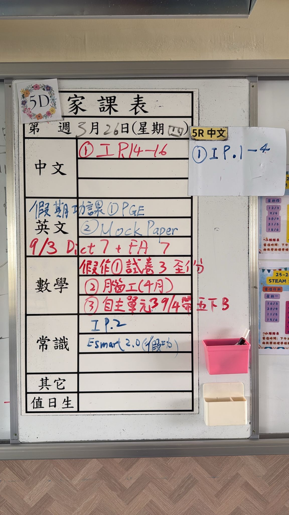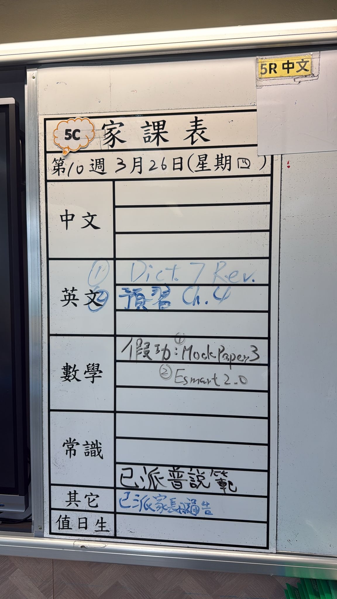 2026-03-26 週四發出之家課: