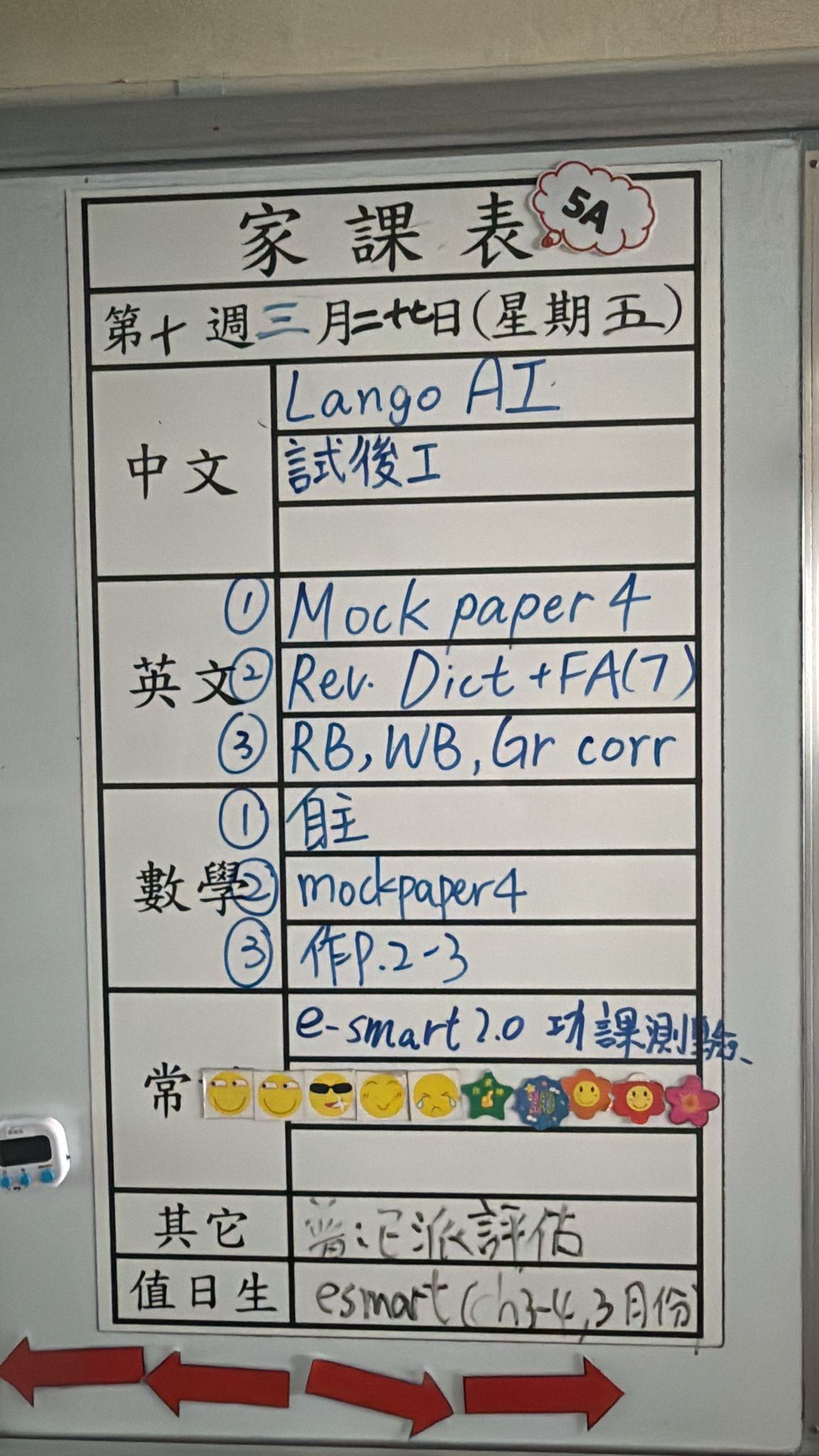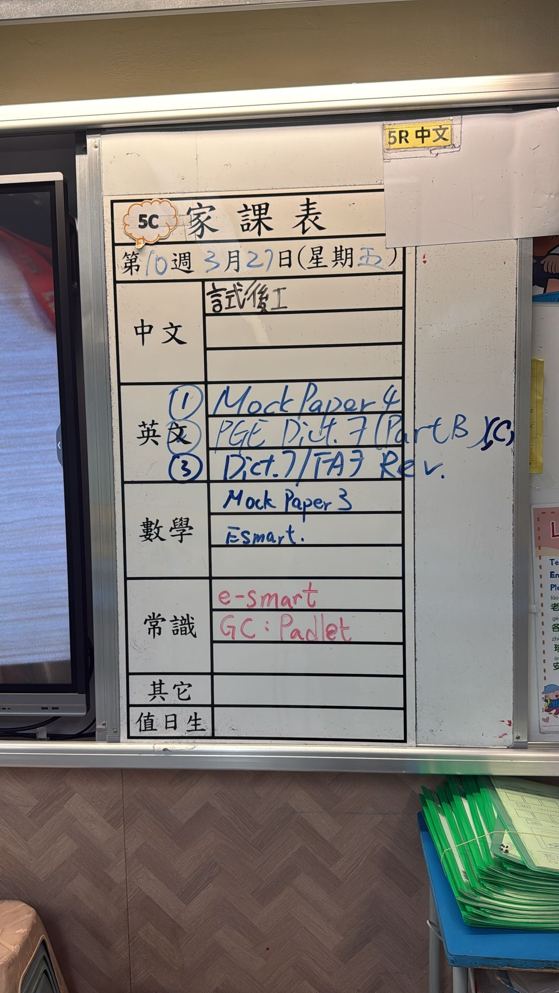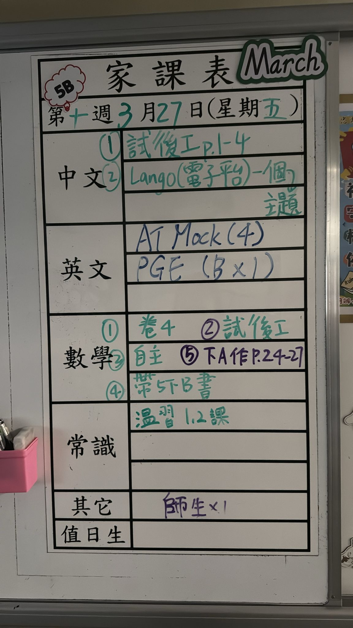 2026-03-27 週五發出之家課: