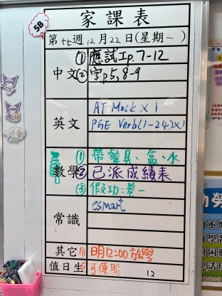 2025-12-22 週一發出之家課: