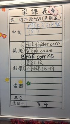 2026-02-04 週三發出之家課: