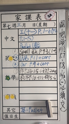 2025-10-22 週三發出之家課: