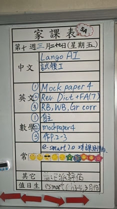 2026-03-04 週三發出之家課: