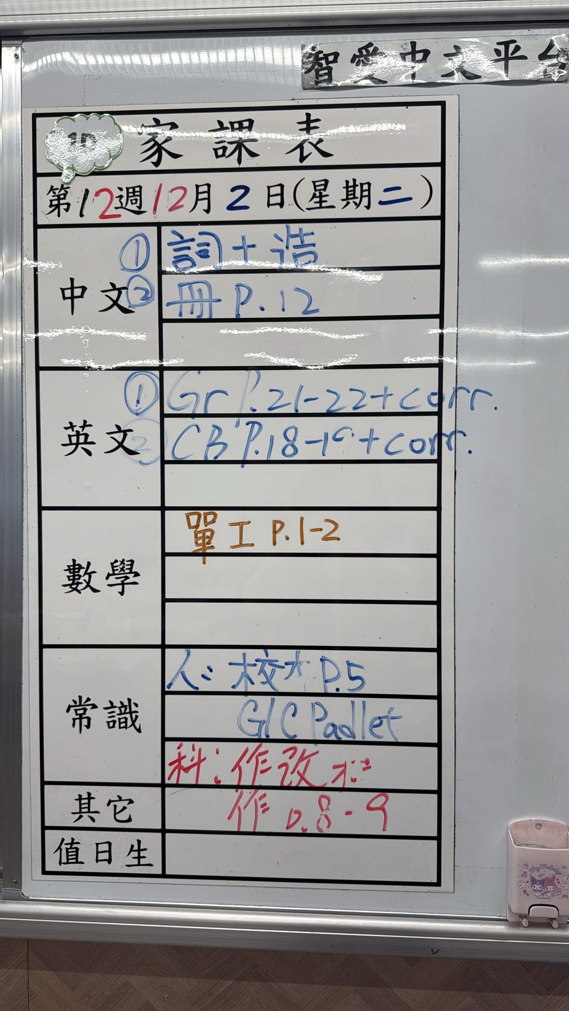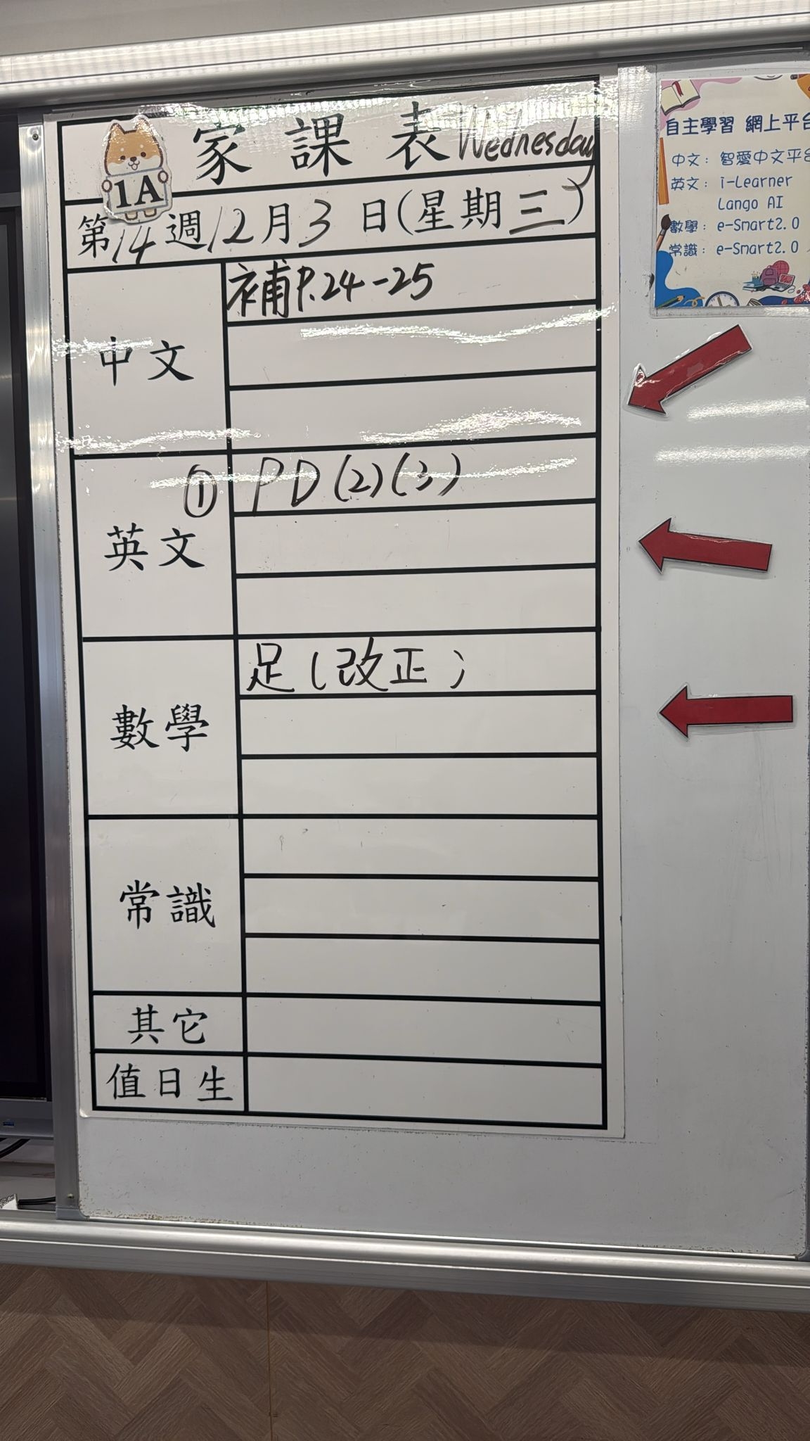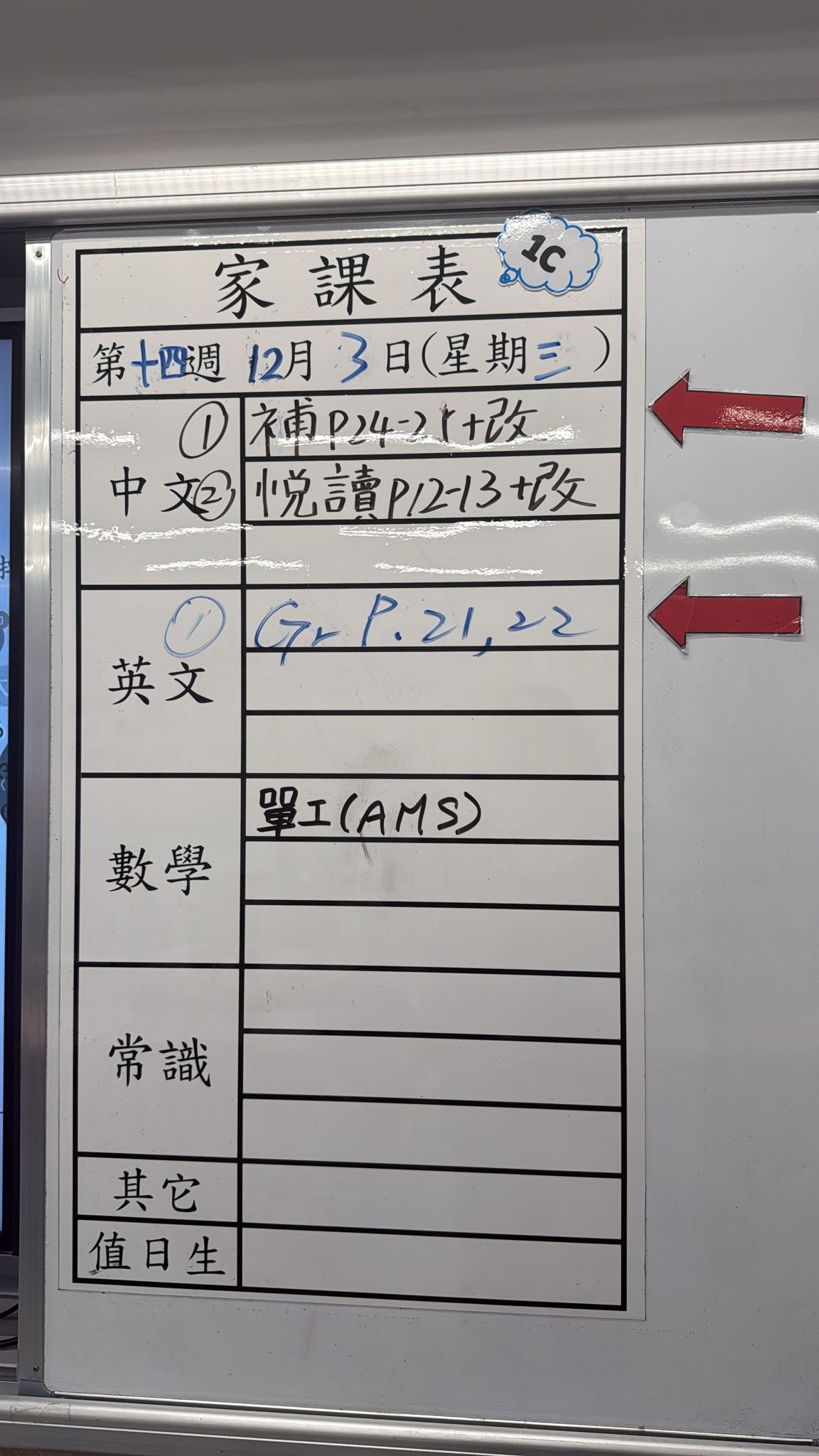 2025-12-03 週三發出之家課: