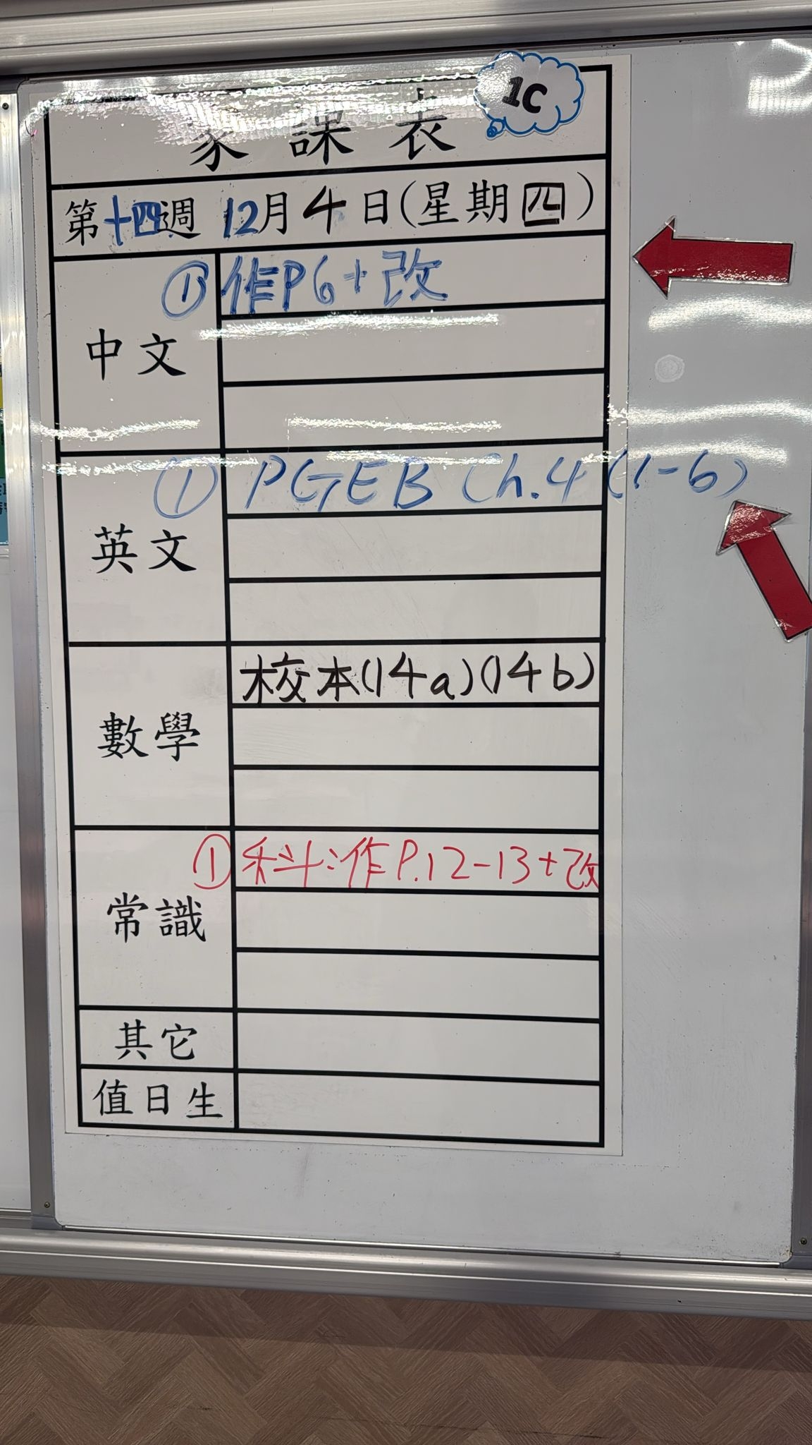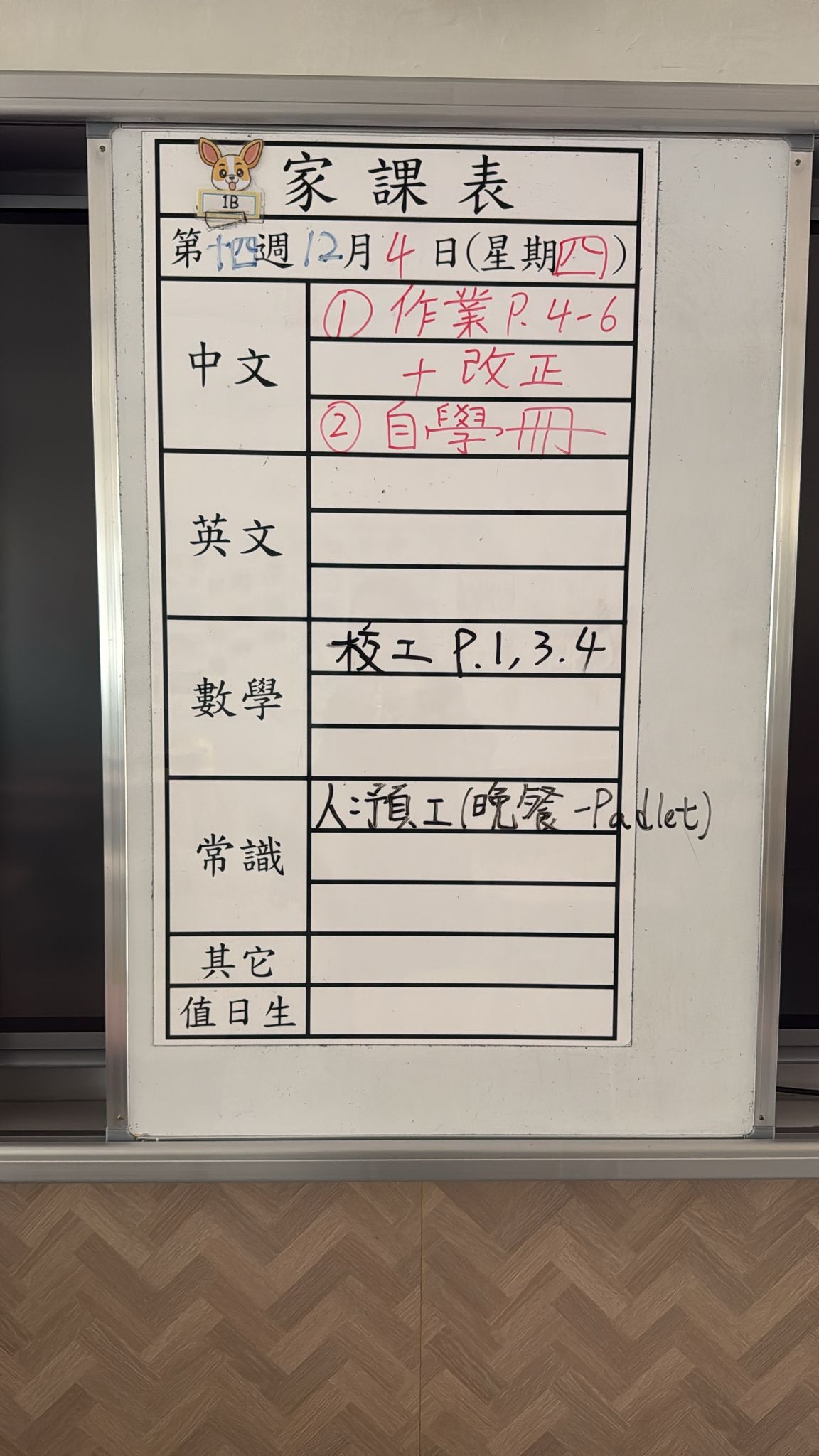 2025-12-04 週四發出之家課: