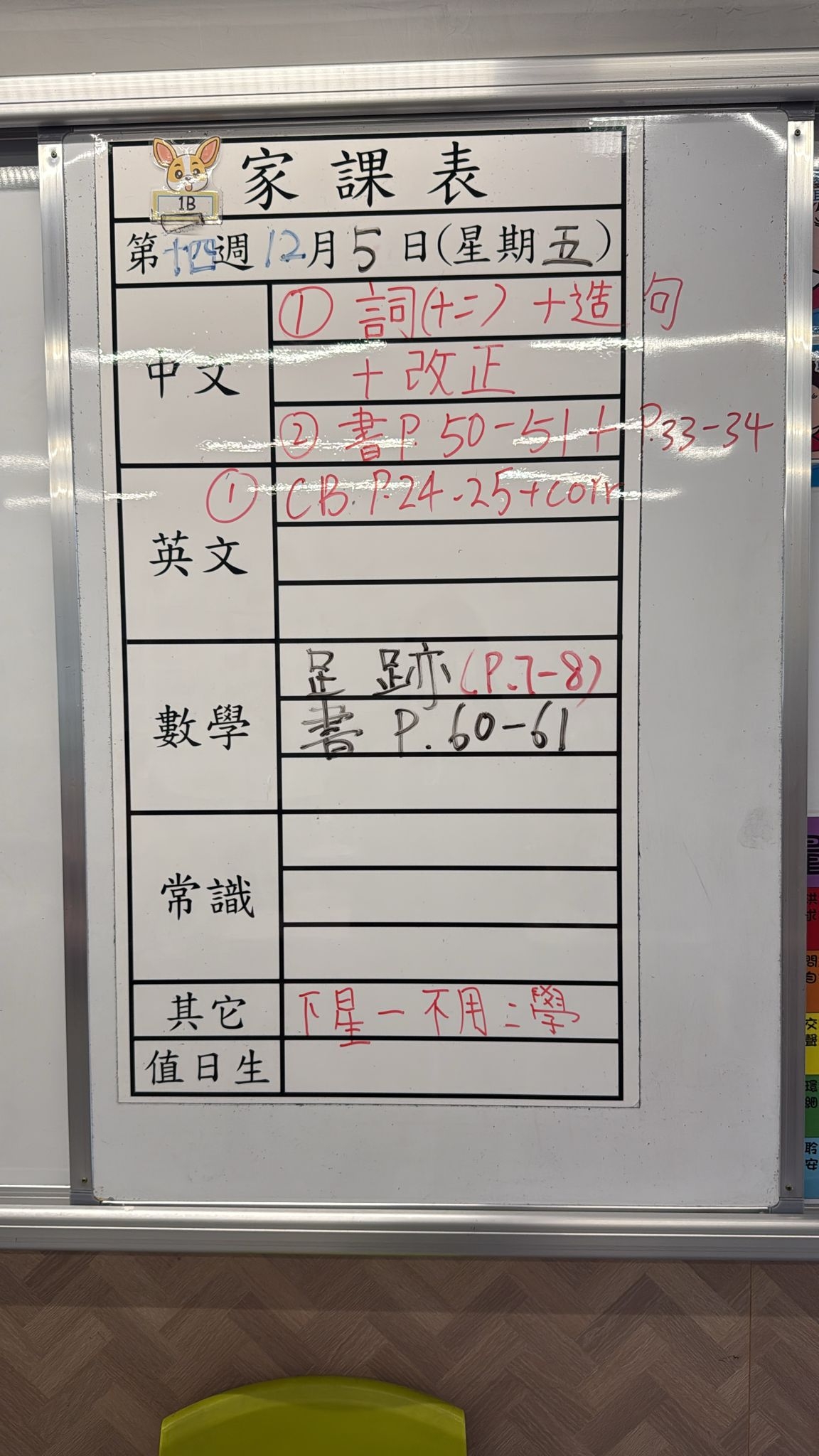2025-10-23 週四發出之家課:
