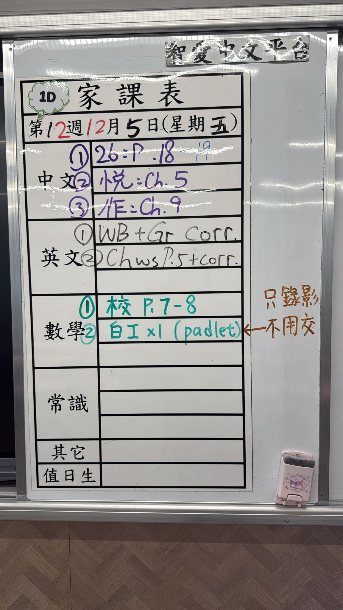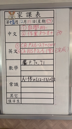2025-11-12 週三發出之家課: