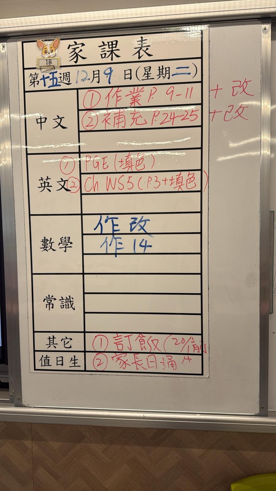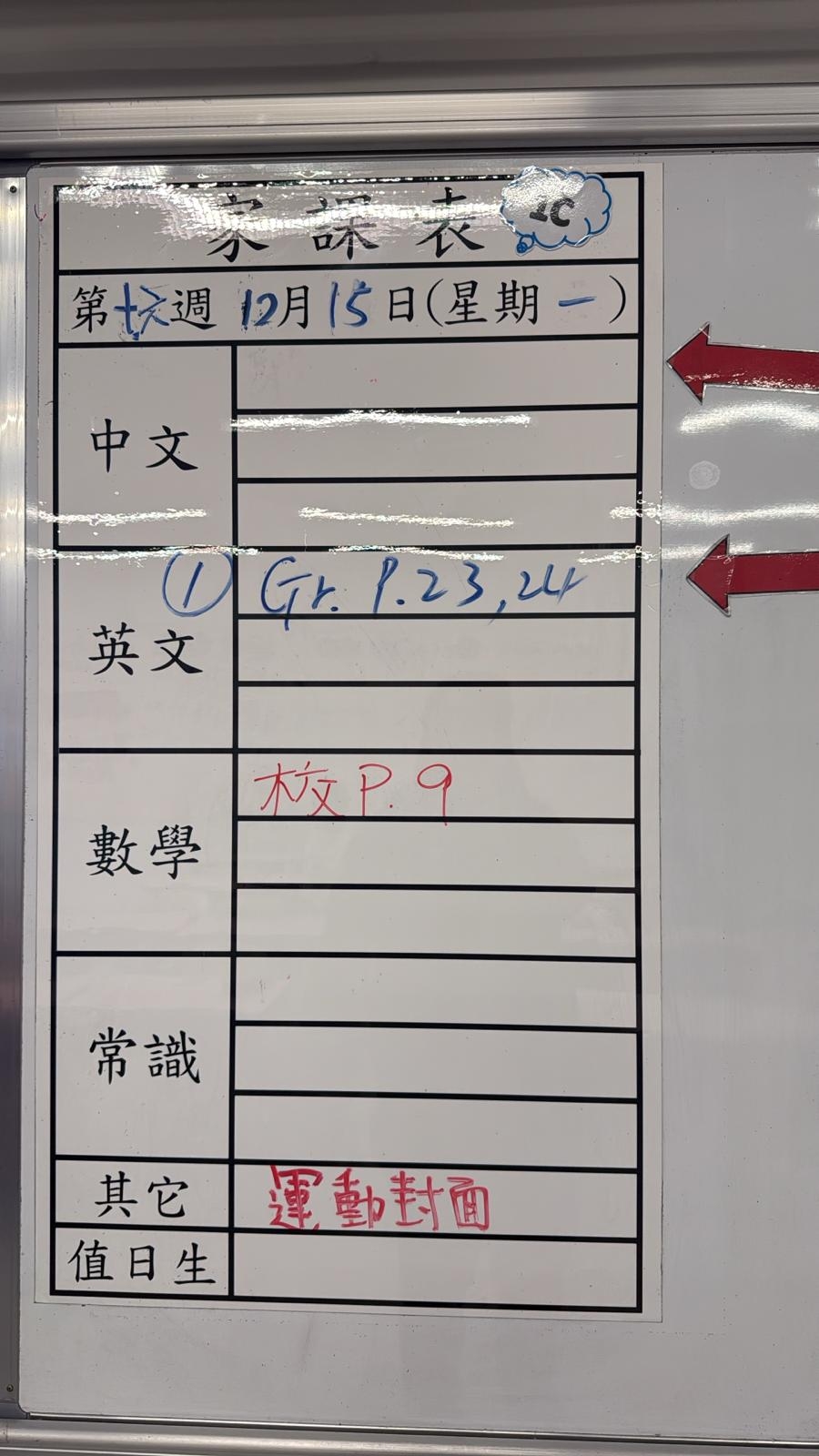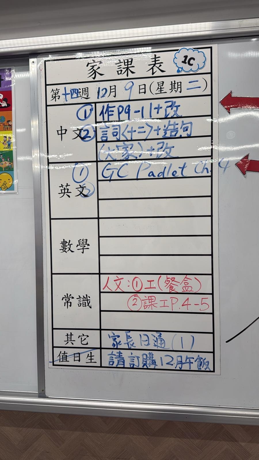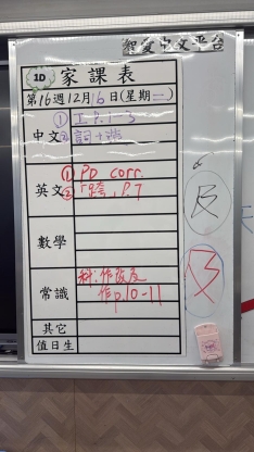 2025-12-09 週二發出之家課: