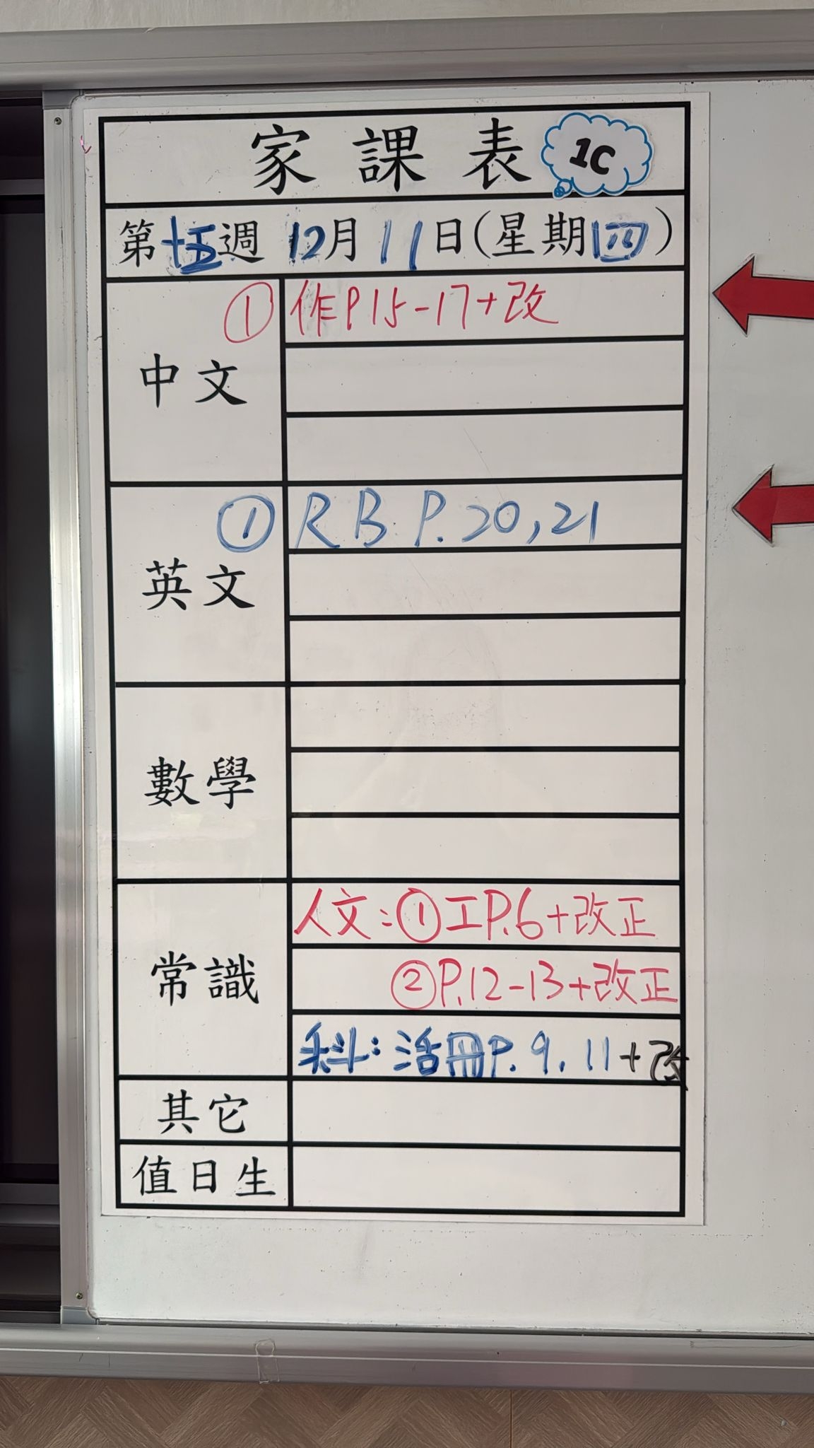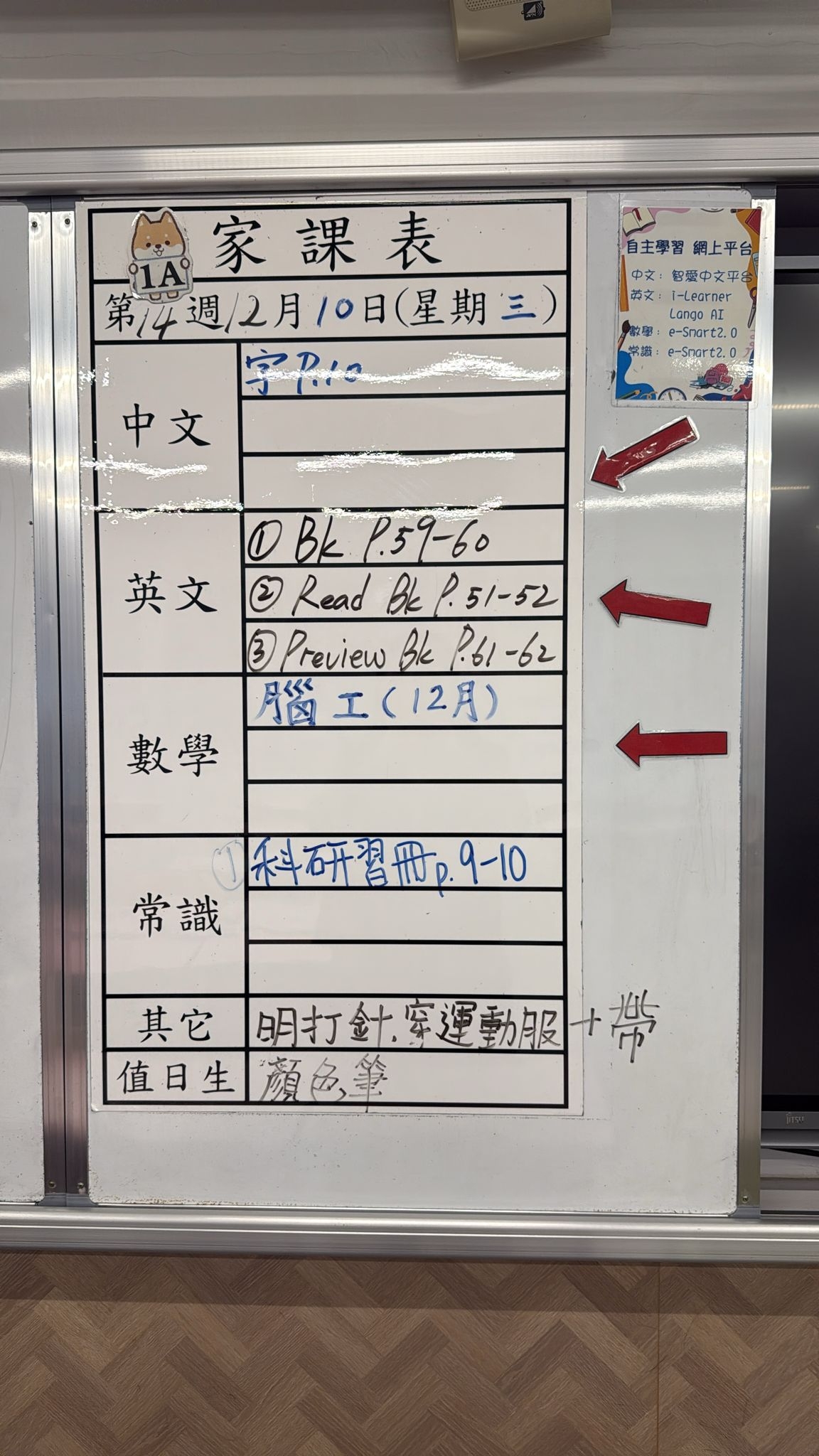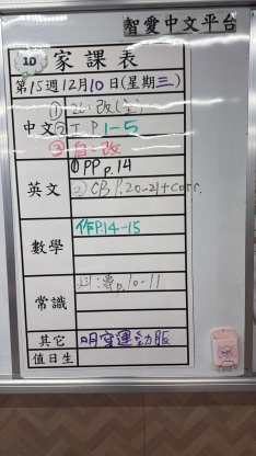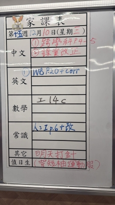 2025-12-10 週三發出之家課: