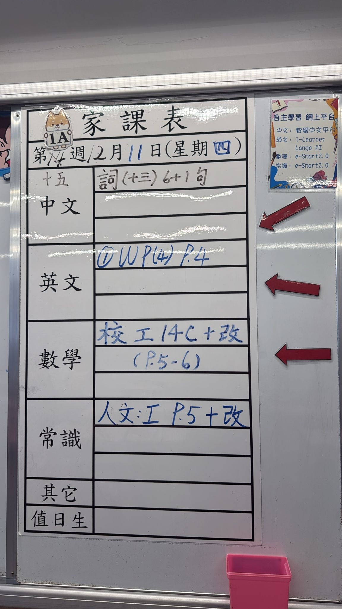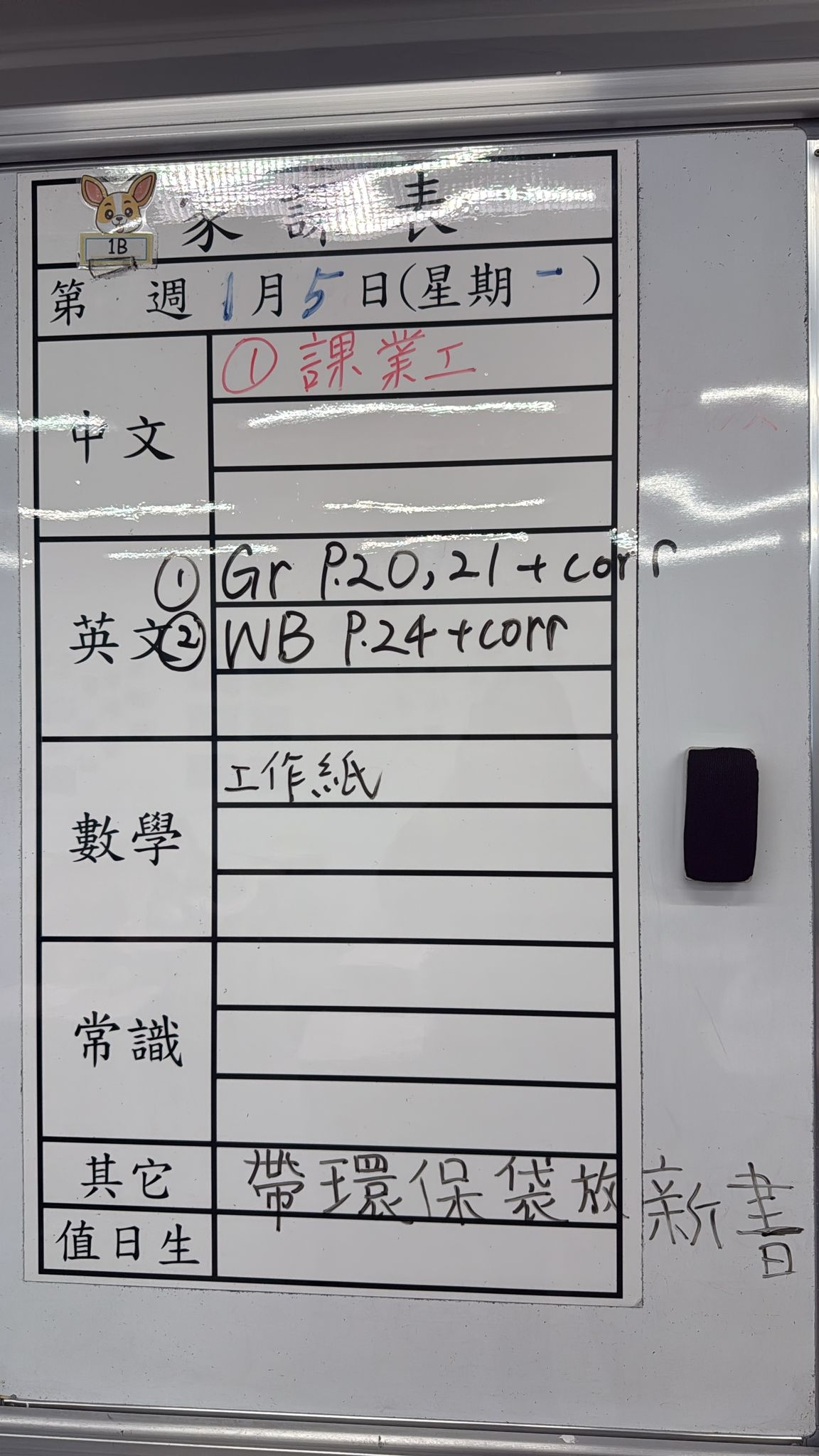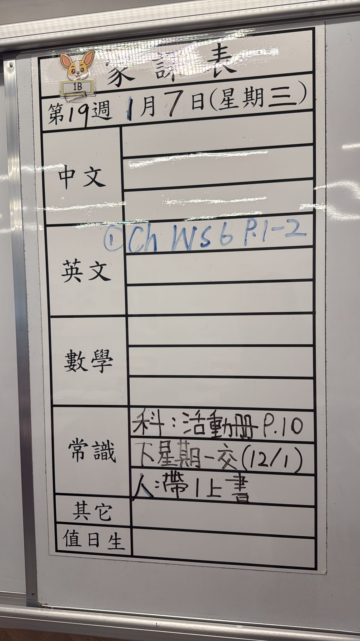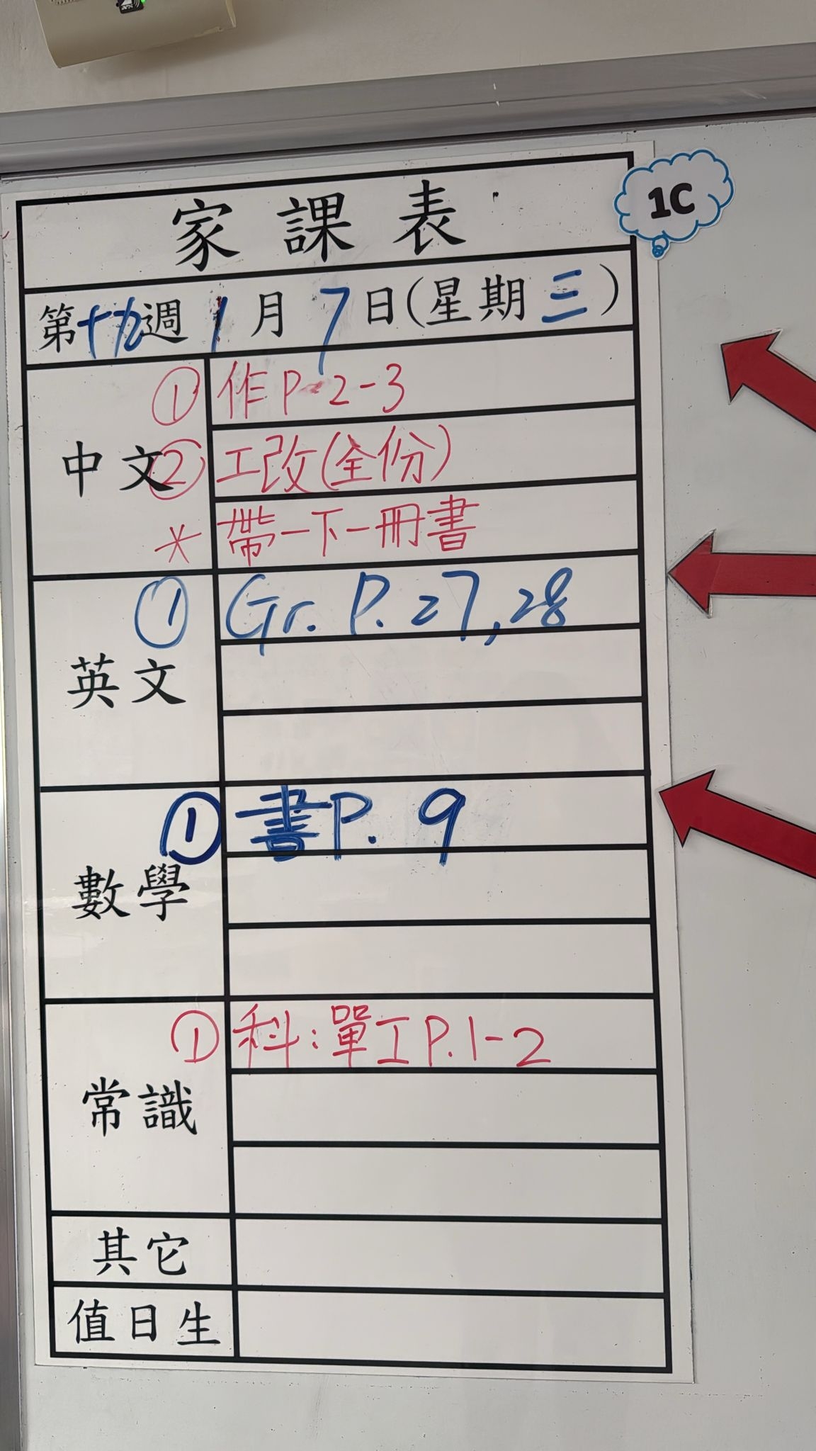 2026-01-07 週三發出之家課:
