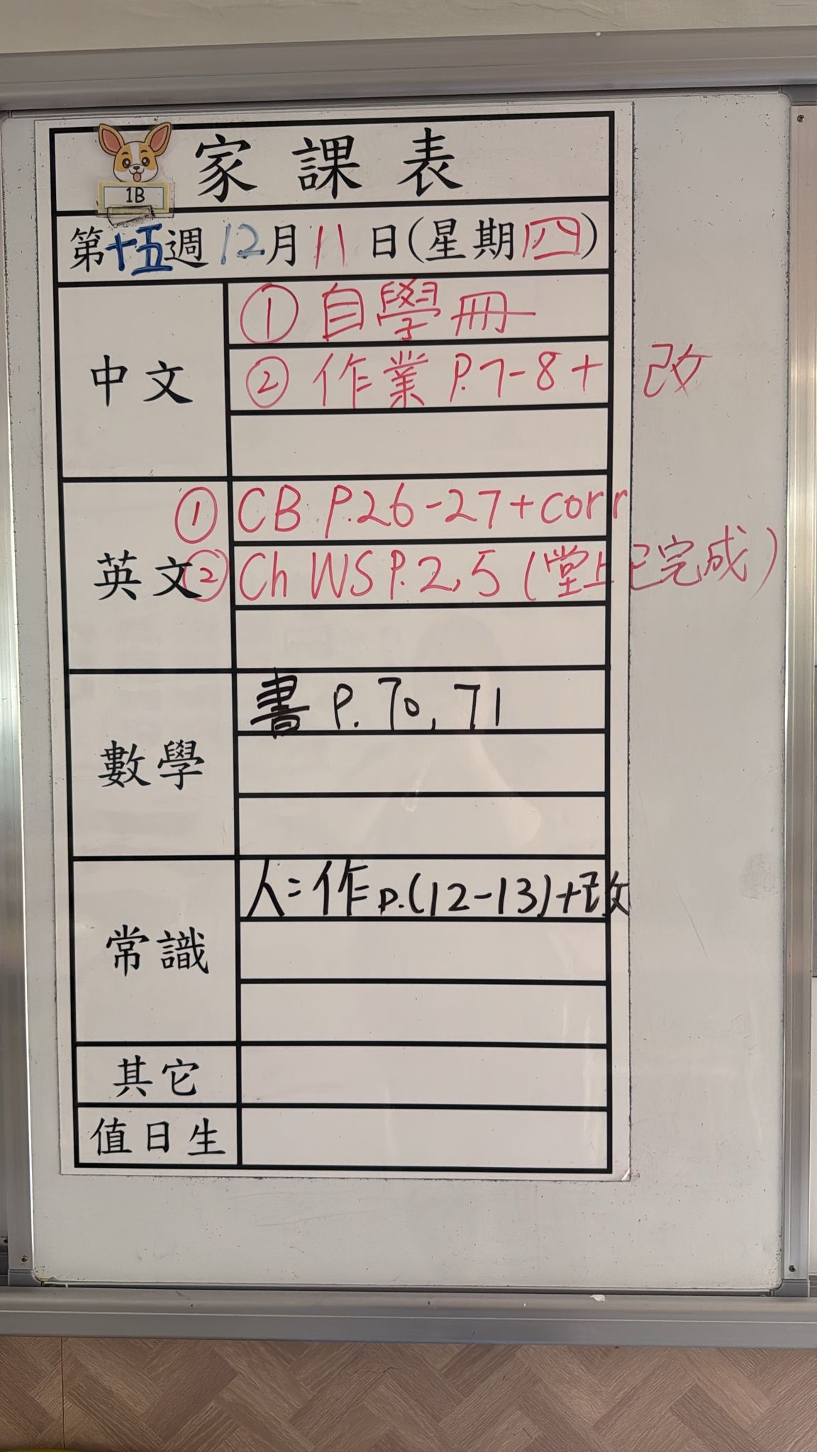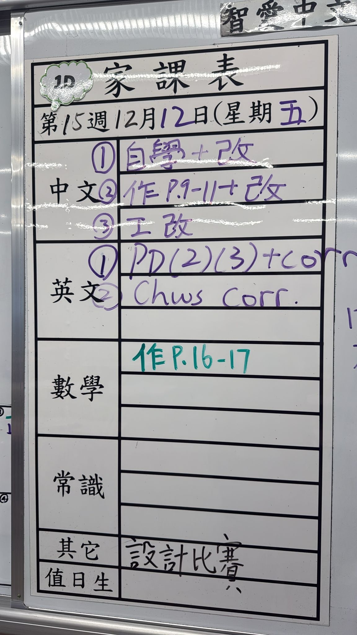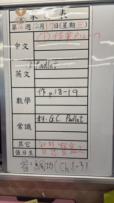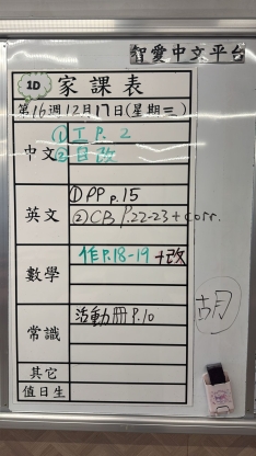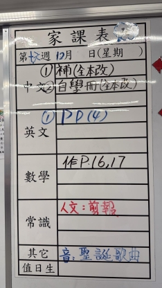 2025-12-17 週三發出之家課: