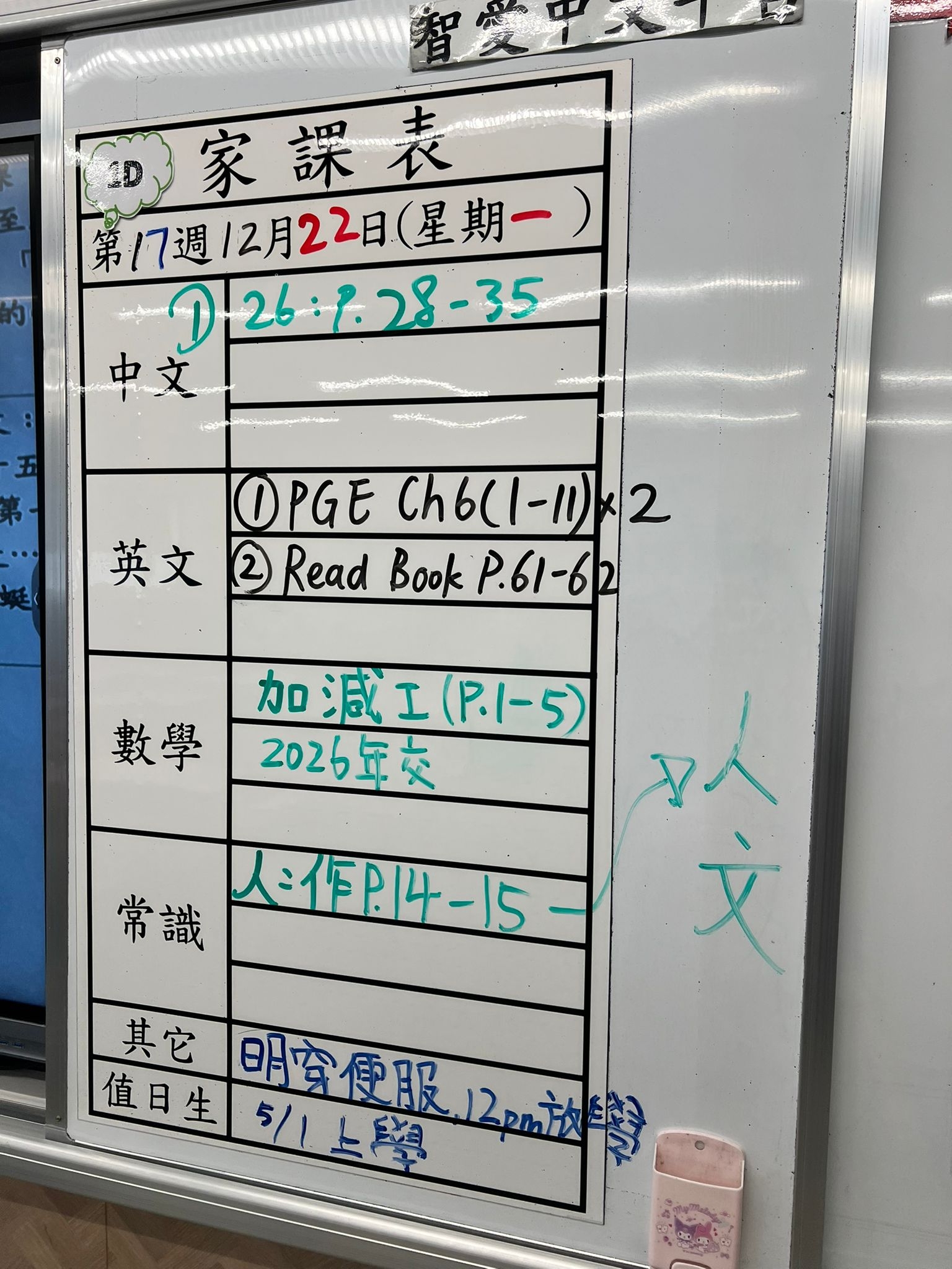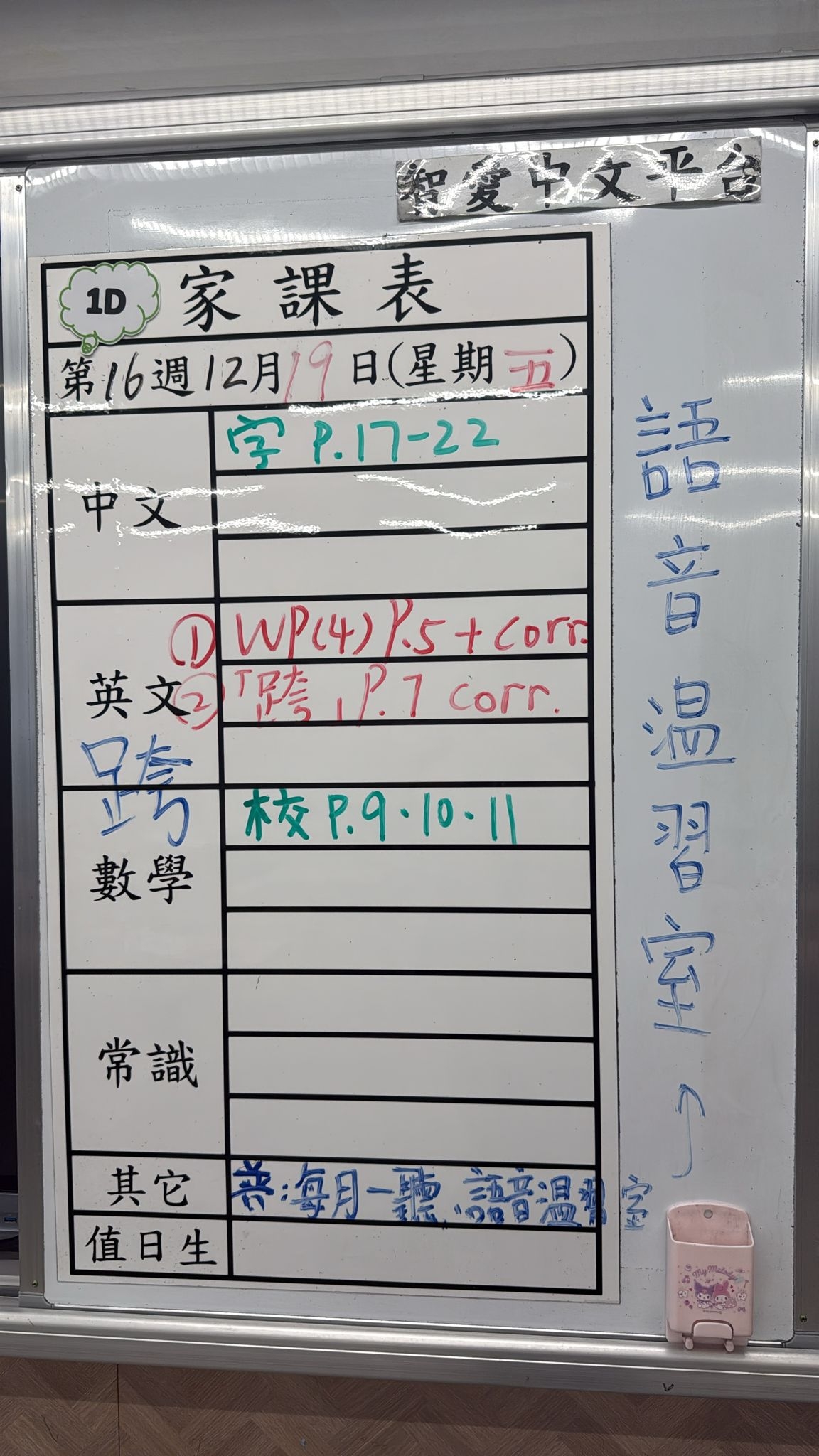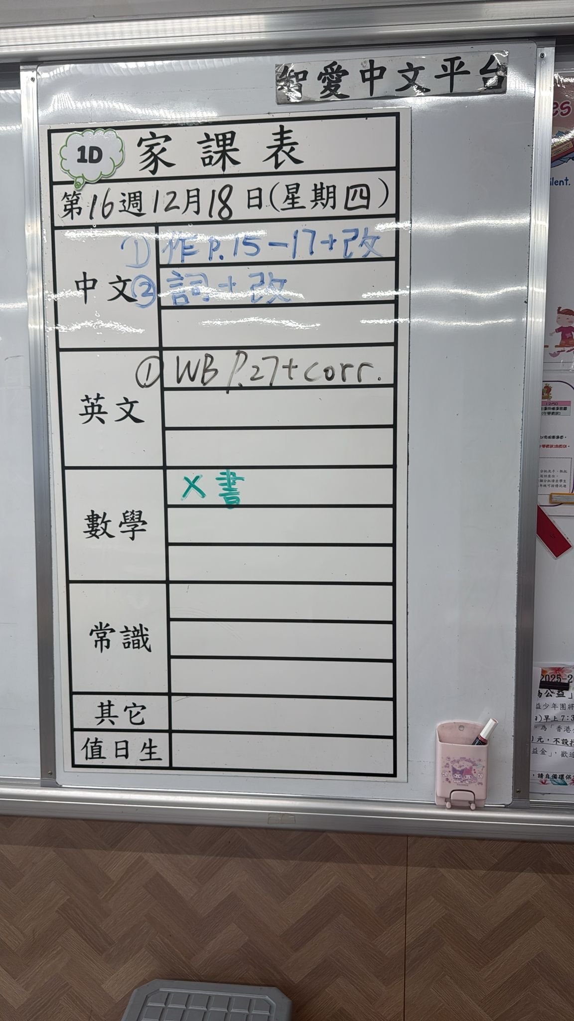 2025-12-17 週三發出之家課: