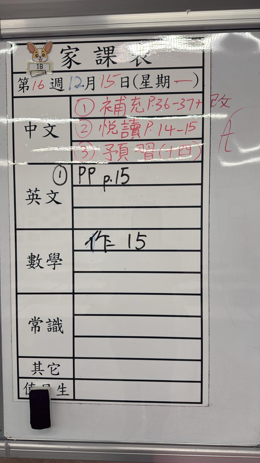 2025-10-15 週三發出之家課: