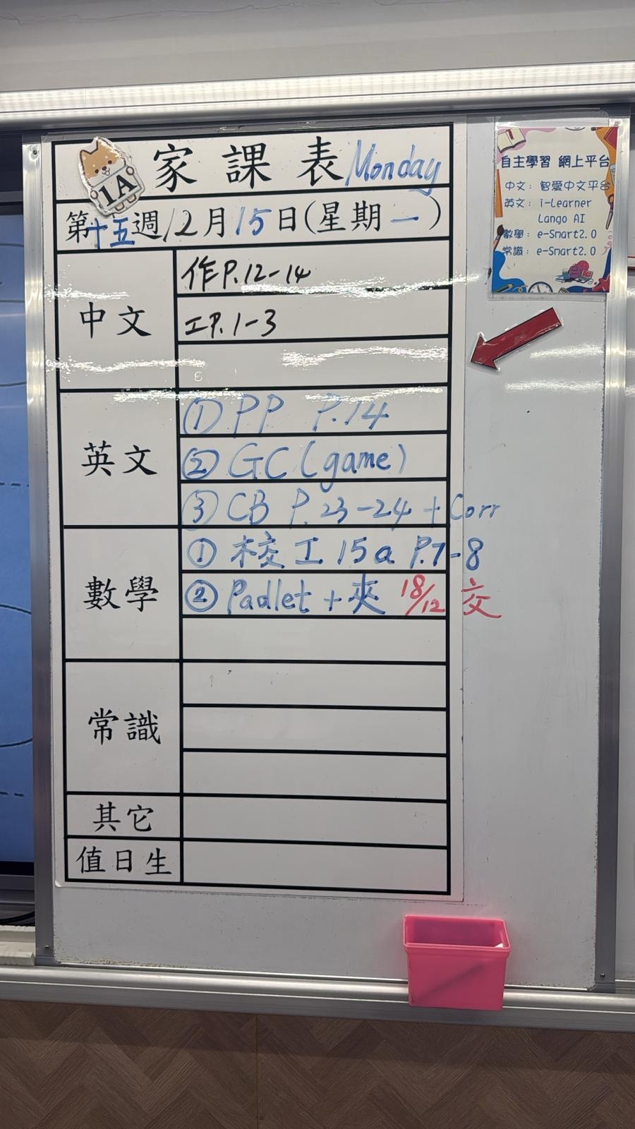 2025-11-18 週二發出之家課:
