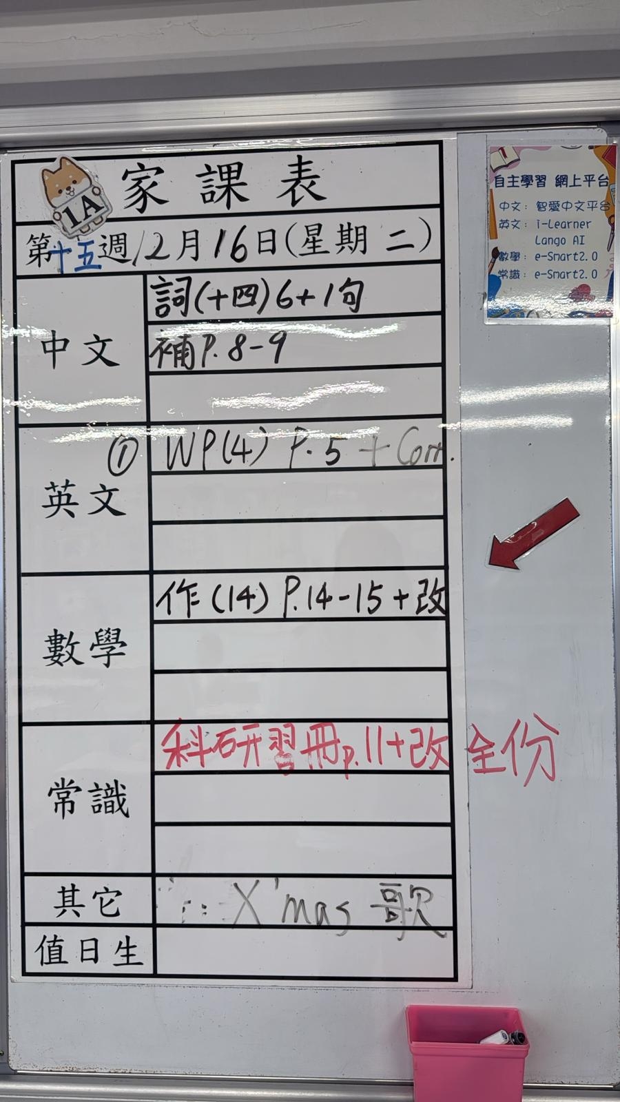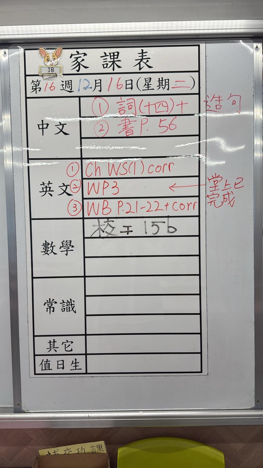2025-12-16 週二發出之家課: