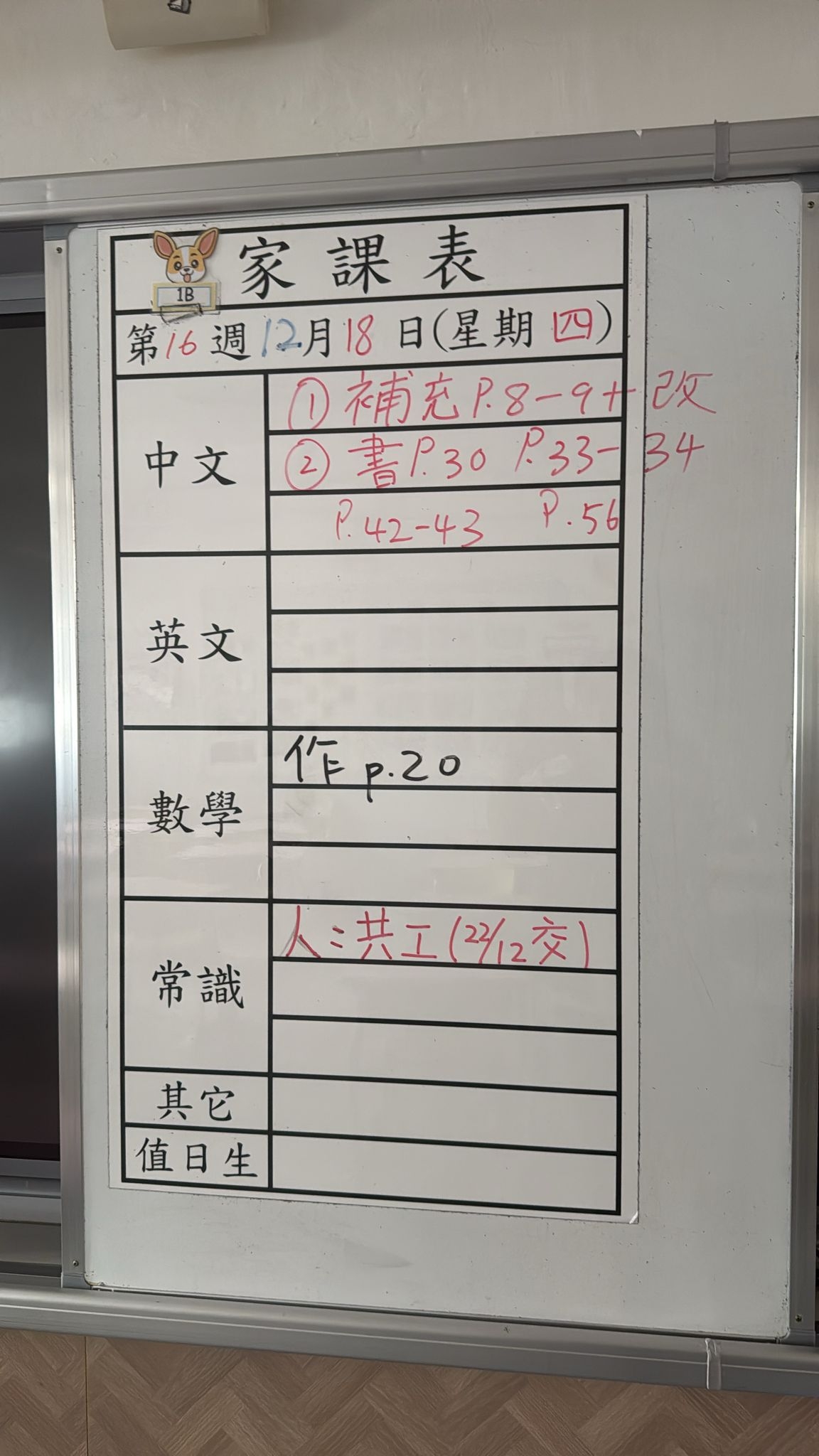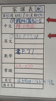 2025-12-18 週四發出之家課:
