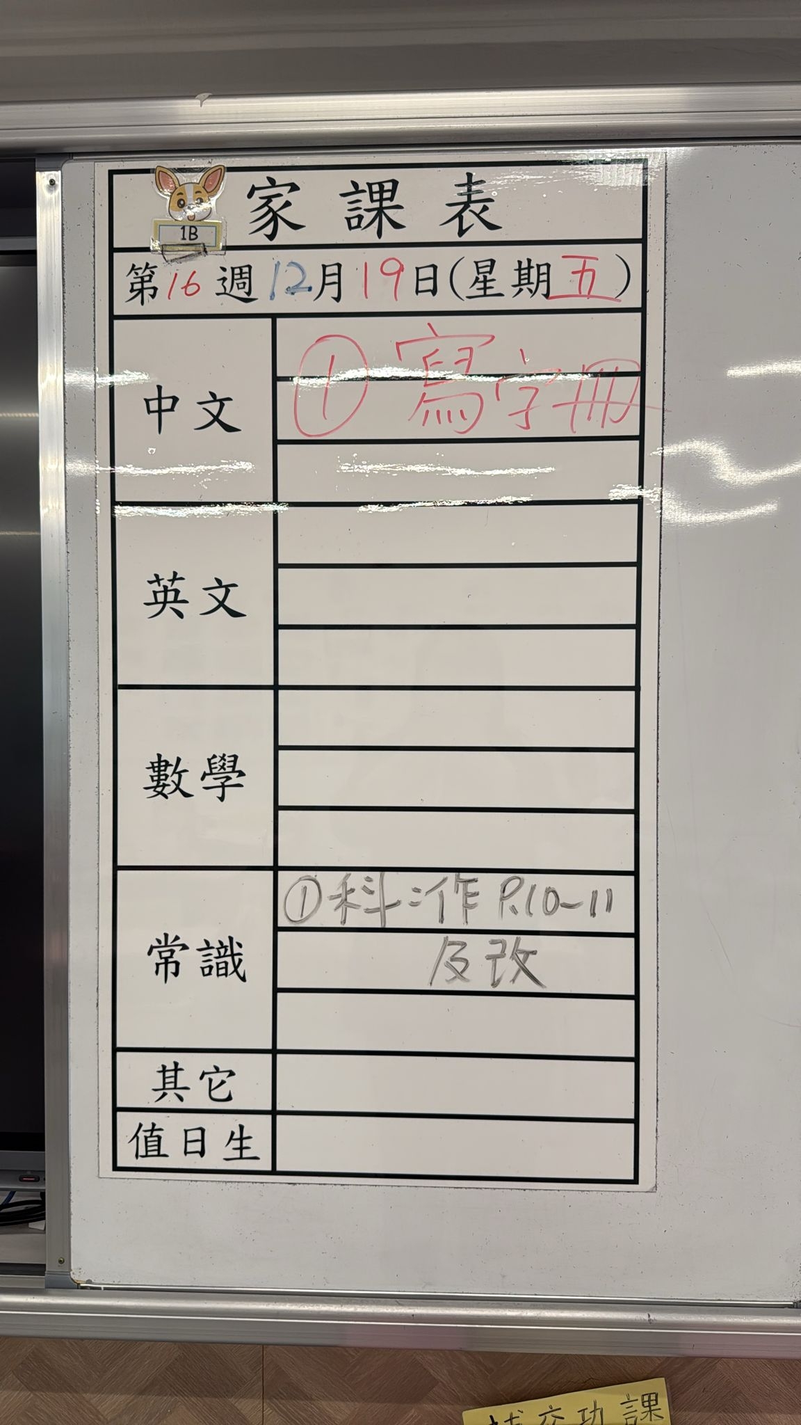 2025-10-22 週三發出之家課: