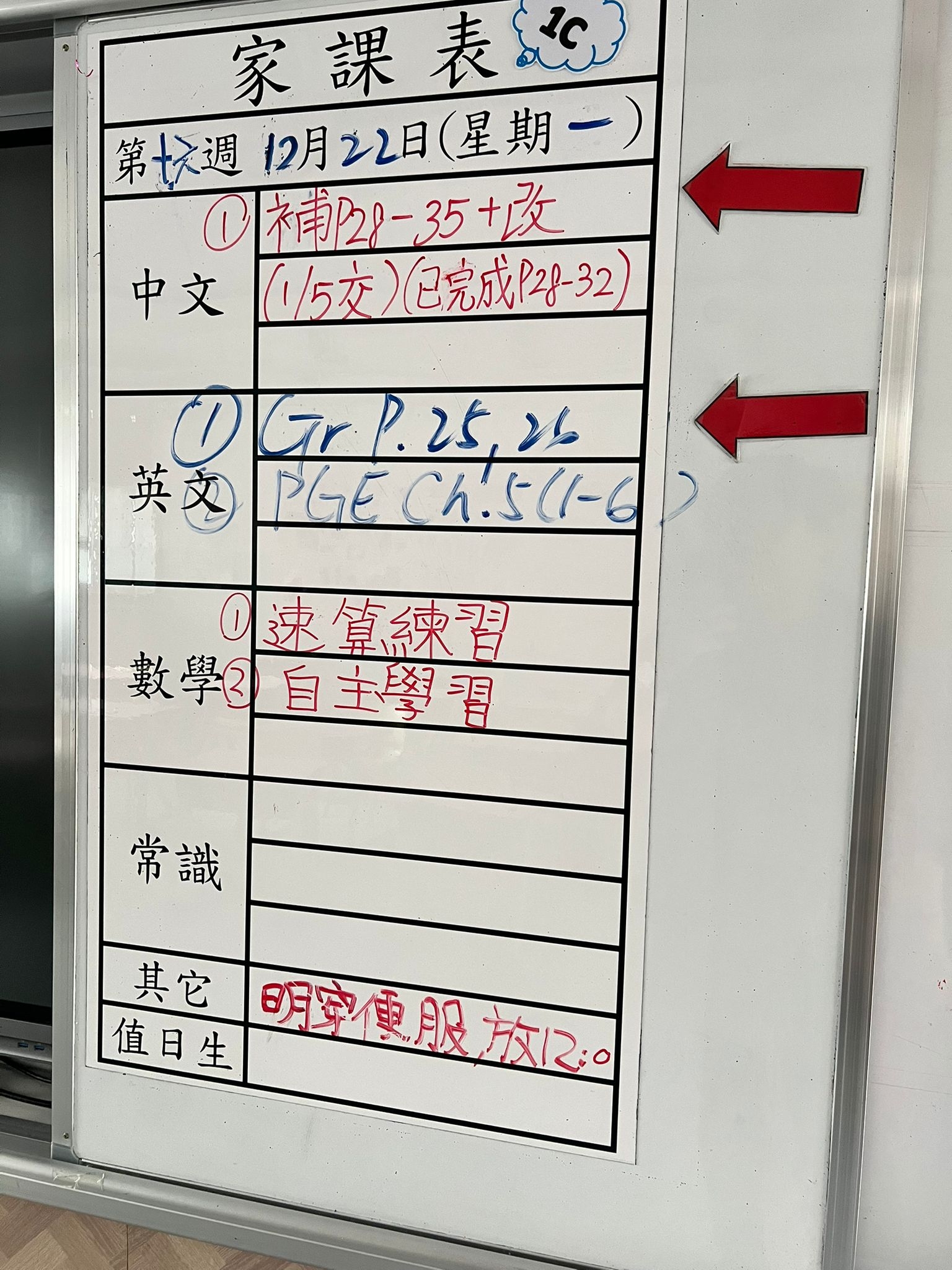 2025-12-22 週一發出之家課: