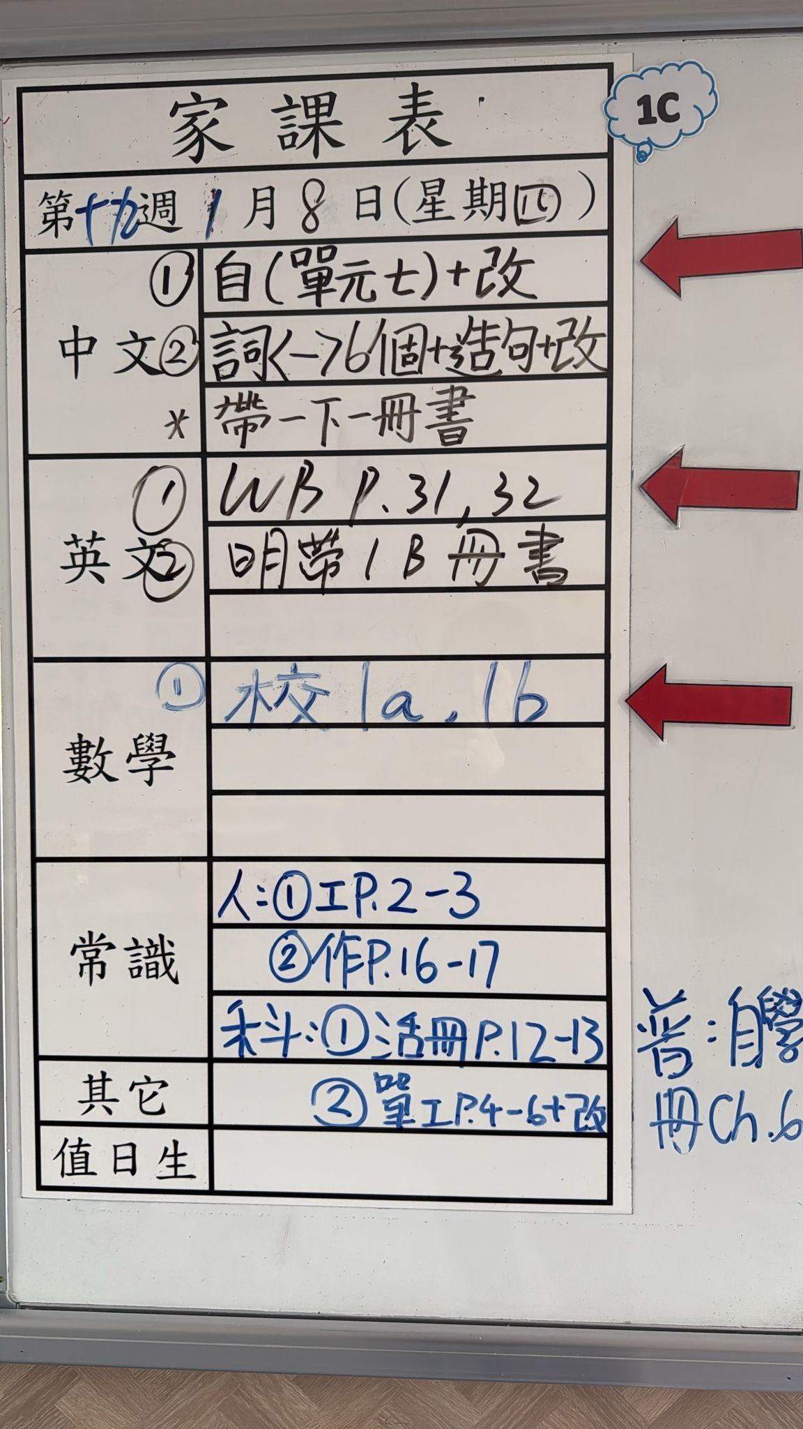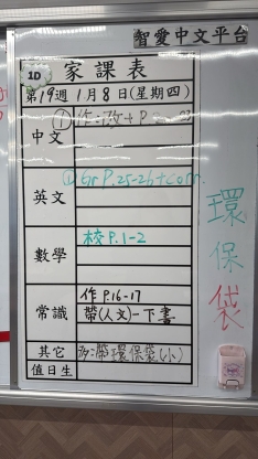 2026-01-08 週四發出之家課: