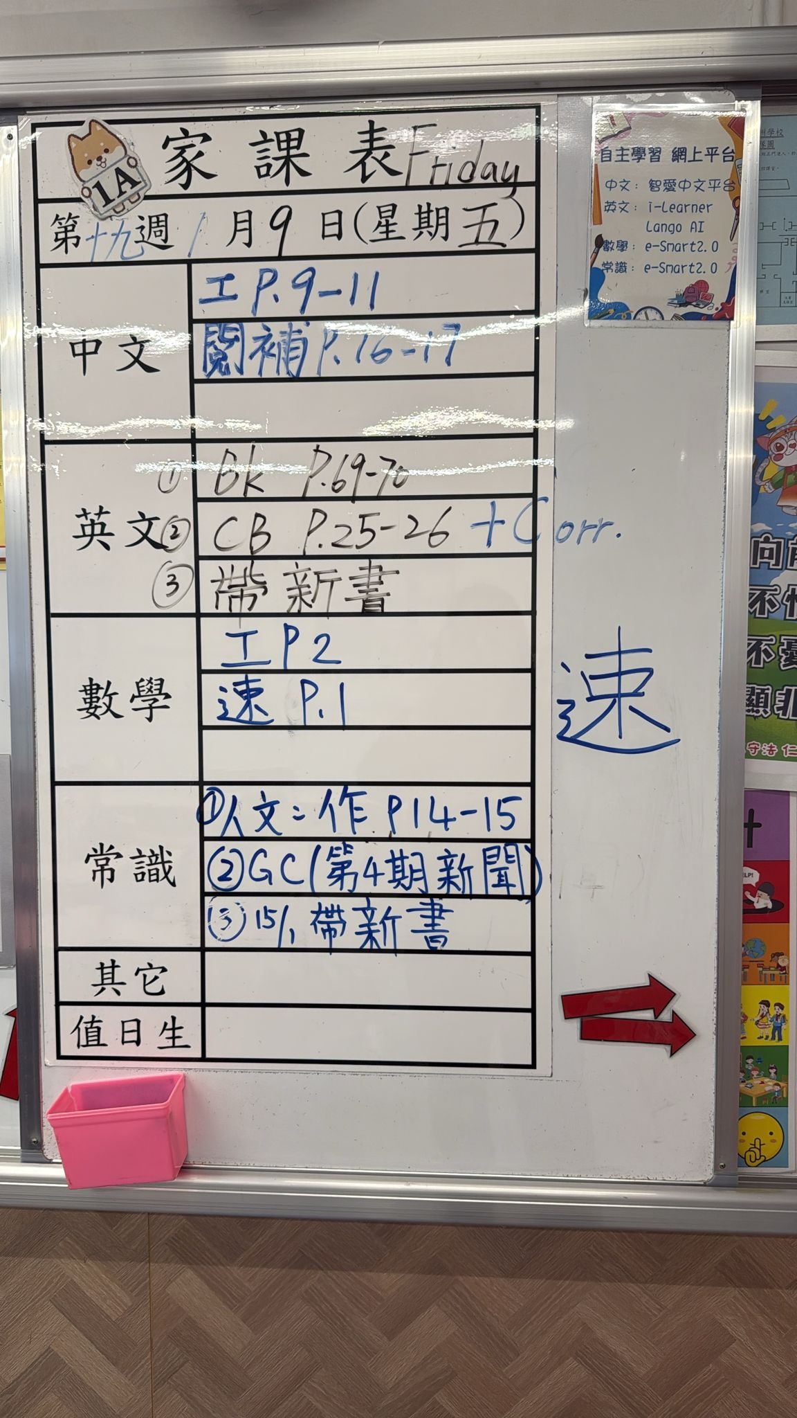 2025-10-09 週四發出之家課: