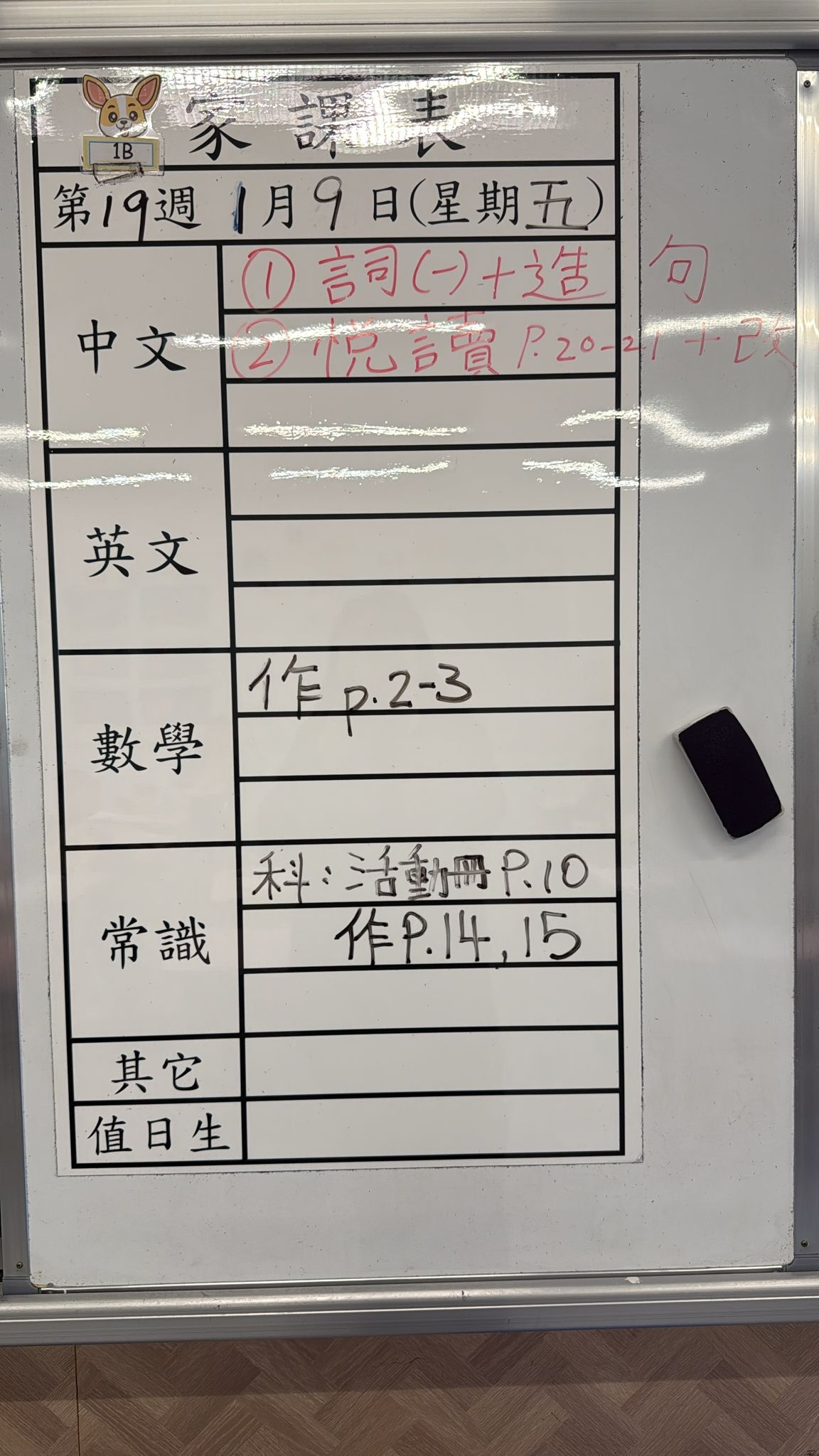 2026-01-09 週五發出之家課: