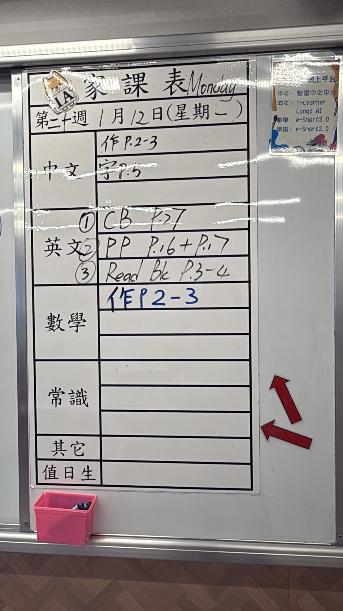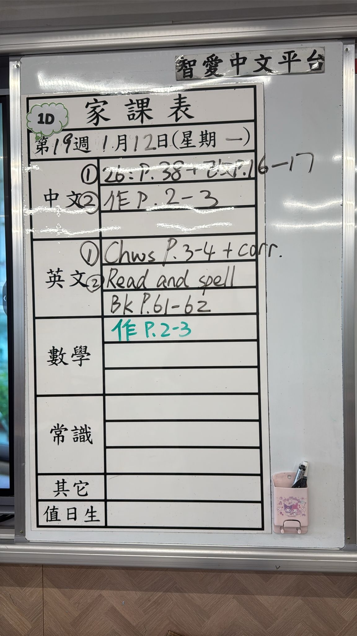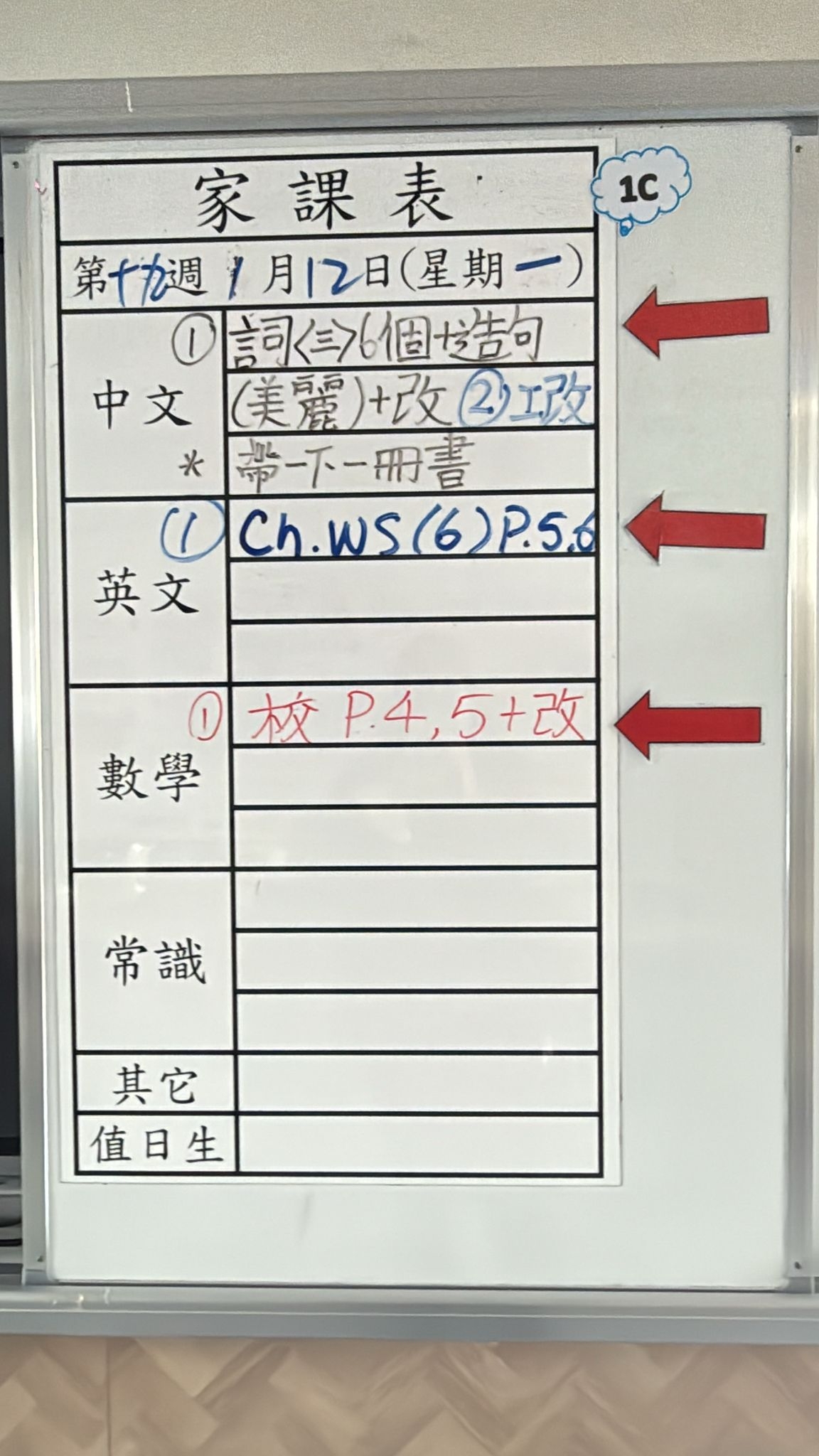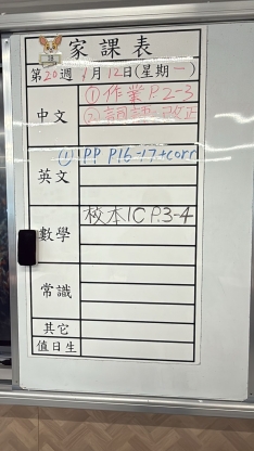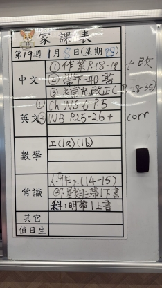 2026-01-12 週一發出之家課:
