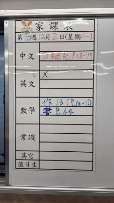 2025-12-02 週二發出之家課: