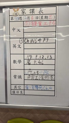 2025-09-09 週二發出之家課: