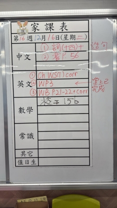 2026-01-06 週二發出之家課: