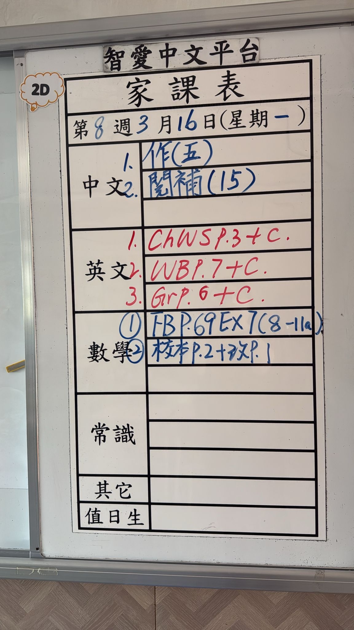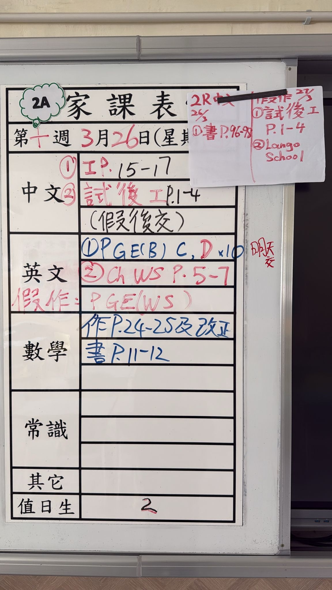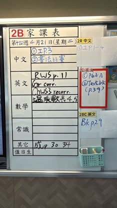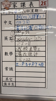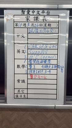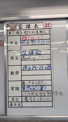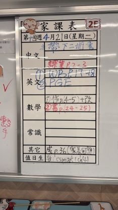 2026-03-25 週三發出之家課: