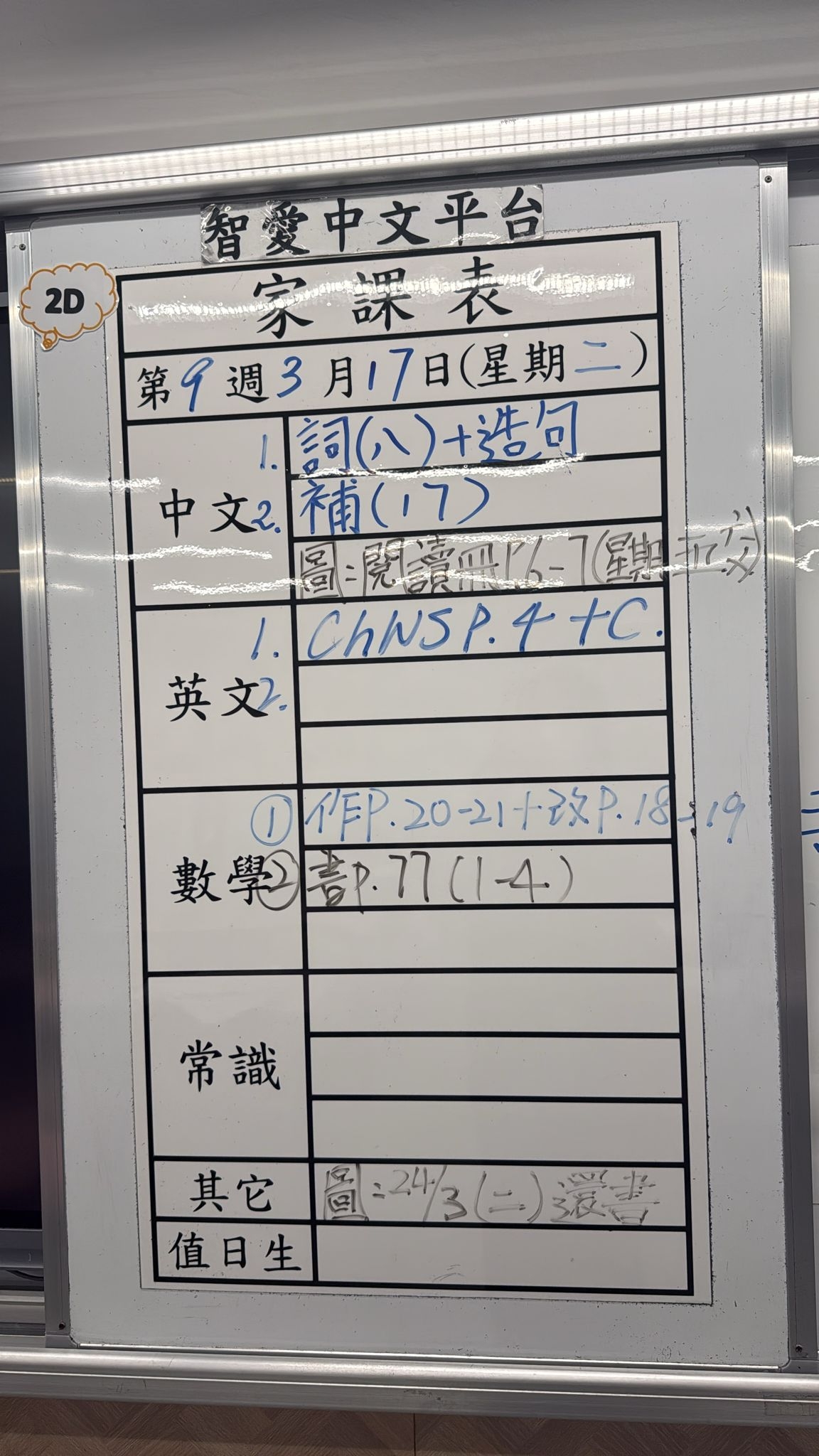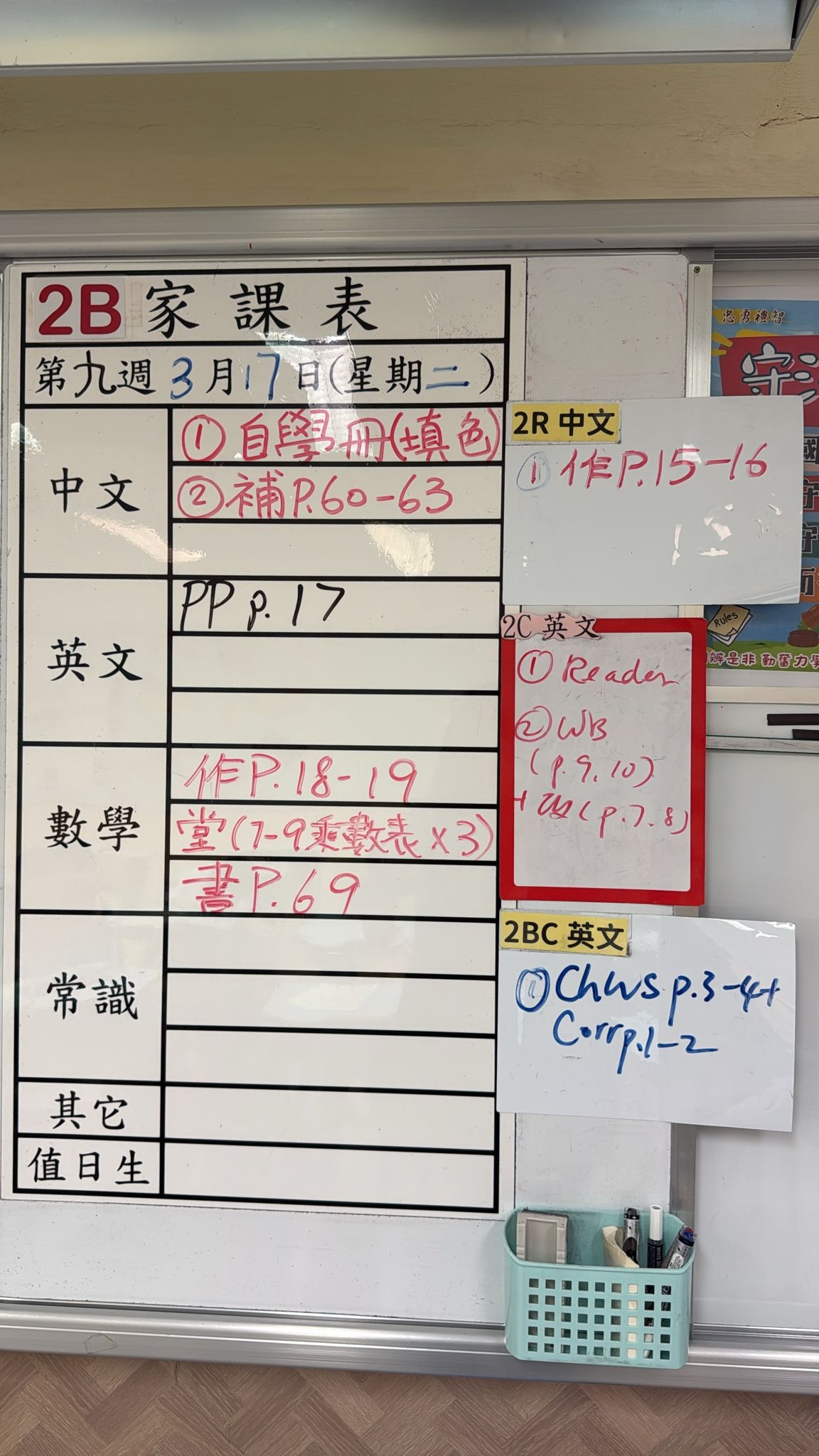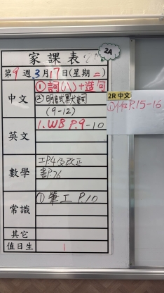2026-03-17 週二發出之家課: