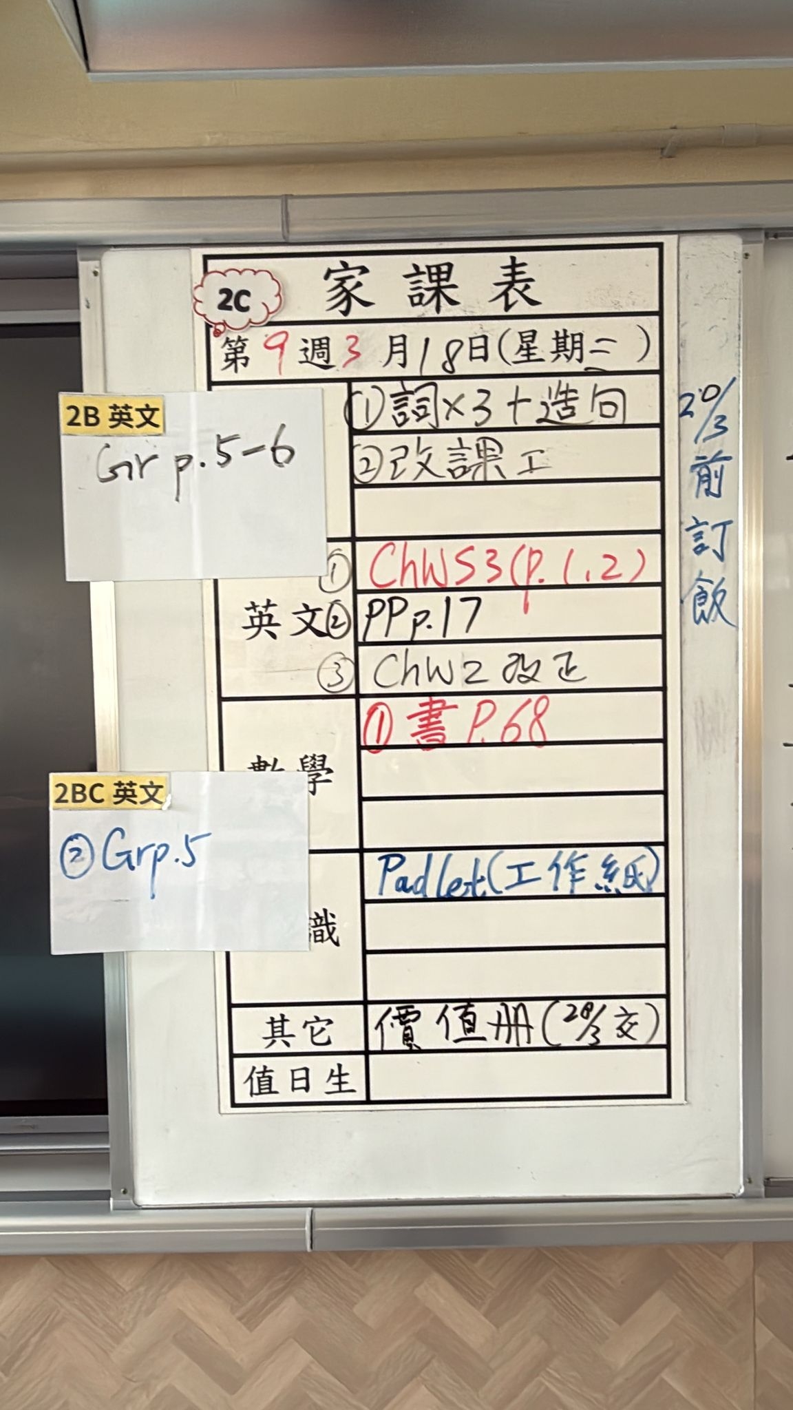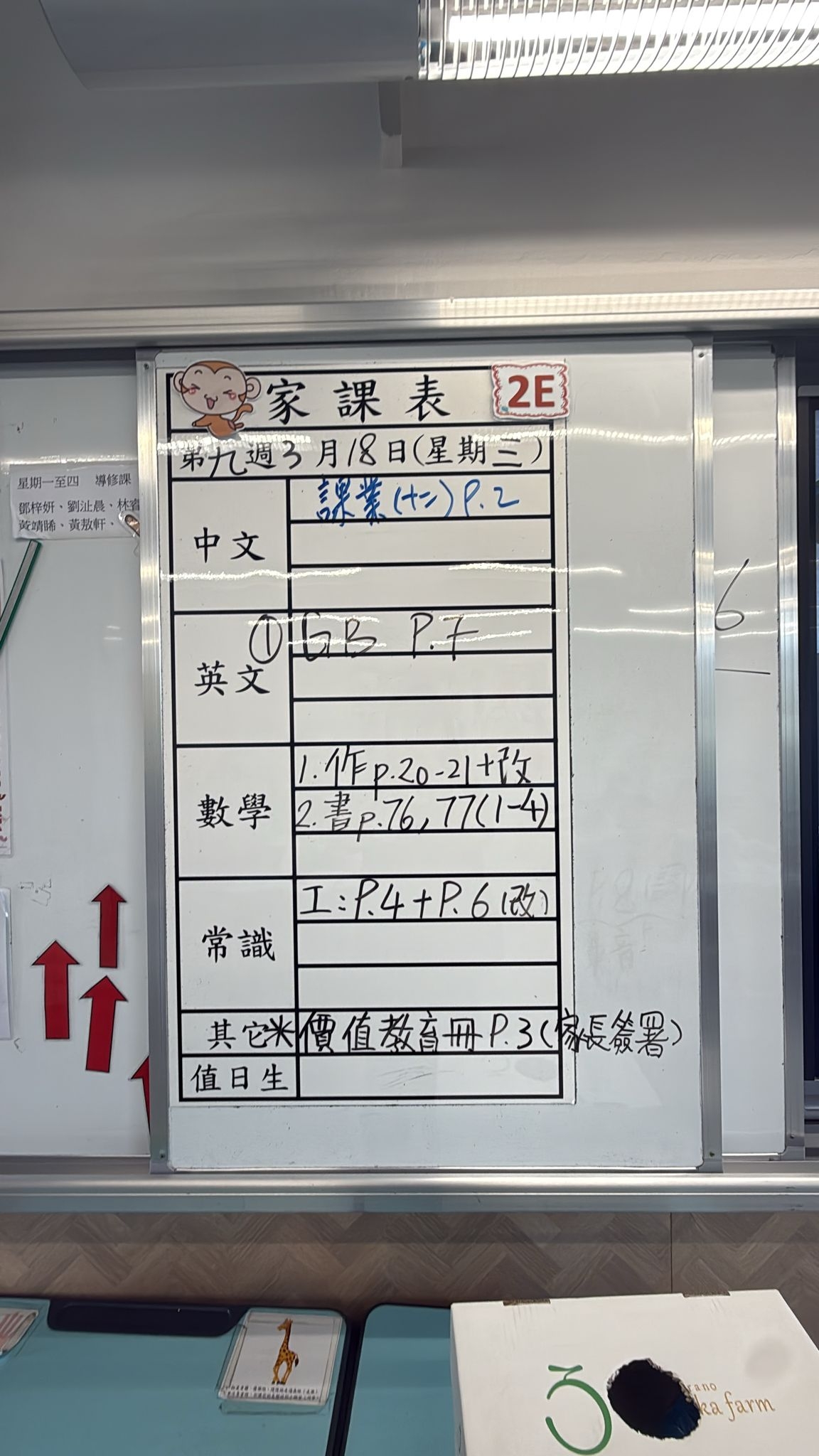 2026-03-18 週三發出之家課: