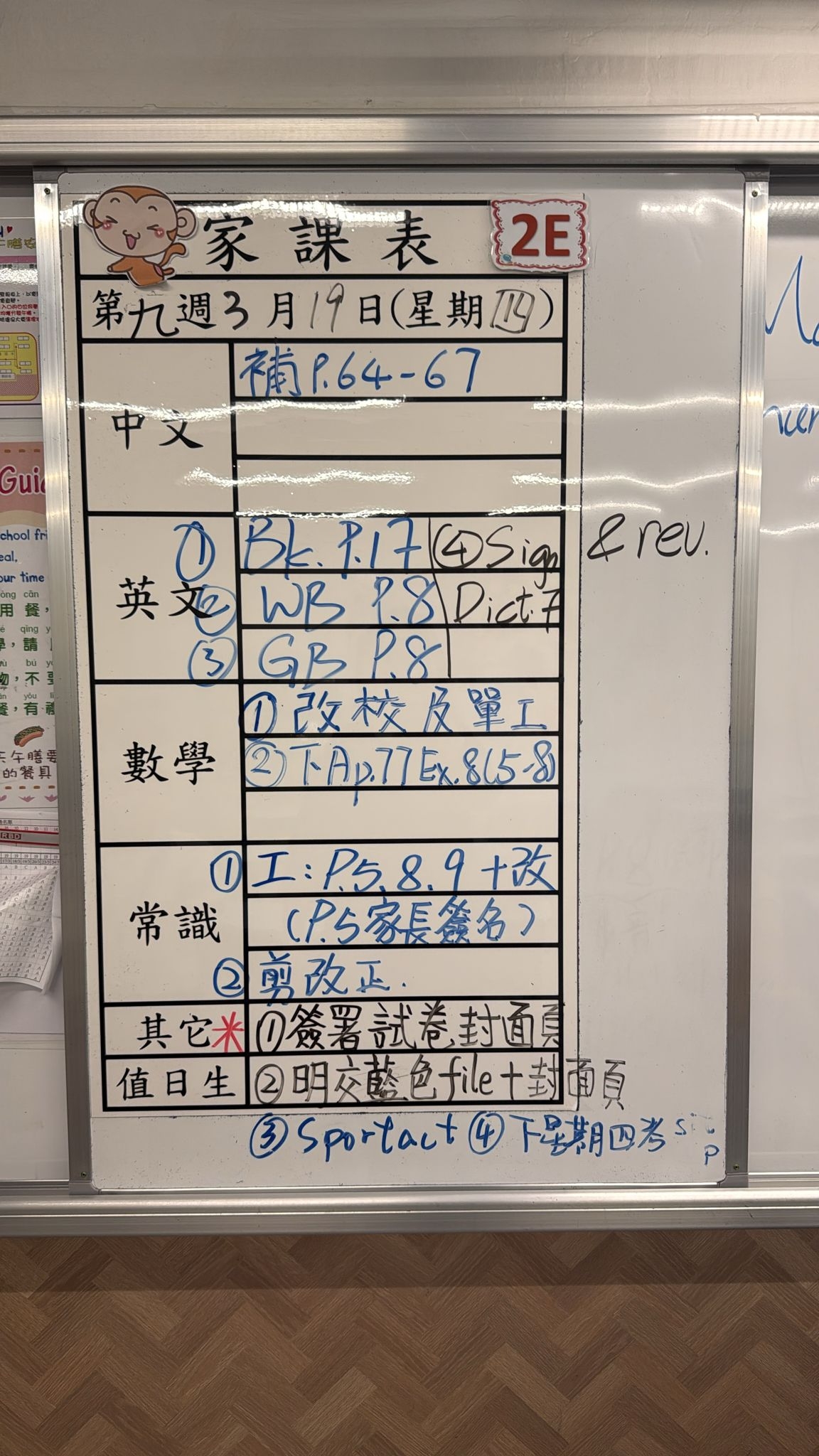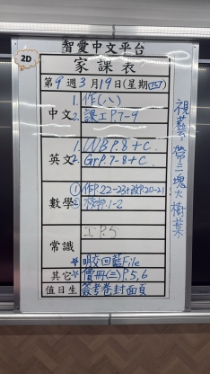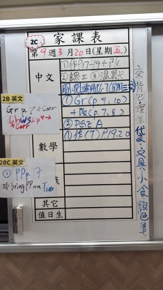 2026-03-19 週四發出之家課: