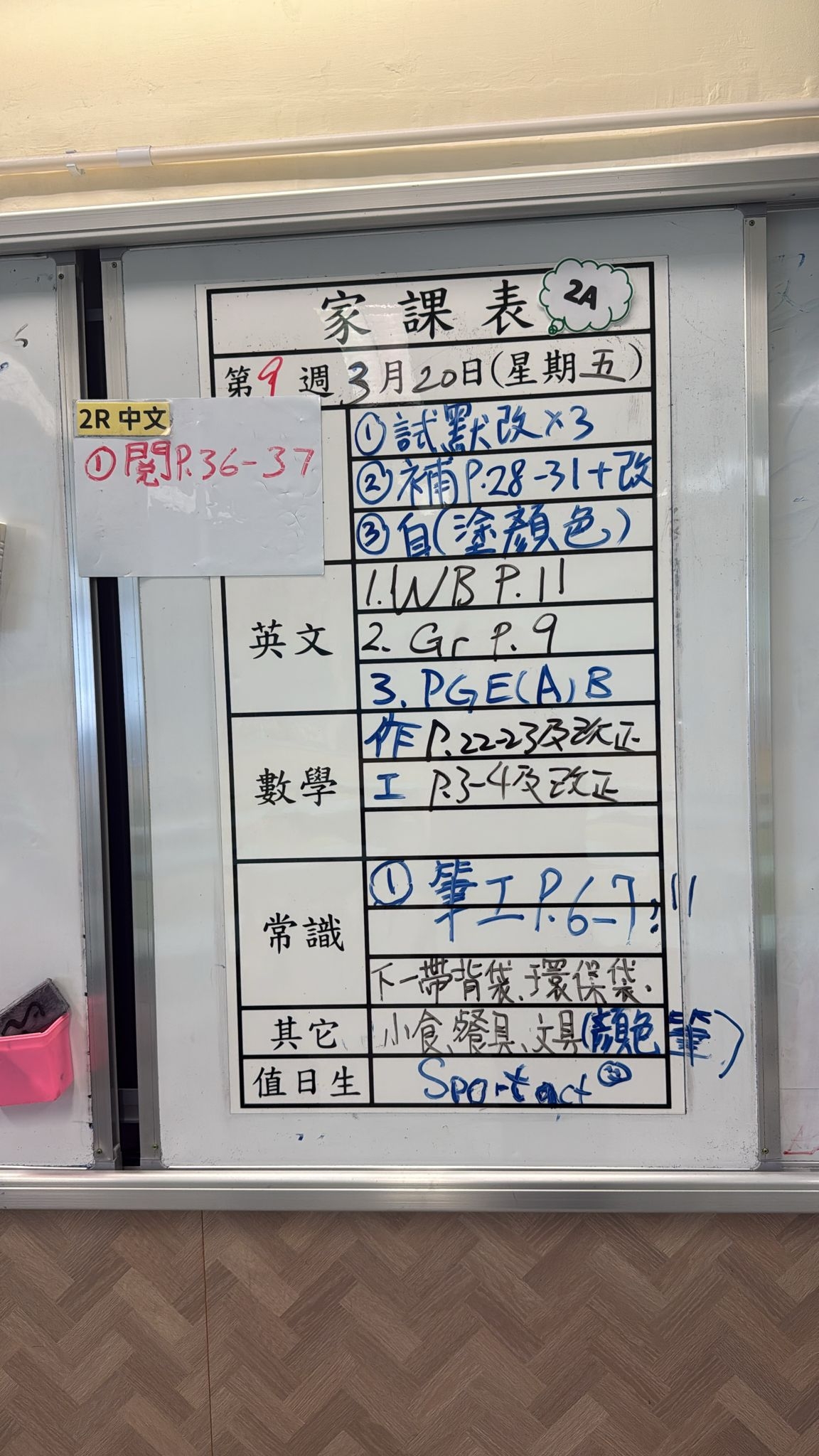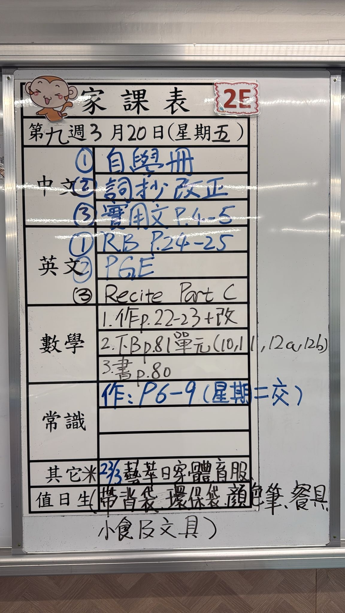2026-03-20 週五發出之家課: