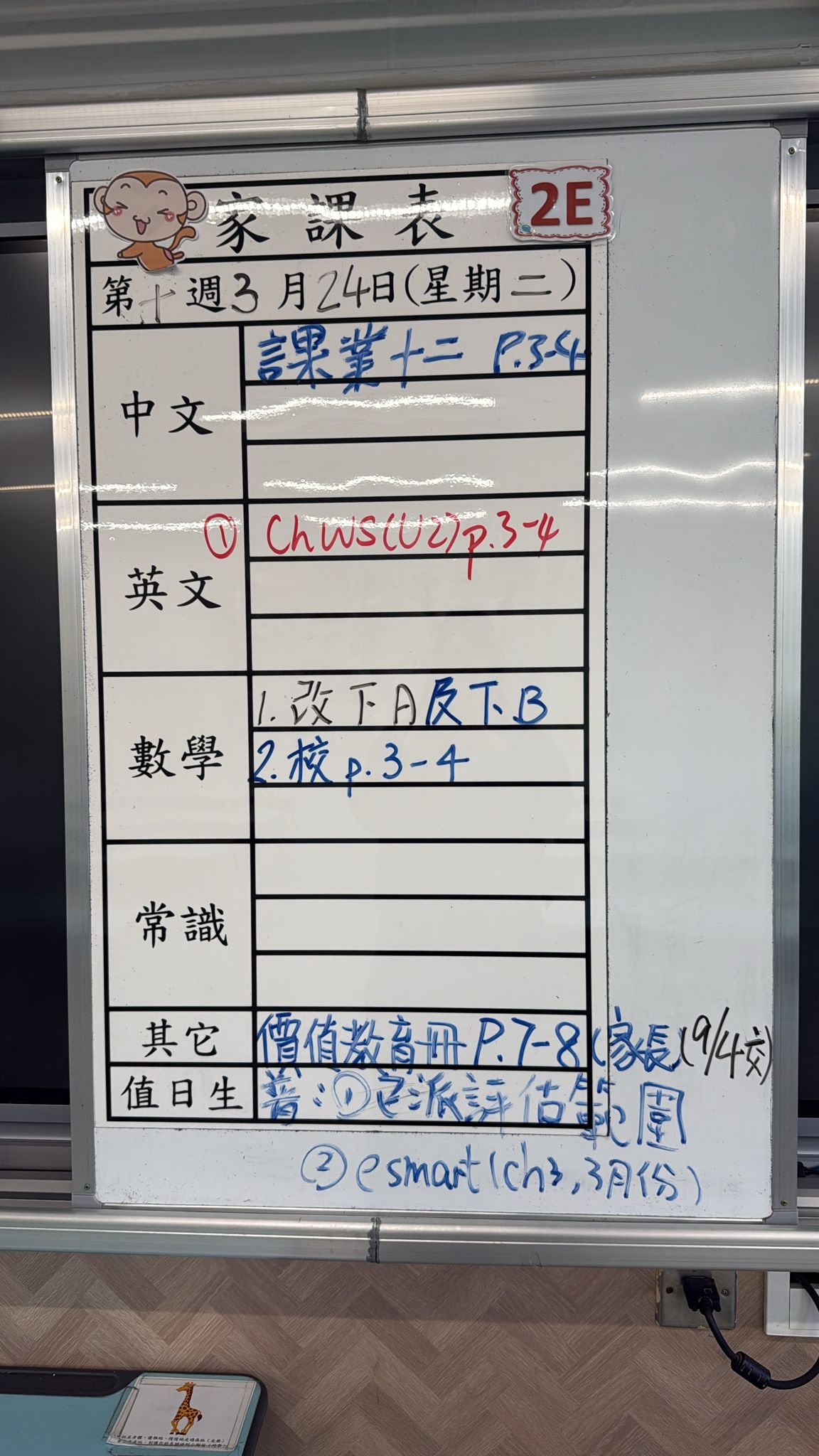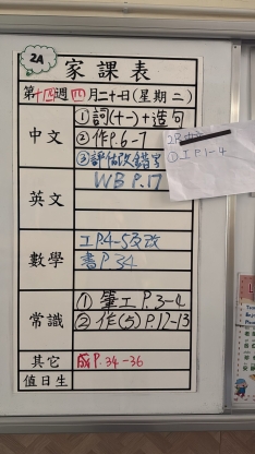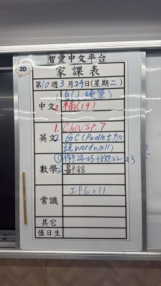2026-03-24 週二發出之家課: