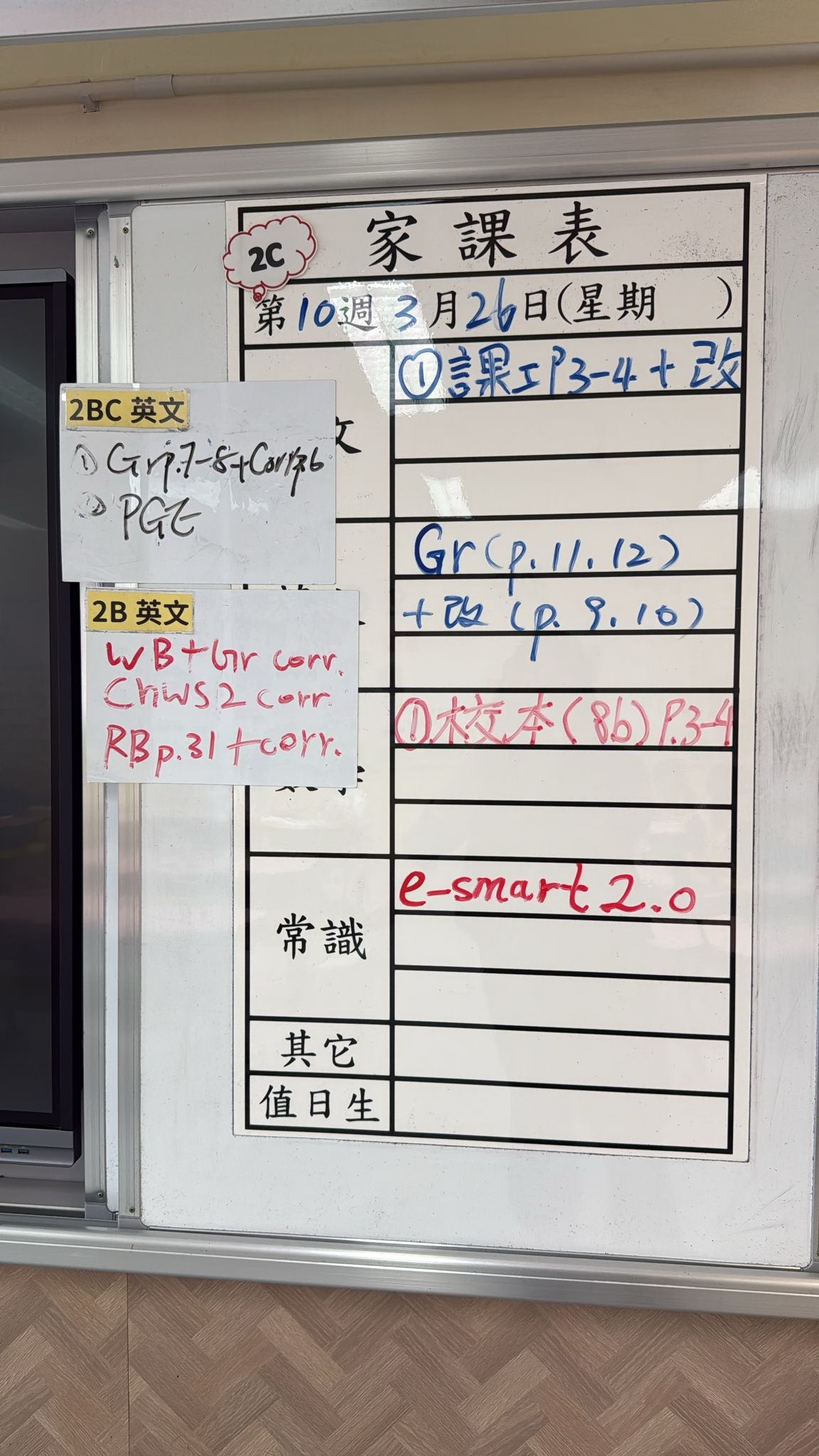 2026-03-26 週四發出之家課: